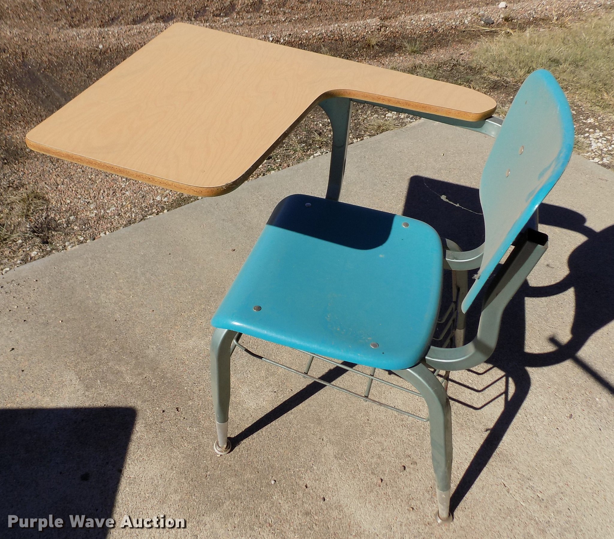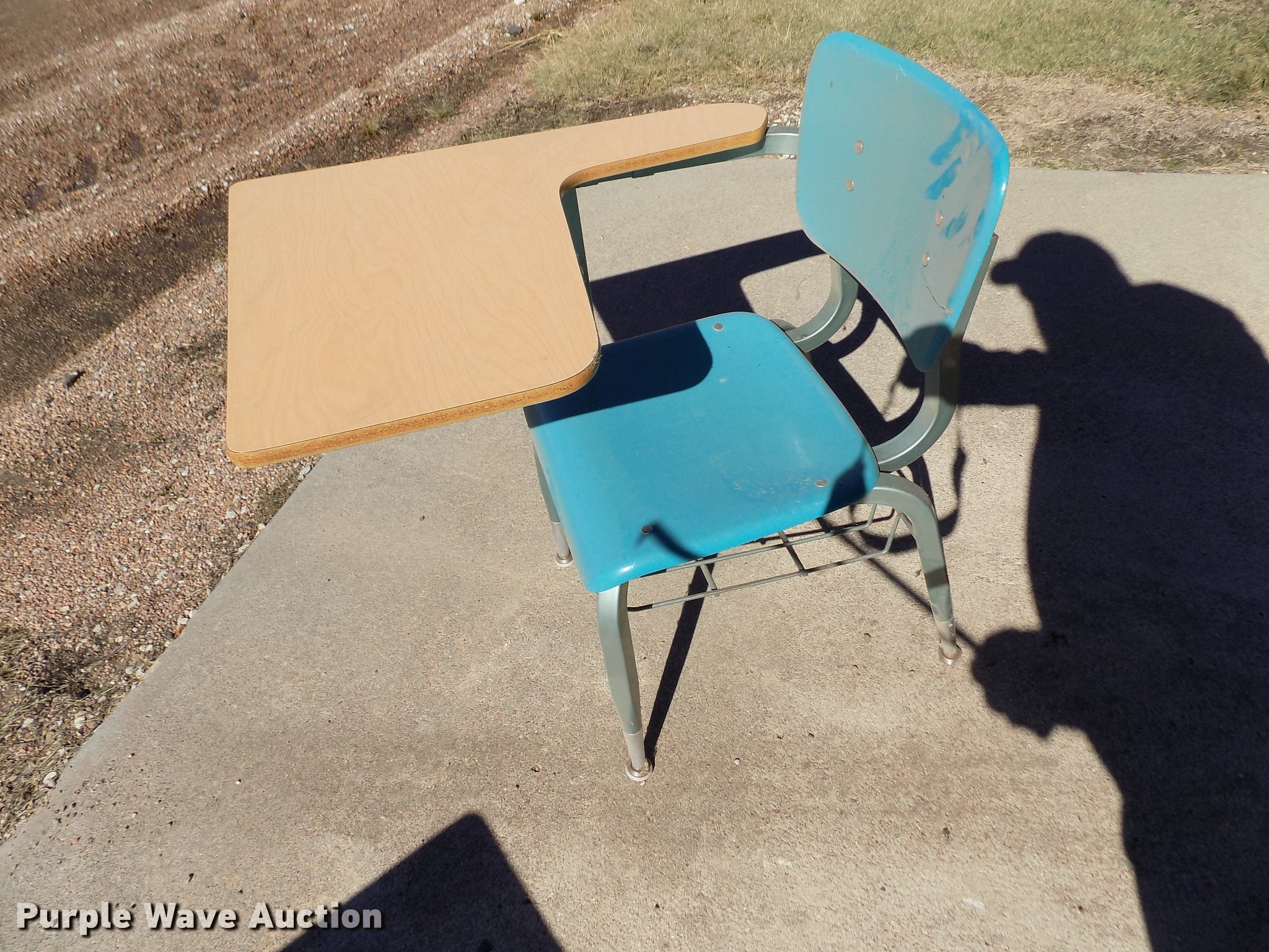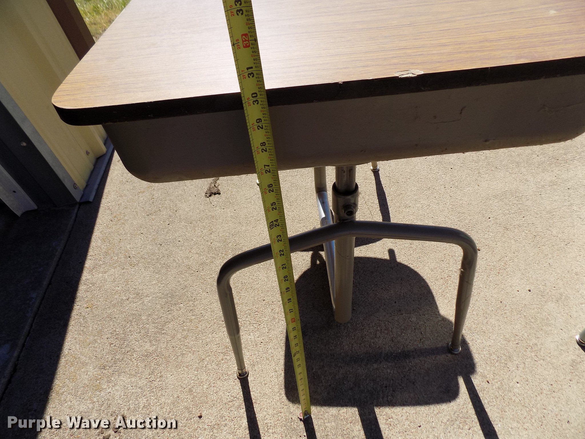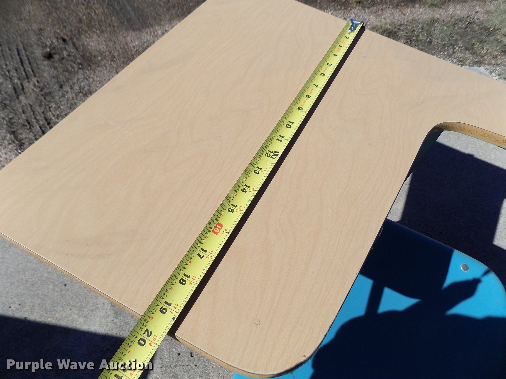 Purple Wave is selling a used Furniture in Kansas. This item is a (62) desks with the following: (18) clamshell desks, 18.5" x 24" desk tops, Seats, (13) desks, 34" x 22" desk tops, Cubbies, (15) desks, 19.5" x 14" desk tops, Seats, (16) parts desks, 19.5" x 14" desk tops, Seats, Parts or desk tops may be missing