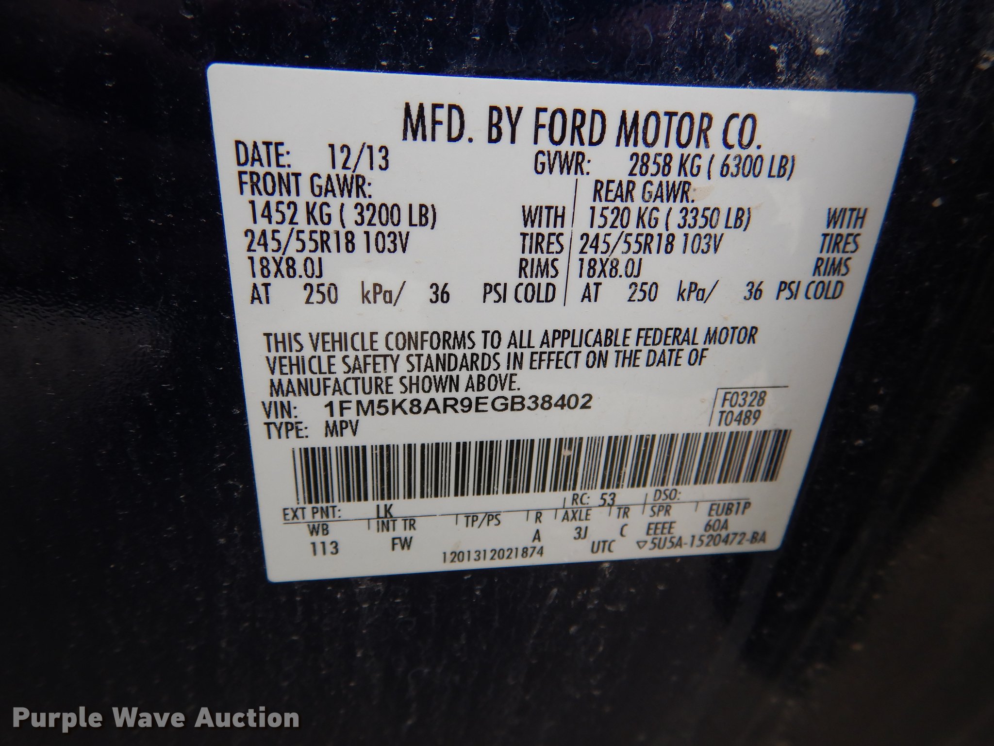 Purple Wave is selling a used Passenger Vehicle in Missouri. This item is a 2014 Ford Explorer Police Interceptor SUV with the following: 114,966 miles on odometer, 3.7L V6 DOHC 24V gas engine, Automatic transmission, All wheel drive, AC and heat, Tilt, Cruise, AM/FM/CD, Power windows, locks, mirrors, and seat, Cloth interior, Goodyear 245/55R18 tires, Drivers side interior rear door handle missing