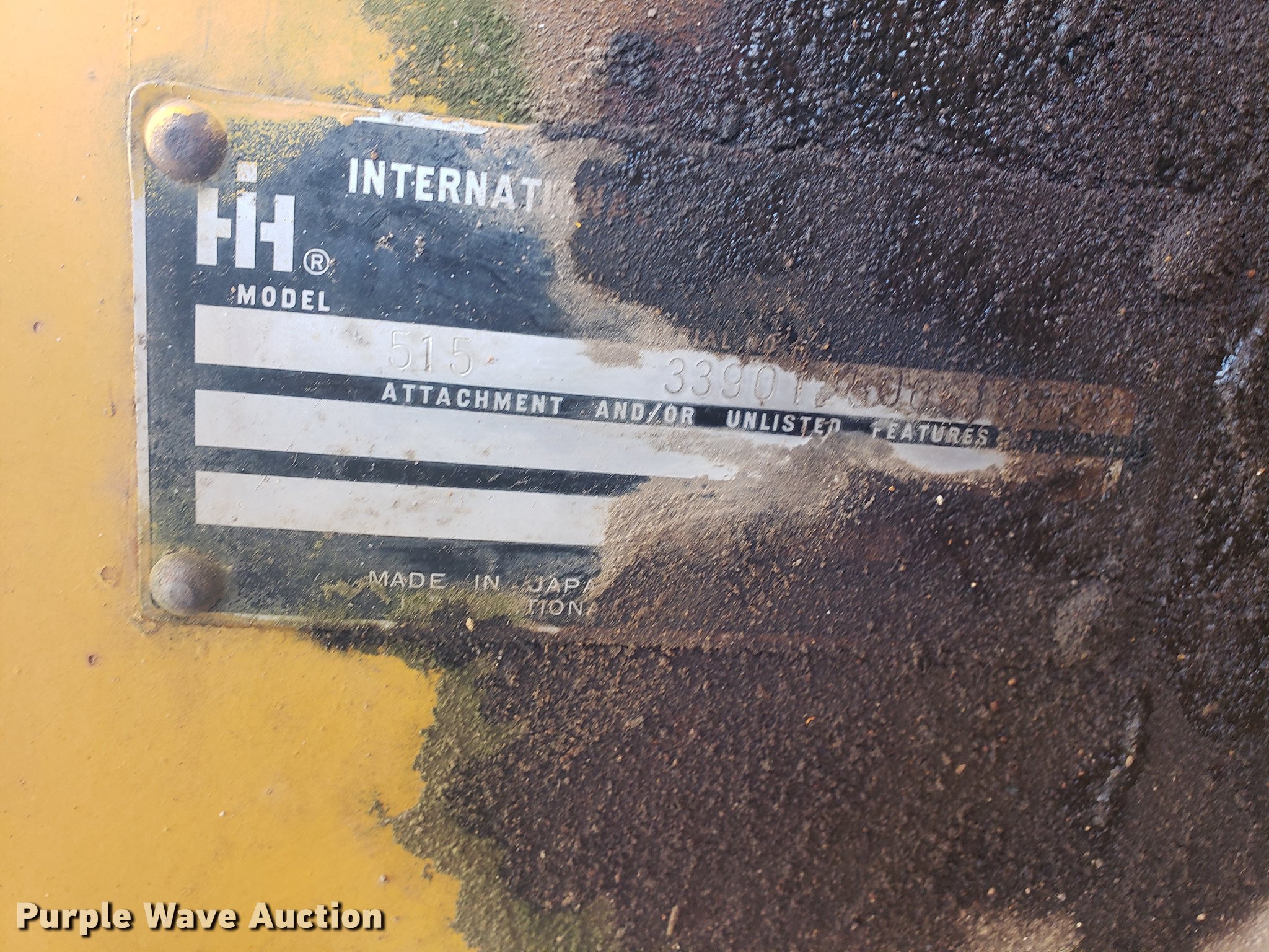 Purple Wave is selling a used Wheel Loader in Missouri. This item is a 1978 International 515 wheel loader with the following: Detroit Diesel four cylinder diesel engine, Powershift transmission, 3F-3R gears, Enclosed cab, Two-stick loader controls, 94"W bucket, 17.5-25 tires, Serial 3390125J061031