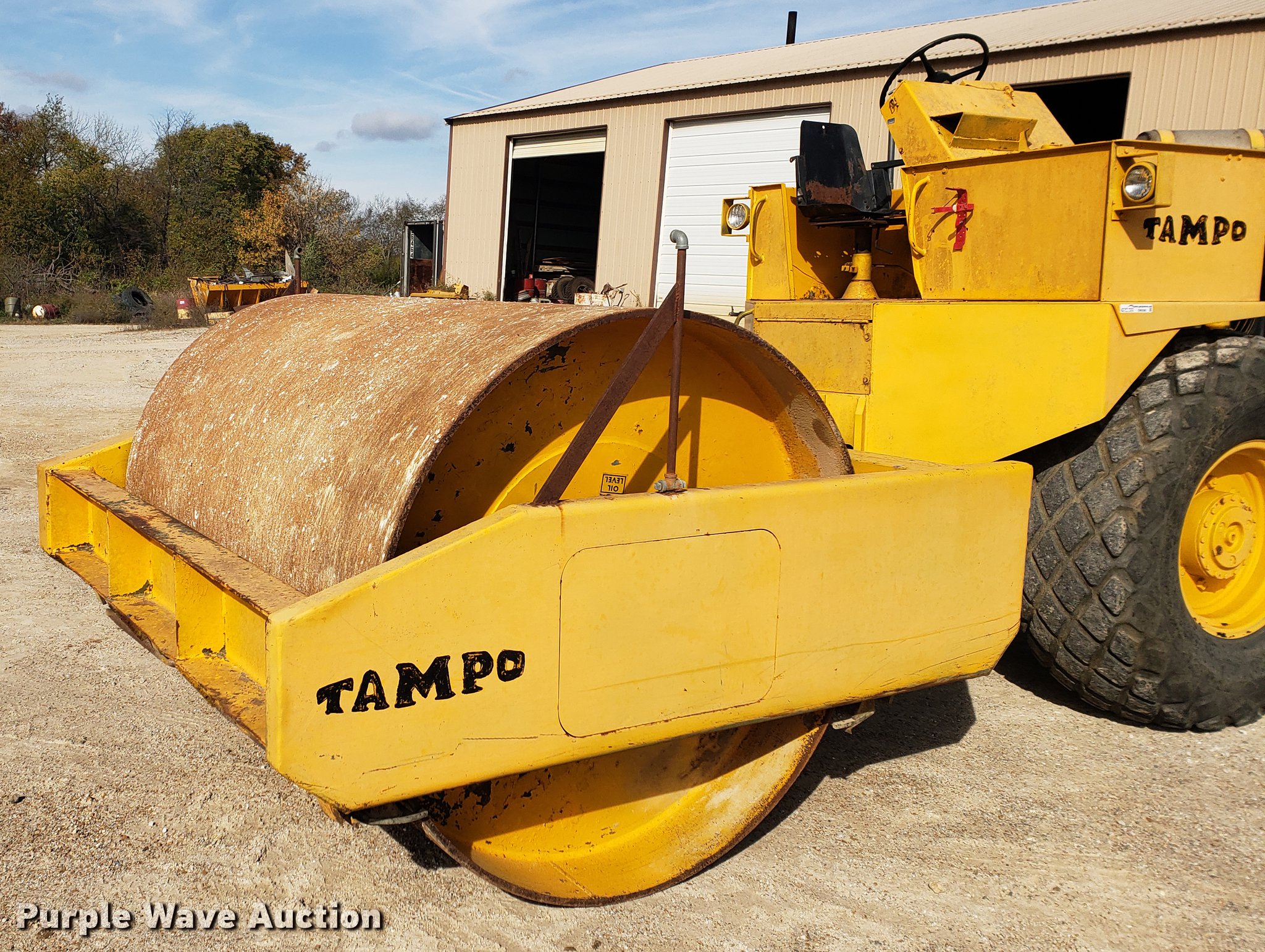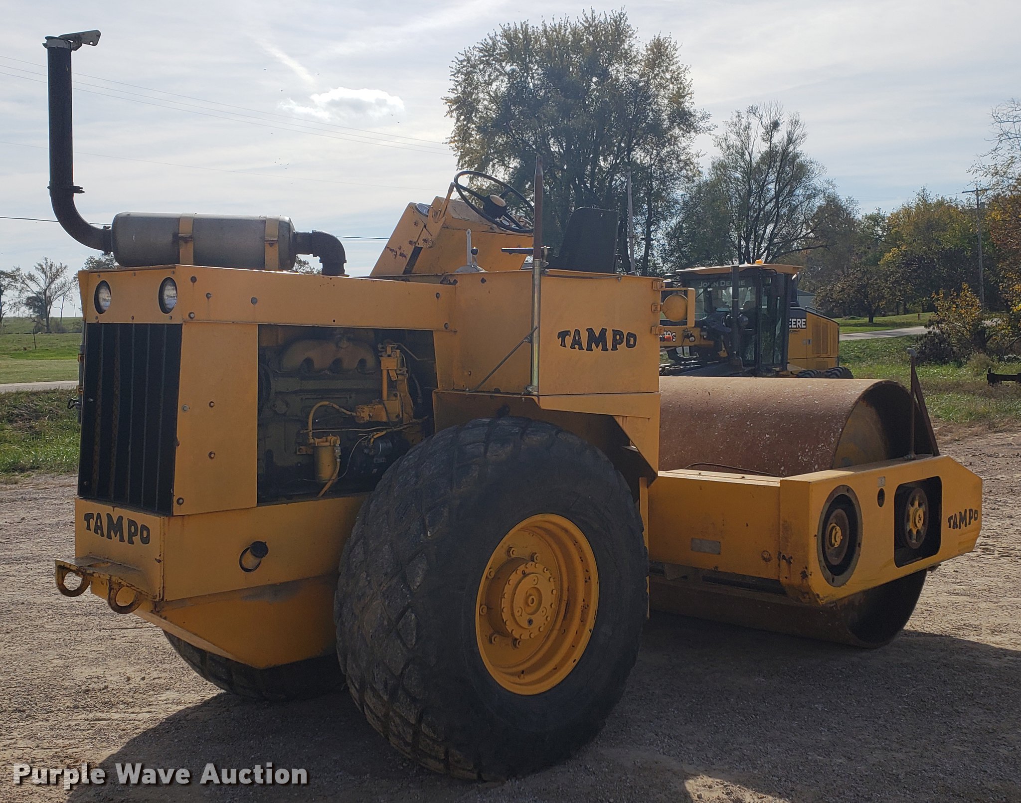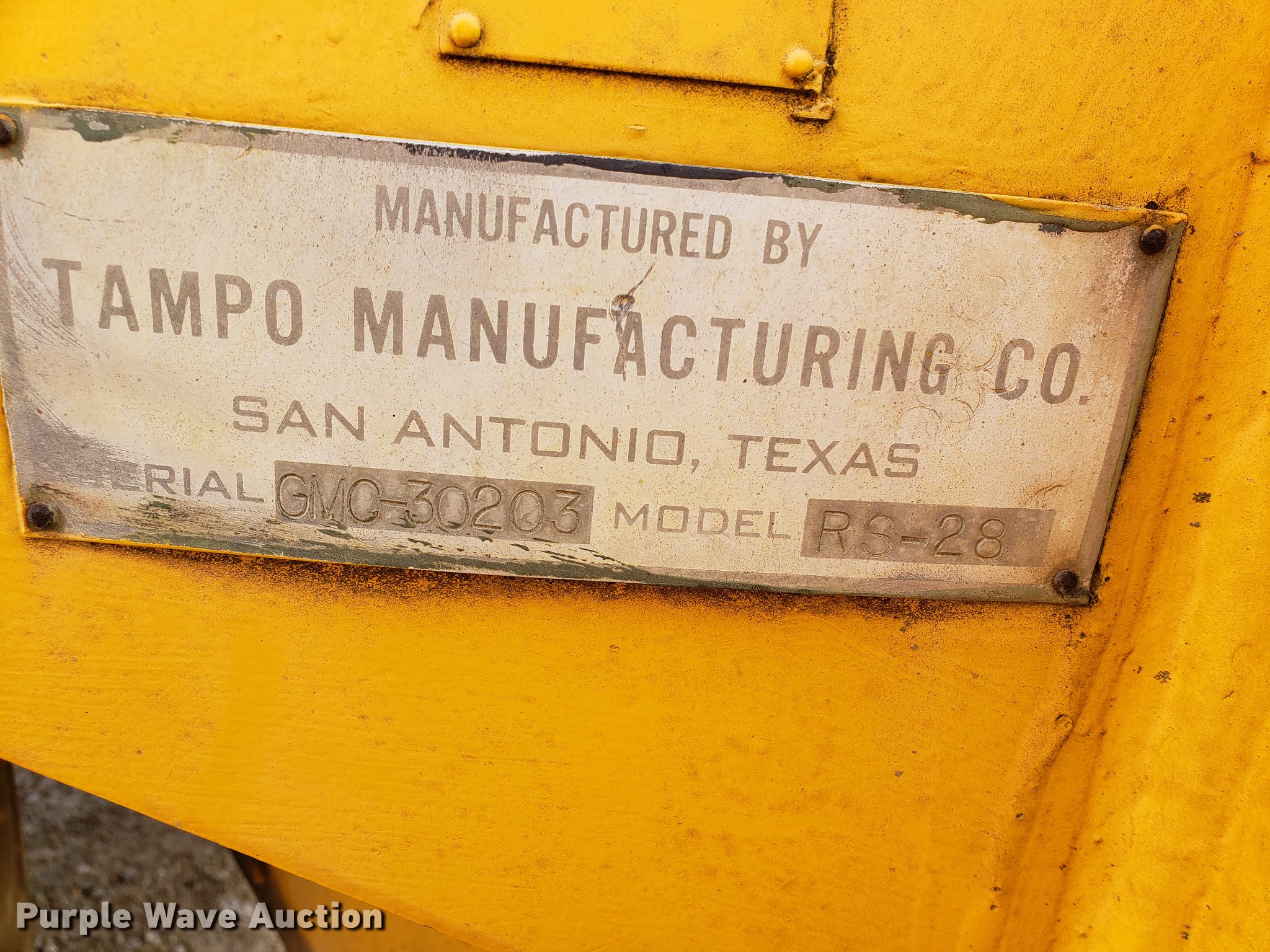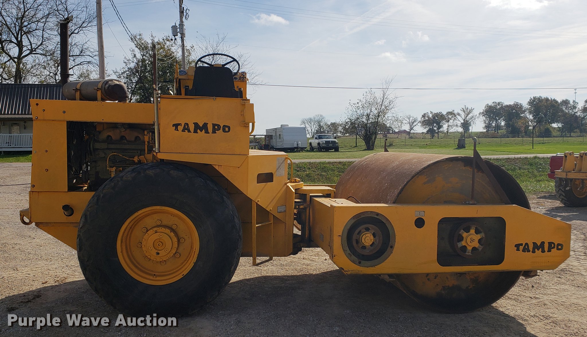 Purple Wave is selling a used Single Drum Roller Compactor in Missouri. This item is a Tampo RS28 single drumroller with the following: 1,349 hours on meter, Detroit Diesel four cylinder diesel engine, Hydrostatic transmission, Vibratory system, 7'W x 60" diameter drum, 23.1-26 tires, Transmission issues, Non-operational once unit gets warm, Serial GMC-30203