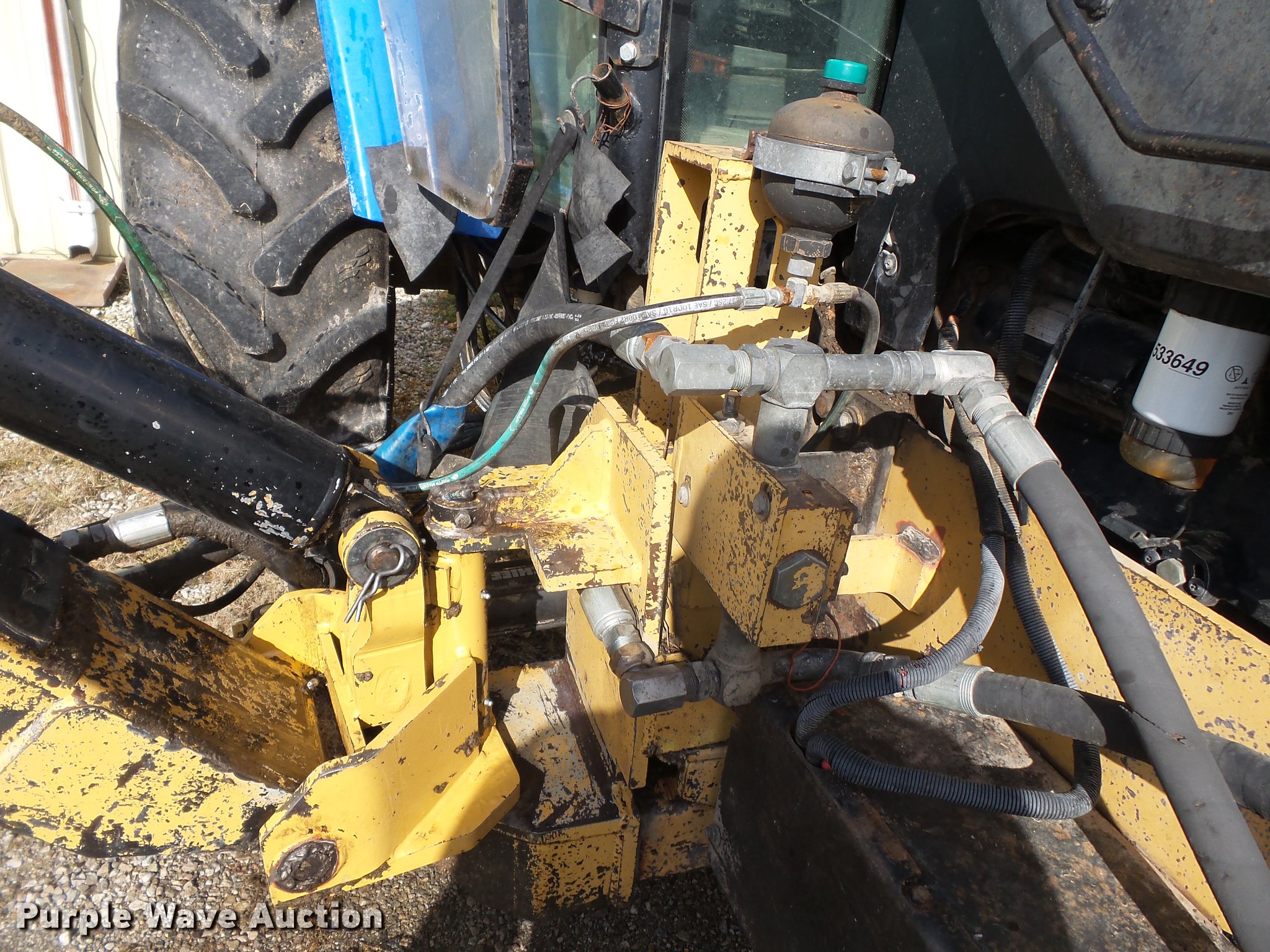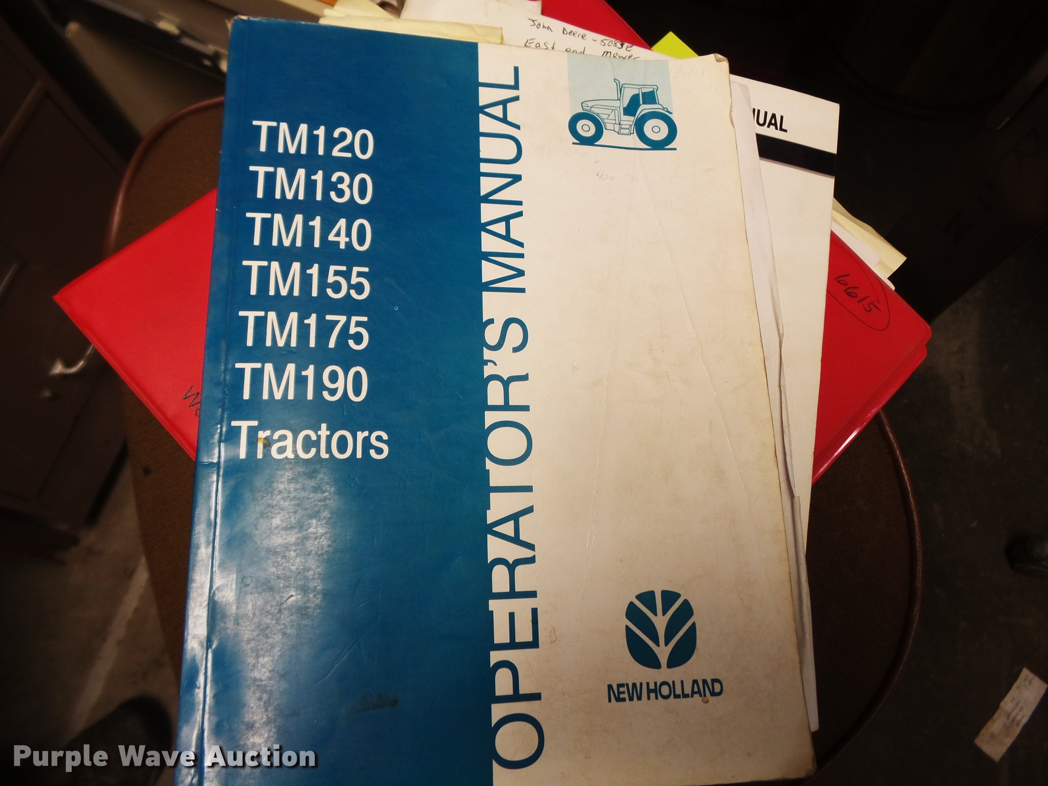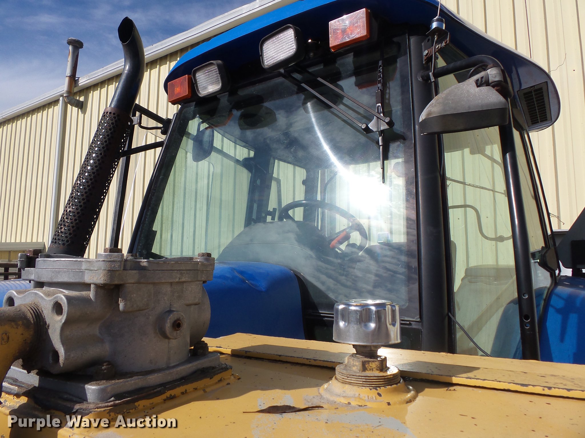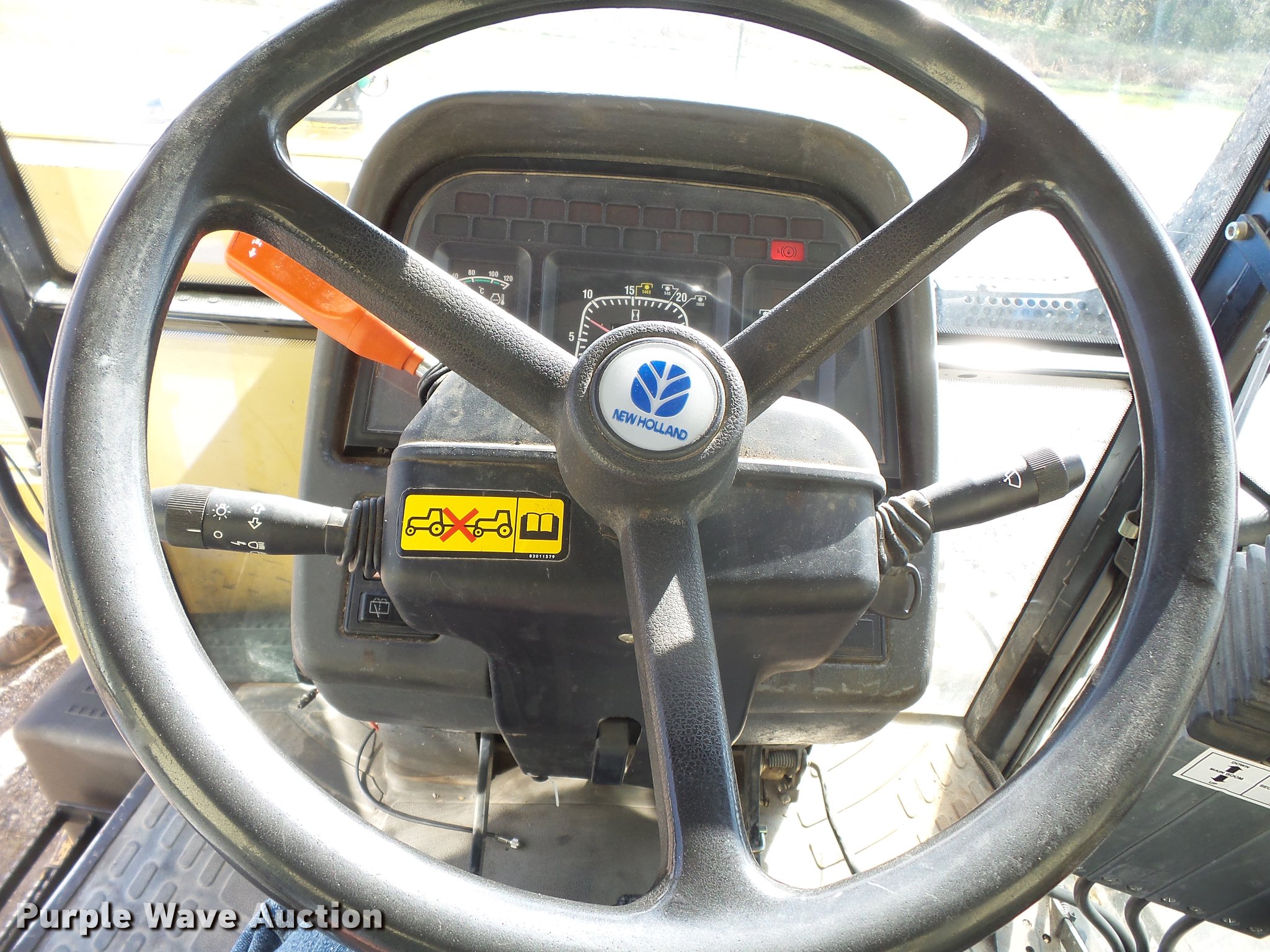 Purple Wave is selling a used Tractor in Missouri. This item is a 2004 New Holland TM120 tractor with the following: 12,185 hours on meter, New Holland 7.5L six cylinder turbo diesel engine, 120 HP, Powershift transmission, 17F-6R gears, Left-hand reverser, AC and heat, AM/FM, Three point, Seven pin outlet, 540 PTO, (2) rear hydraulic remote sets, Diamond rotary mower, 48"W, Wheel weights, 11.00-16 front tires, 460/85R34 rear tires, Cracked windshield, Serial ACM231194