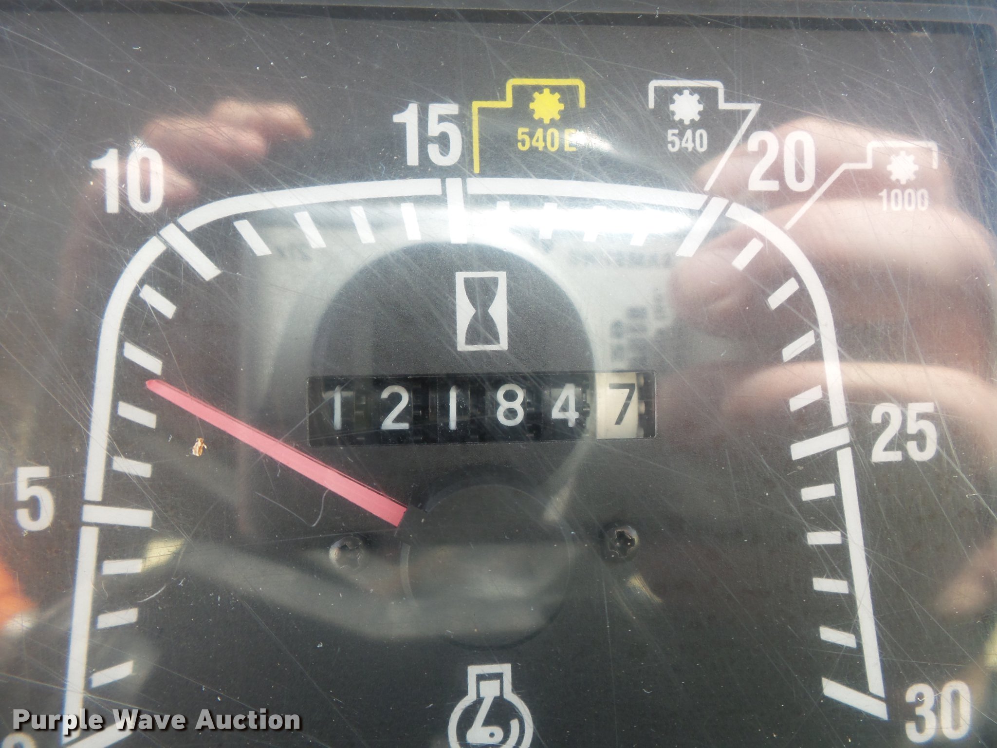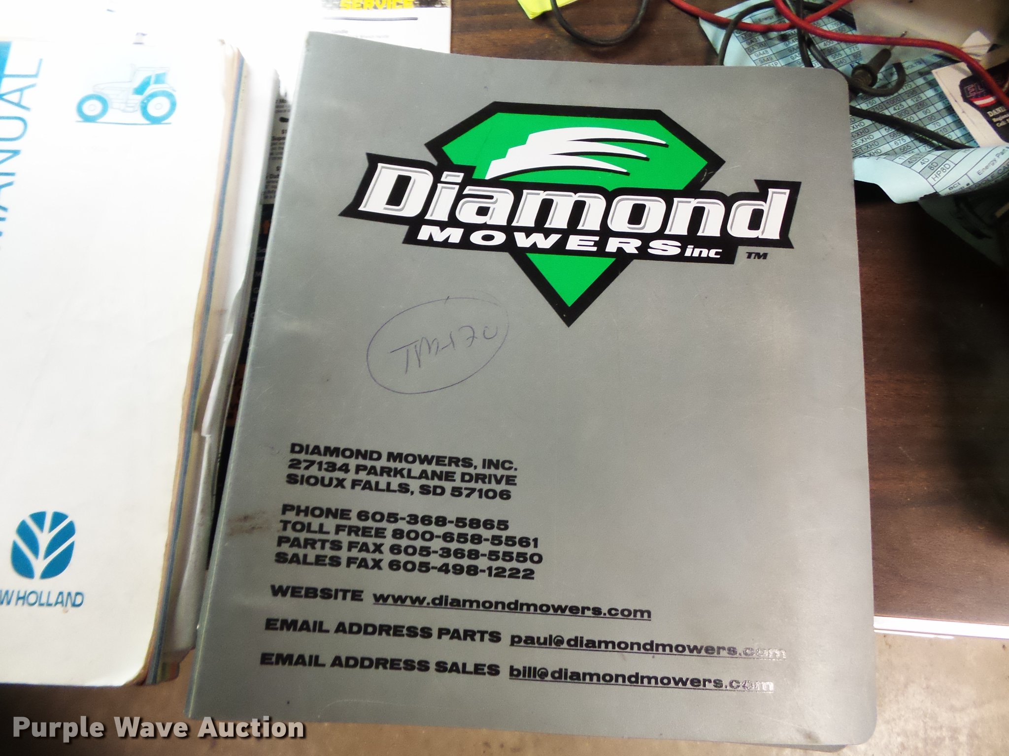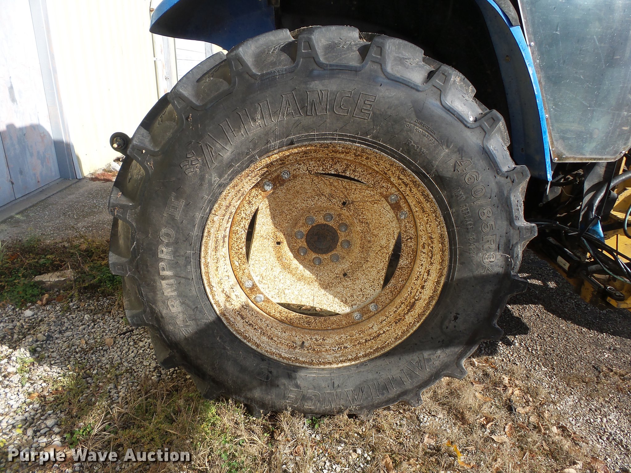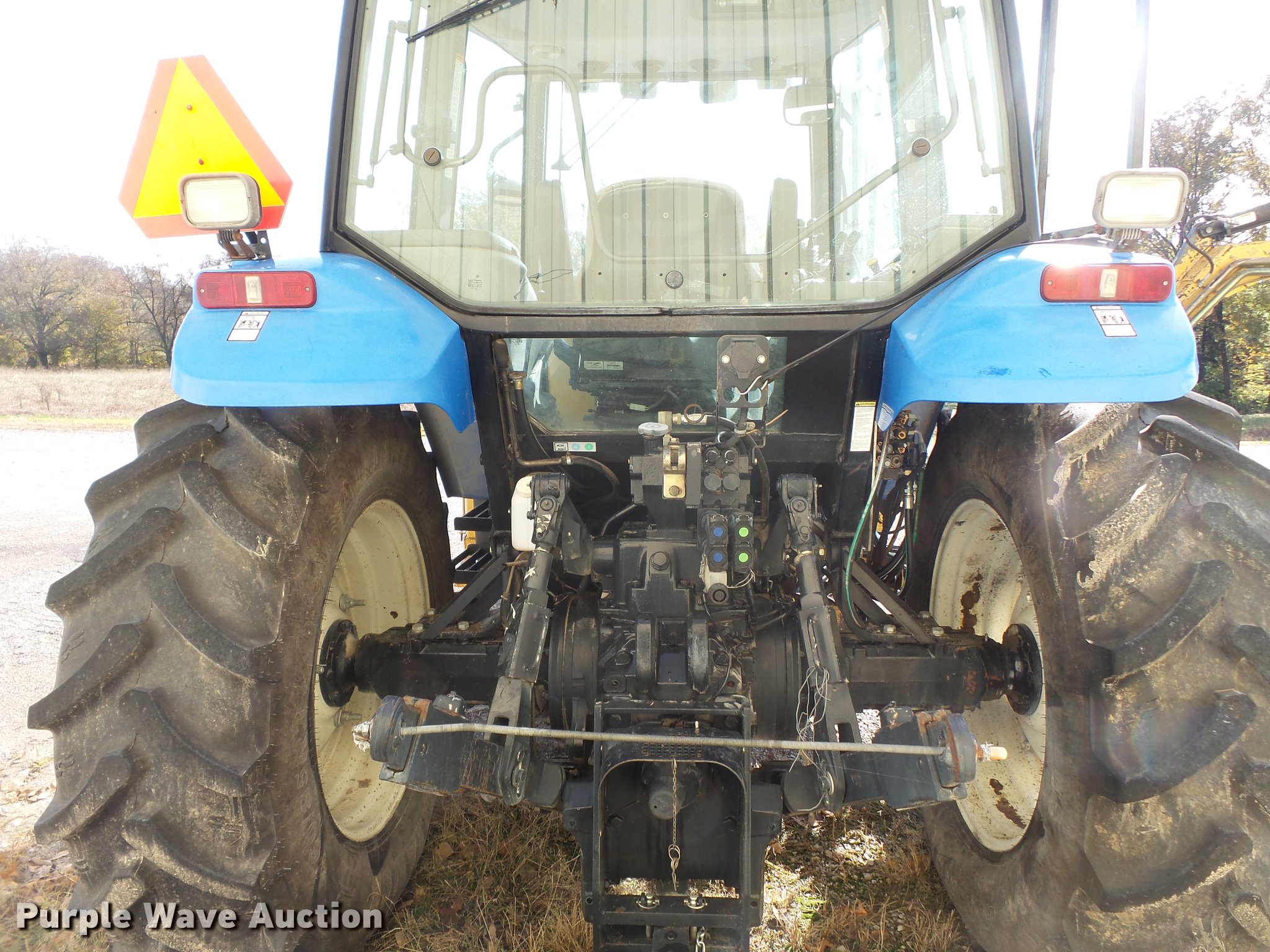 Purple Wave is selling a used Tractor in Missouri. This item is a 2004 New Holland TM120 tractor with the following: 12,185 hours on meter, New Holland 7.5L six cylinder turbo diesel engine, 120 HP, Powershift transmission, 17F-6R gears, Left-hand reverser, AC and heat, AM/FM, Three point, Seven pin outlet, 540 PTO, (2) rear hydraulic remote sets, Diamond rotary mower, 48"W, Wheel weights, 11.00-16 front tires, 460/85R34 rear tires, Cracked windshield, Serial ACM231194