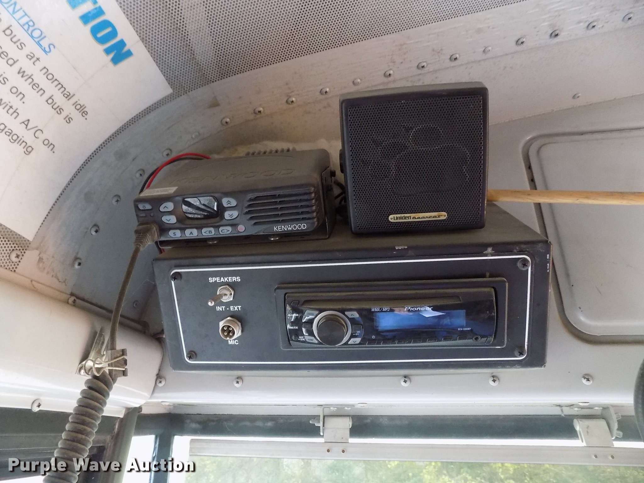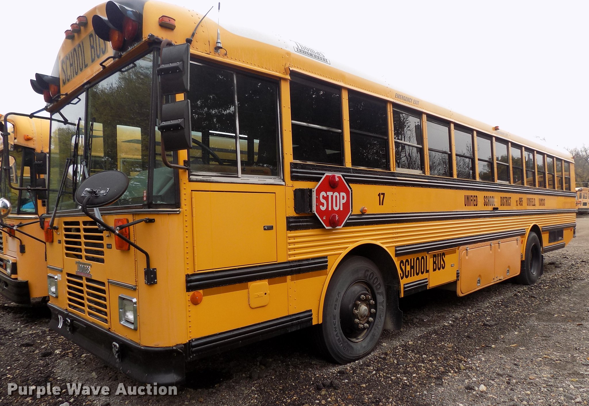 Purple Wave is selling a used Bus in Kansas. This item is a 2001 Thomas Built Saf-T-Liner MVP EF school bus with the following: 109,047 miles on odometer, 36,554 hours on meter, Cummins ISB six cylinder turbo diesel engine, Serial 46056342, Automatic transmission, Single axle, AC and heat, AM/FM/CD, Suspension seat, 77 passenger capacity, 26 adult seats, Ceiling, rear, and side emergency exits, Stop sign, Transair roof mounted AC unit, Underside luggage storage, 212" wheelbase, Air brakes, Spring suspension, 11R22.5 tires, GVWR 33,350 lbs, Unknown operating condition