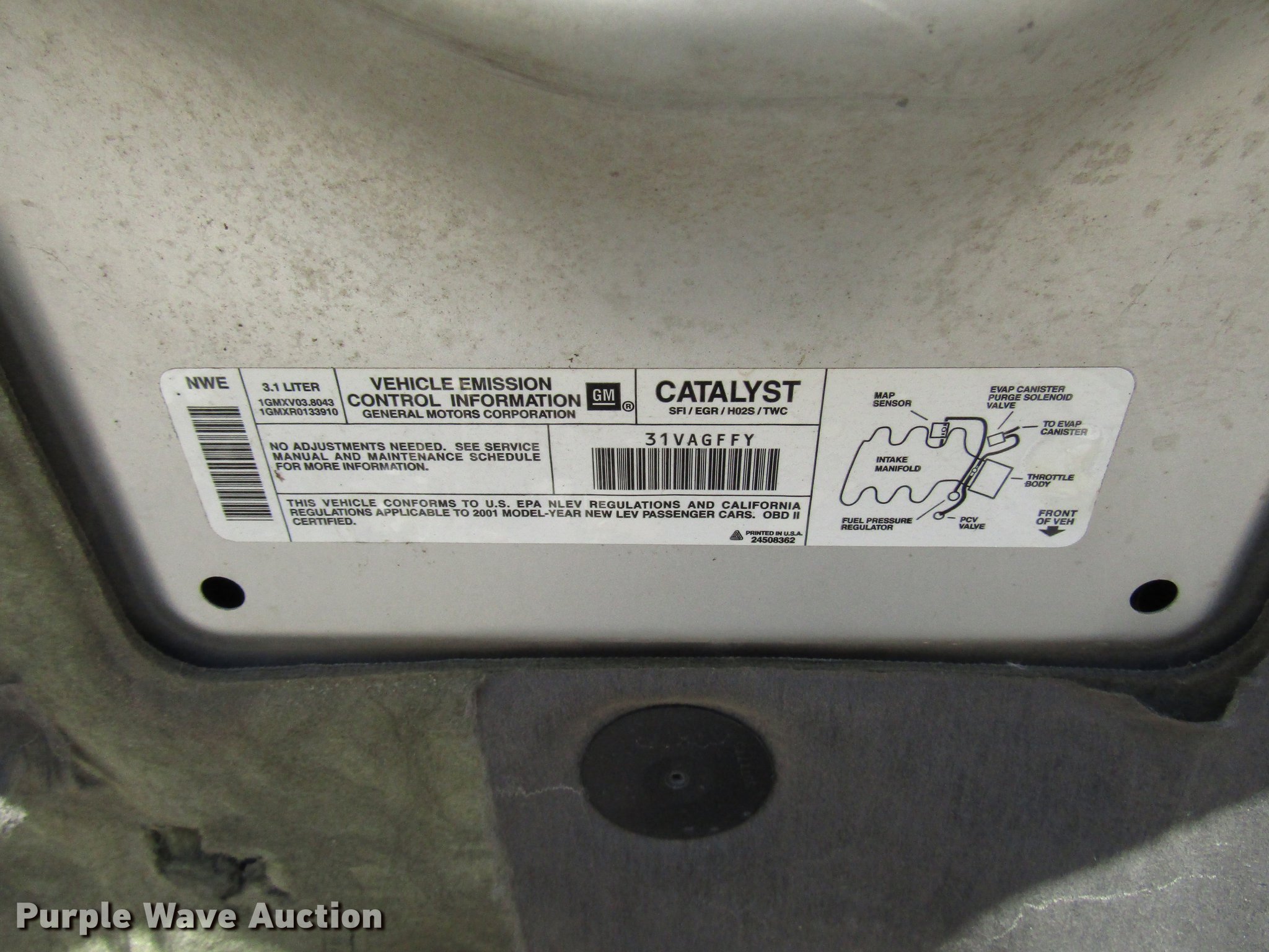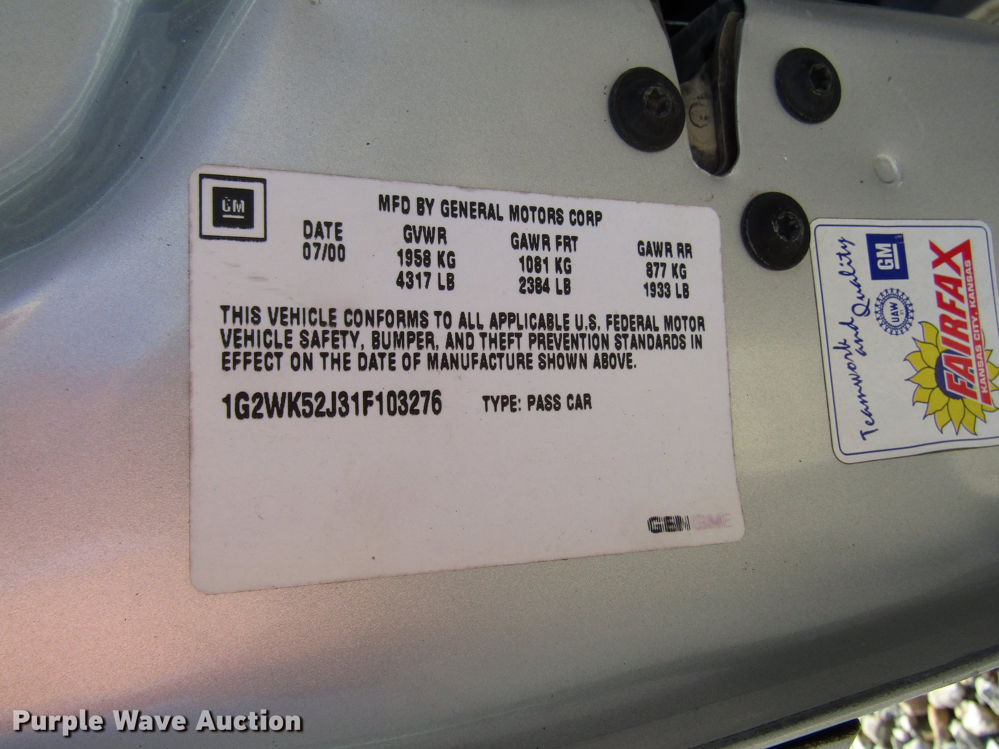 Purple Wave is selling a used Passenger Vehicle in Kansas. This item is a 2001 Pontiac Grand Prix with the following: 92,603 miles on odometer, 3.1L V6 OHV 12V gas engine, Automatic transmission, AC and heat, Tilt, AM/FM/CD, Power windows and seat, Cloth interior, Fog lights, 215/60R16 tires, Dead battery, Check engine light on, Cracked windshield