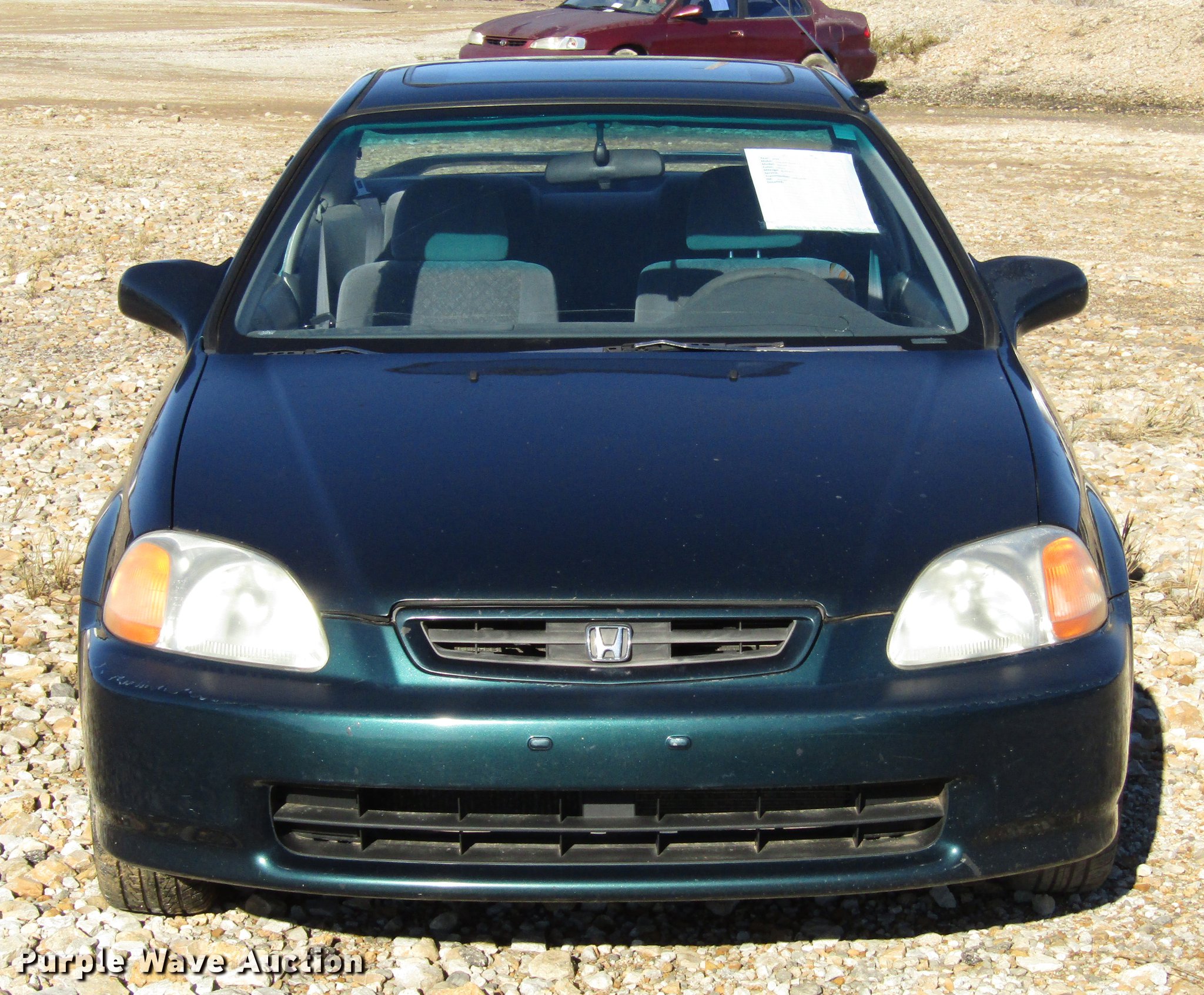 Purple Wave is selling a used Passenger Vehicle in Kansas. This item is a 1998 Honda Civic with the following: 268,847 miles on odometer, 1.6L L4 SOHC 16V gas engine, Five speed manual transmission, AC and heat, Tilt, Cruise, AM/FM/CD, Power windows, locks, and mirrors, Cloth interior, Power sunroof, 185/65R14 tires, Dead battery, Cracked windshield