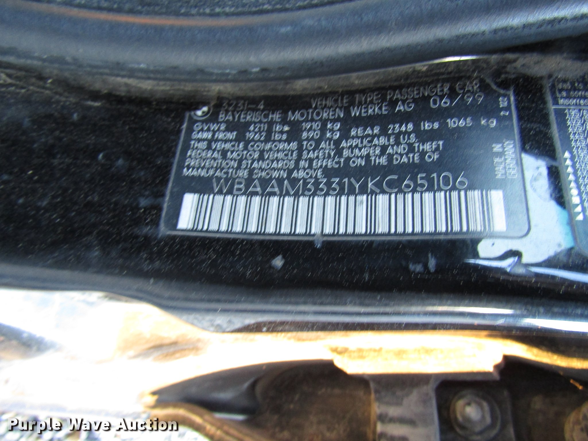 Purple Wave is selling a used Passenger Vehicle in Kansas. This item is a 2000 BMW 323i with the following: Unknown miles on odometer, 2.5L L6 DOHC 24V gas engine, Manual transmission, AC and heat, AM/FM/CD, Power windows, Leather interior, 225/40R18 tires, No keys, Non-operational unit