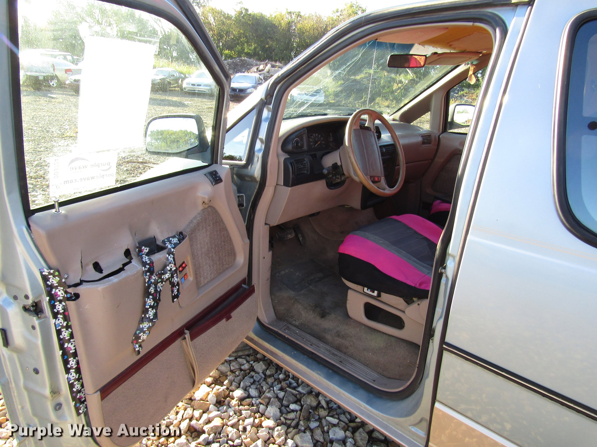 Purple Wave is selling a used Passenger Vehicle in Kansas. This item is a 1995 Ford Aerostar van with the following: 208,561 miles on odometer, 4.0L V6 OHV 12V gas engine, Automatic transmission, AC and heat, Tilt, Cruise, AM/FM, Power windows, locks, and seat, Cloth interior, 185/70R14 front tires, 205/75R14 rear tires, Cracked windshield, Possible power steering issues, Side sliding door inoperable