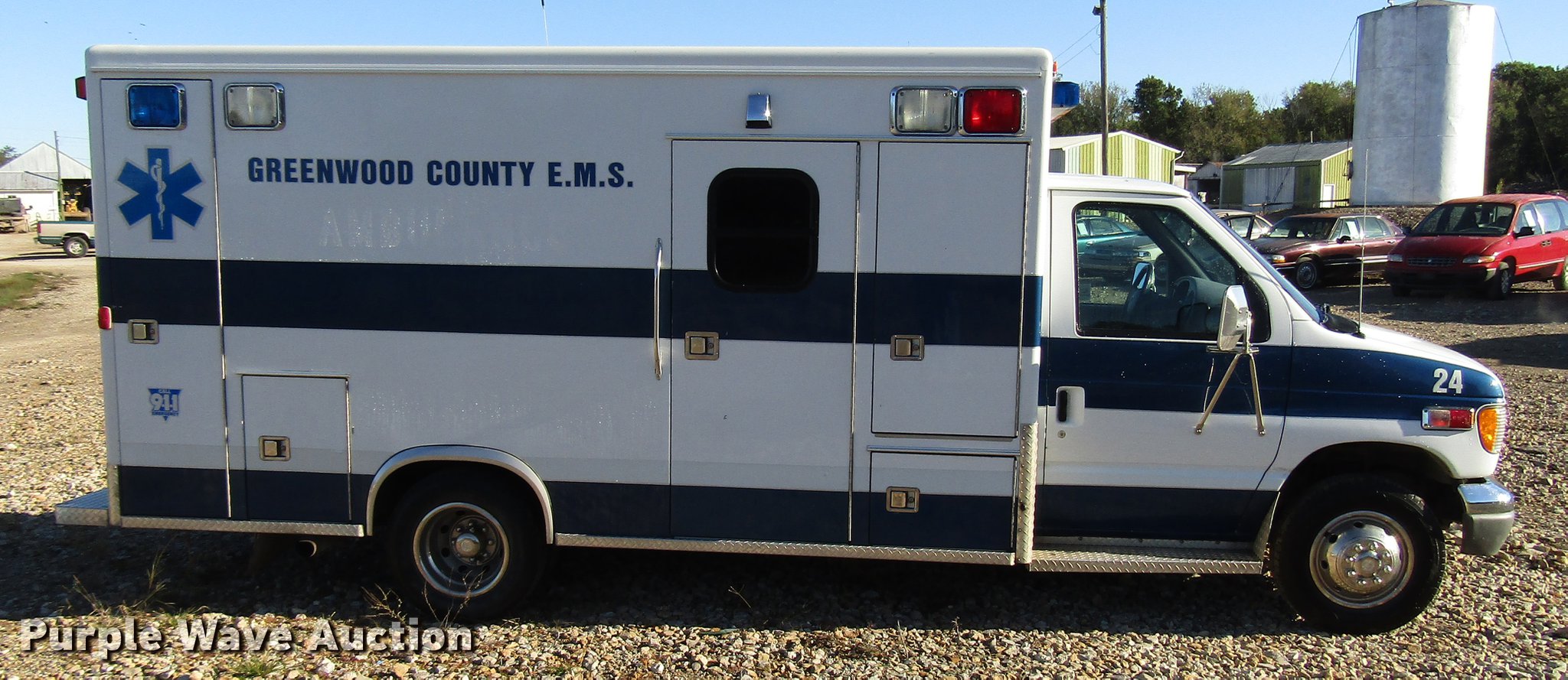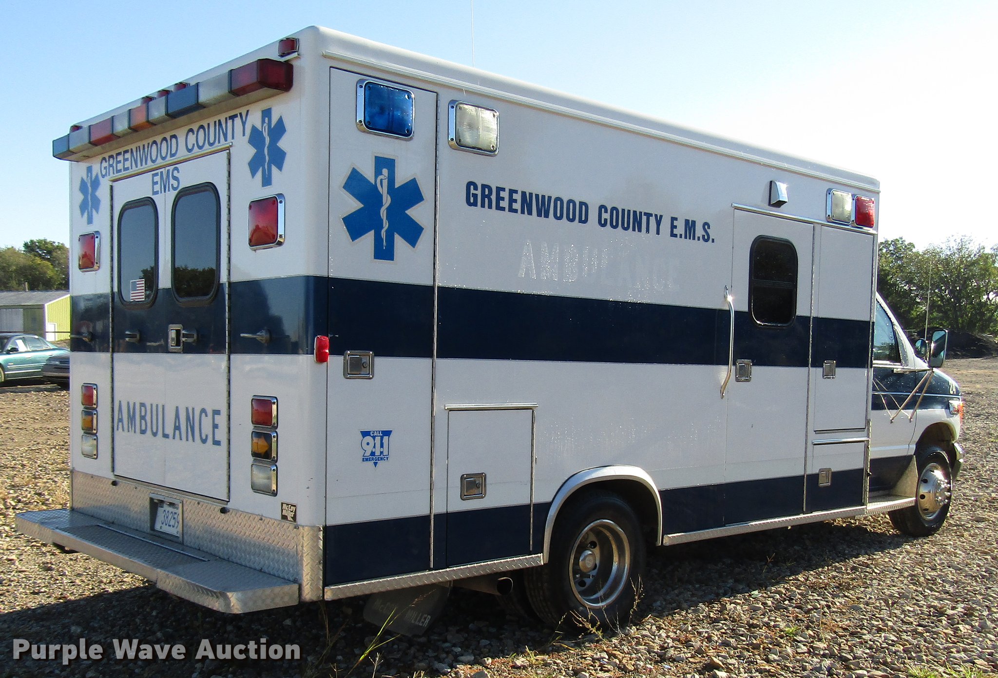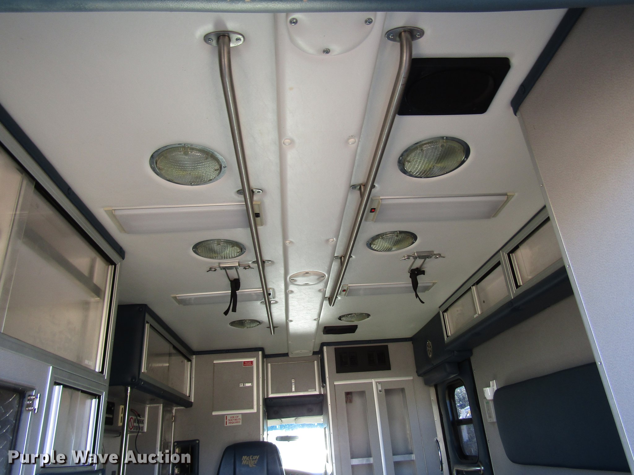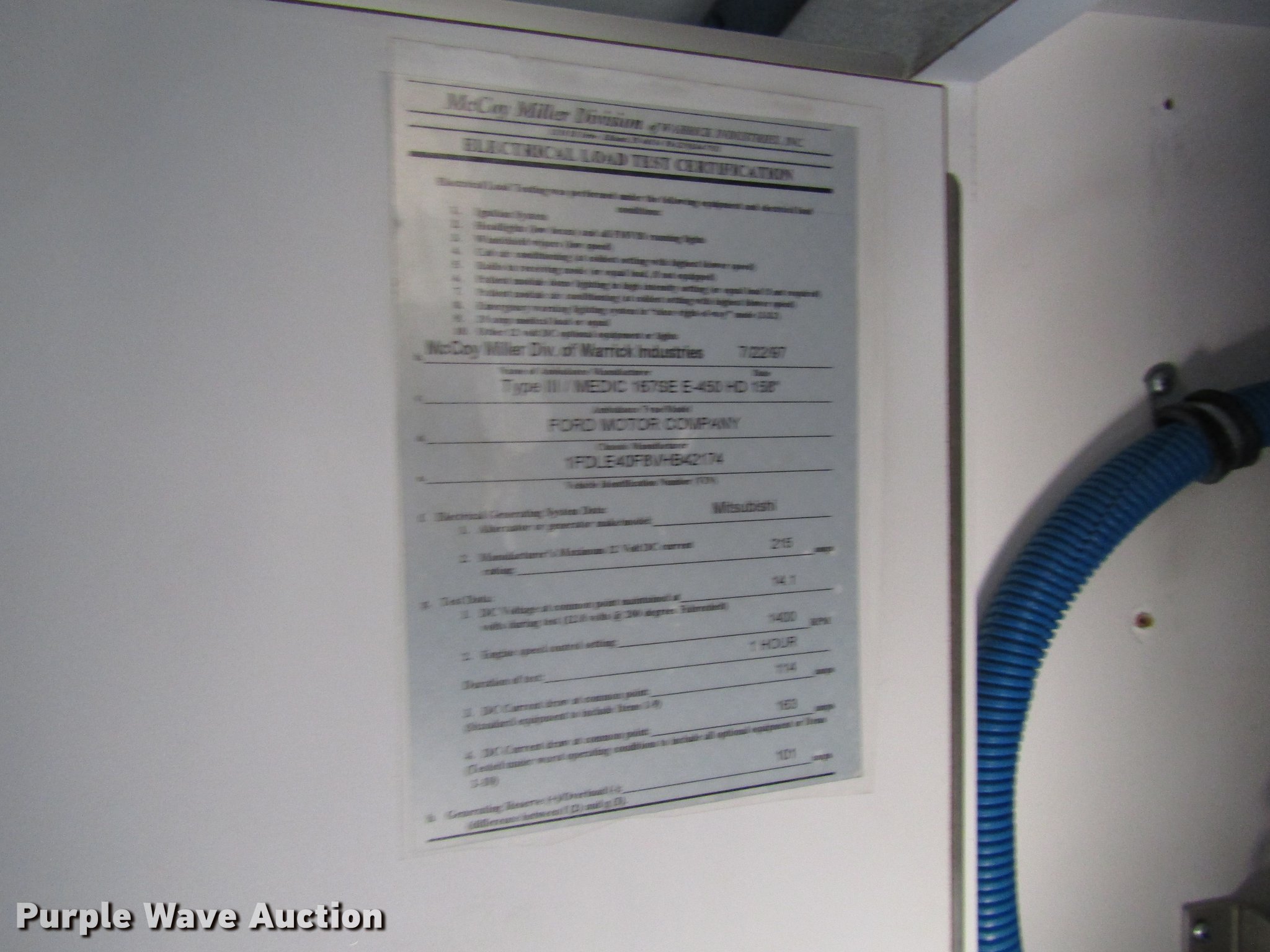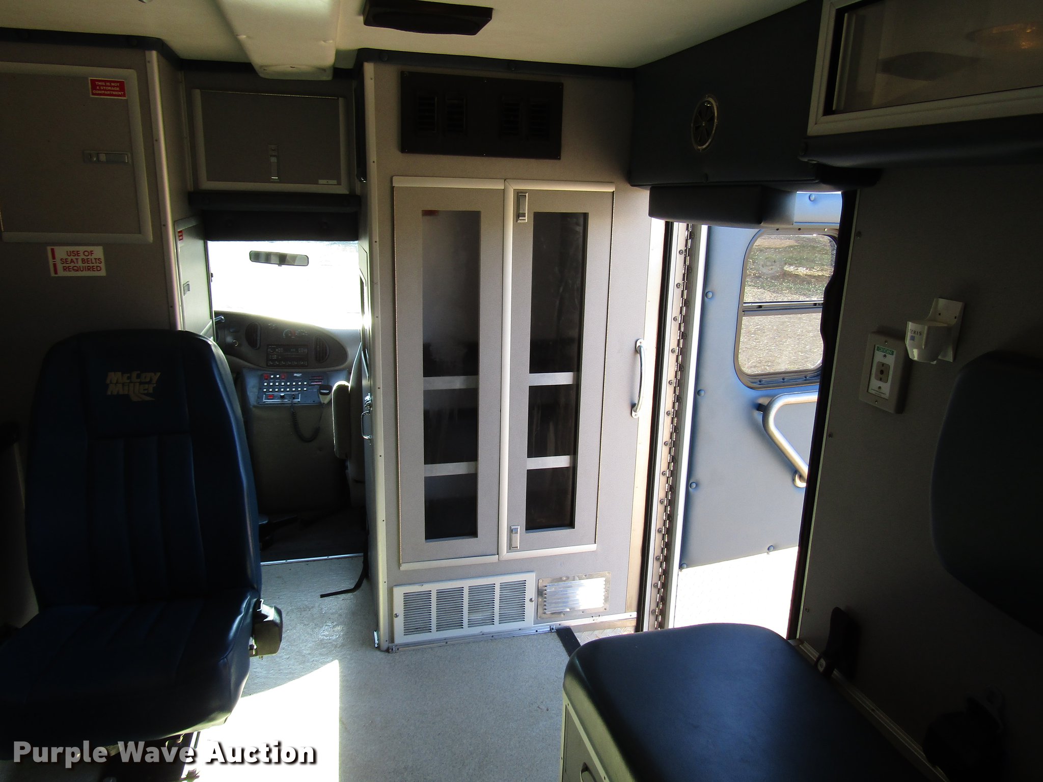 Purple Wave is selling a used Fire Truck or Emergency Vehicle in Kansas. This item is a 1997 Ford Econoline E450 ambulance with the following: 129,586 miles on odometer, 7.3L V8 OHV 16V turbo diesel engine, Automatic transmission, AC and heat, AM/FM, Power windows and locks, Auxiliary controls, Mccoy Miller ambulance body, 14'L x 8'W, Emergency lights and sirens, Whelen PA/siren controls, Emergency lights, 225/75R16 tires, GVWR 14,050 lbs, Decals will be removed prior to auction