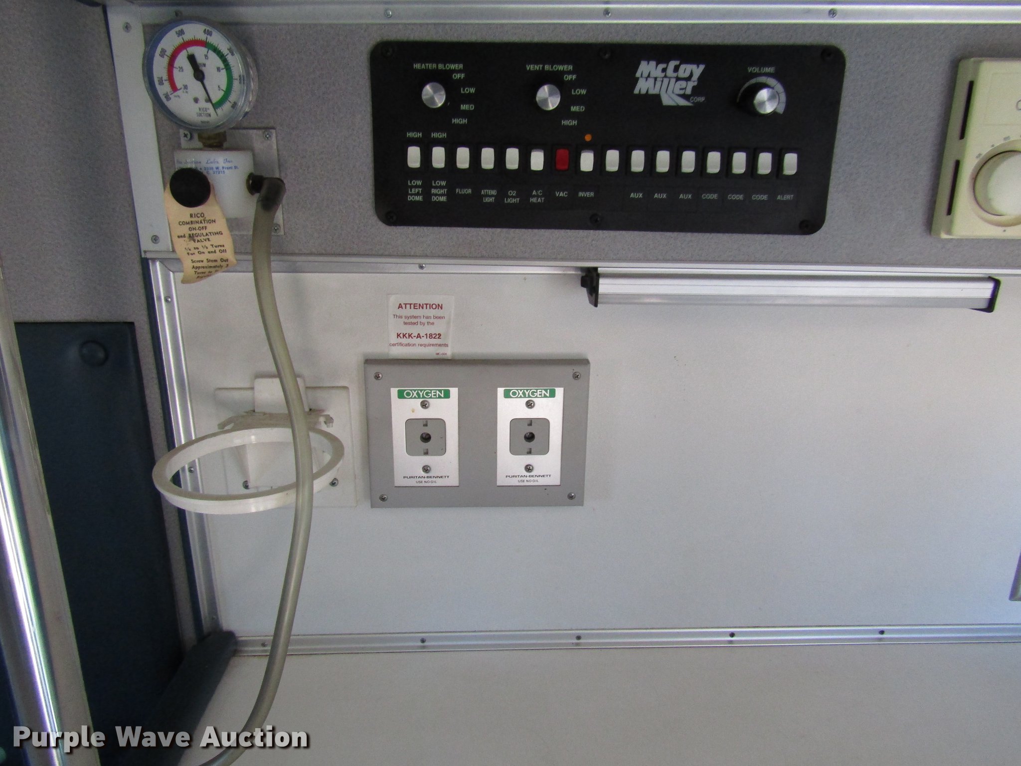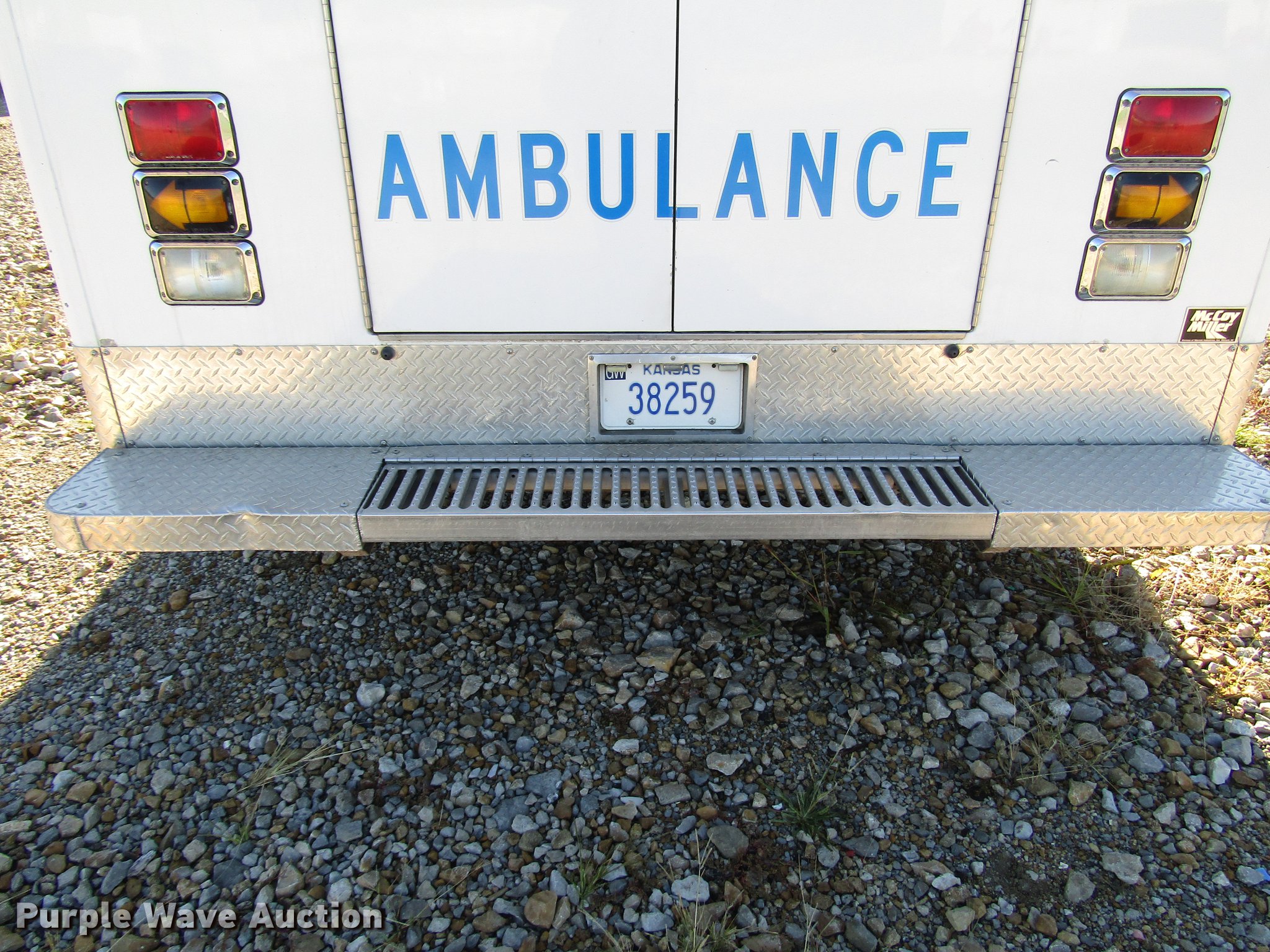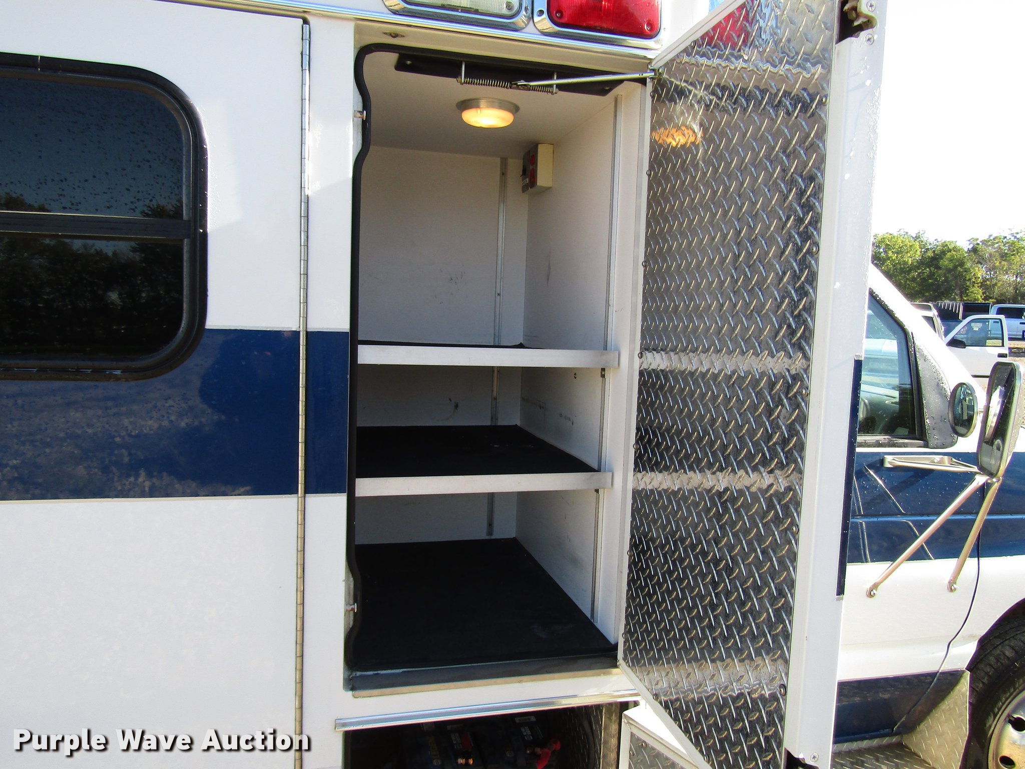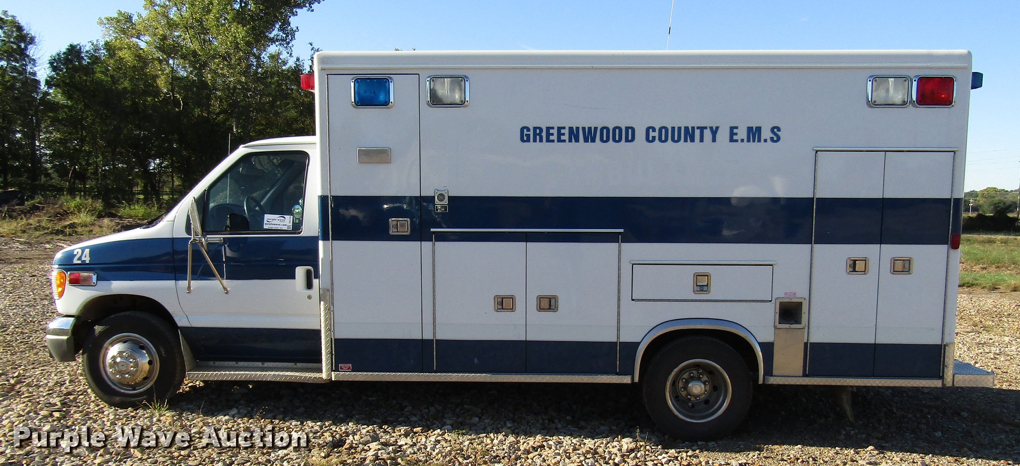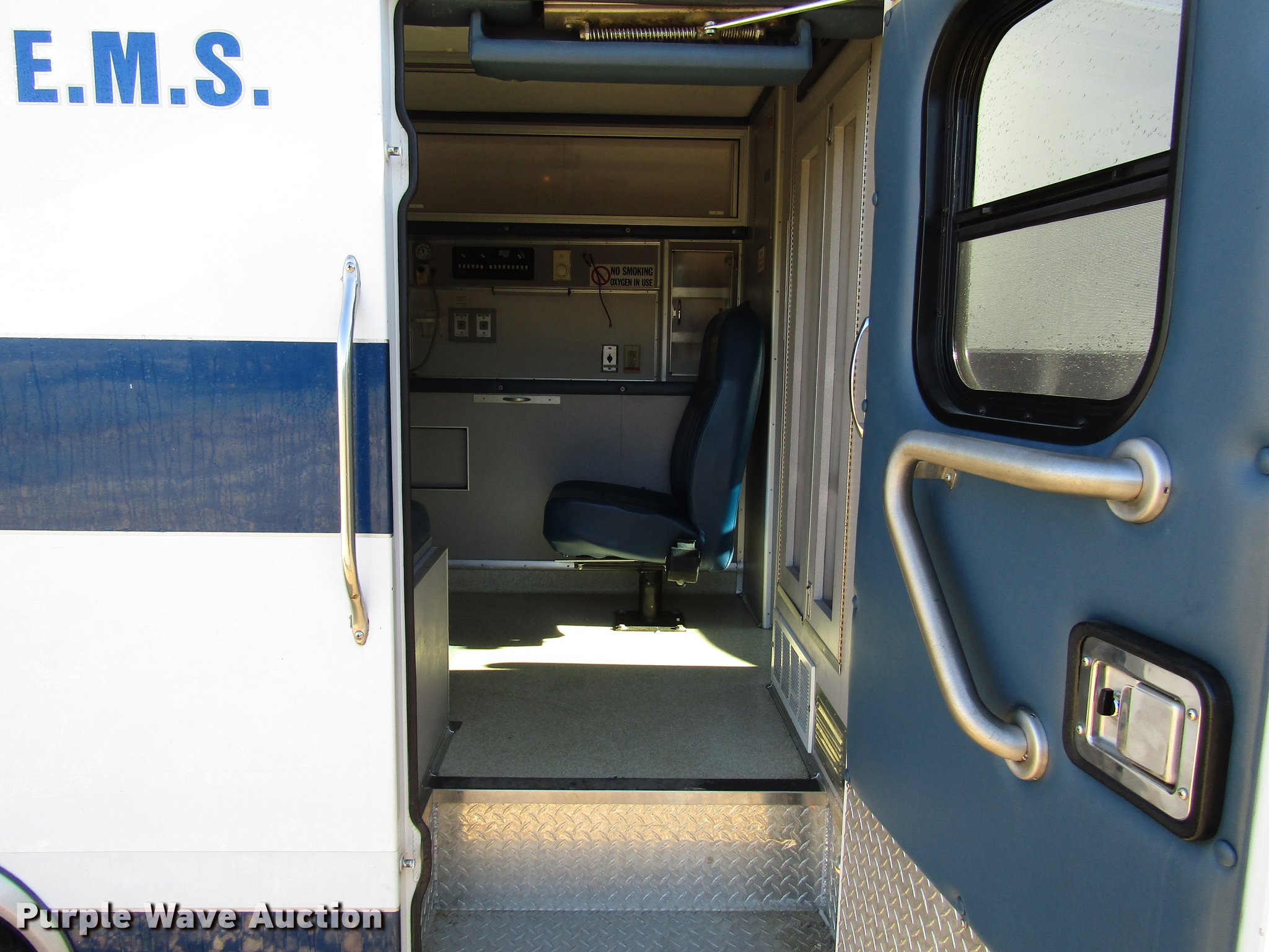 Purple Wave is selling a used Fire Truck or Emergency Vehicle in Kansas. This item is a 1997 Ford Econoline E450 ambulance with the following: 129,586 miles on odometer, 7.3L V8 OHV 16V turbo diesel engine, Automatic transmission, AC and heat, AM/FM, Power windows and locks, Auxiliary controls, Mccoy Miller ambulance body, 14'L x 8'W, Emergency lights and sirens, Whelen PA/siren controls, Emergency lights, 225/75R16 tires, GVWR 14,050 lbs, Decals will be removed prior to auction