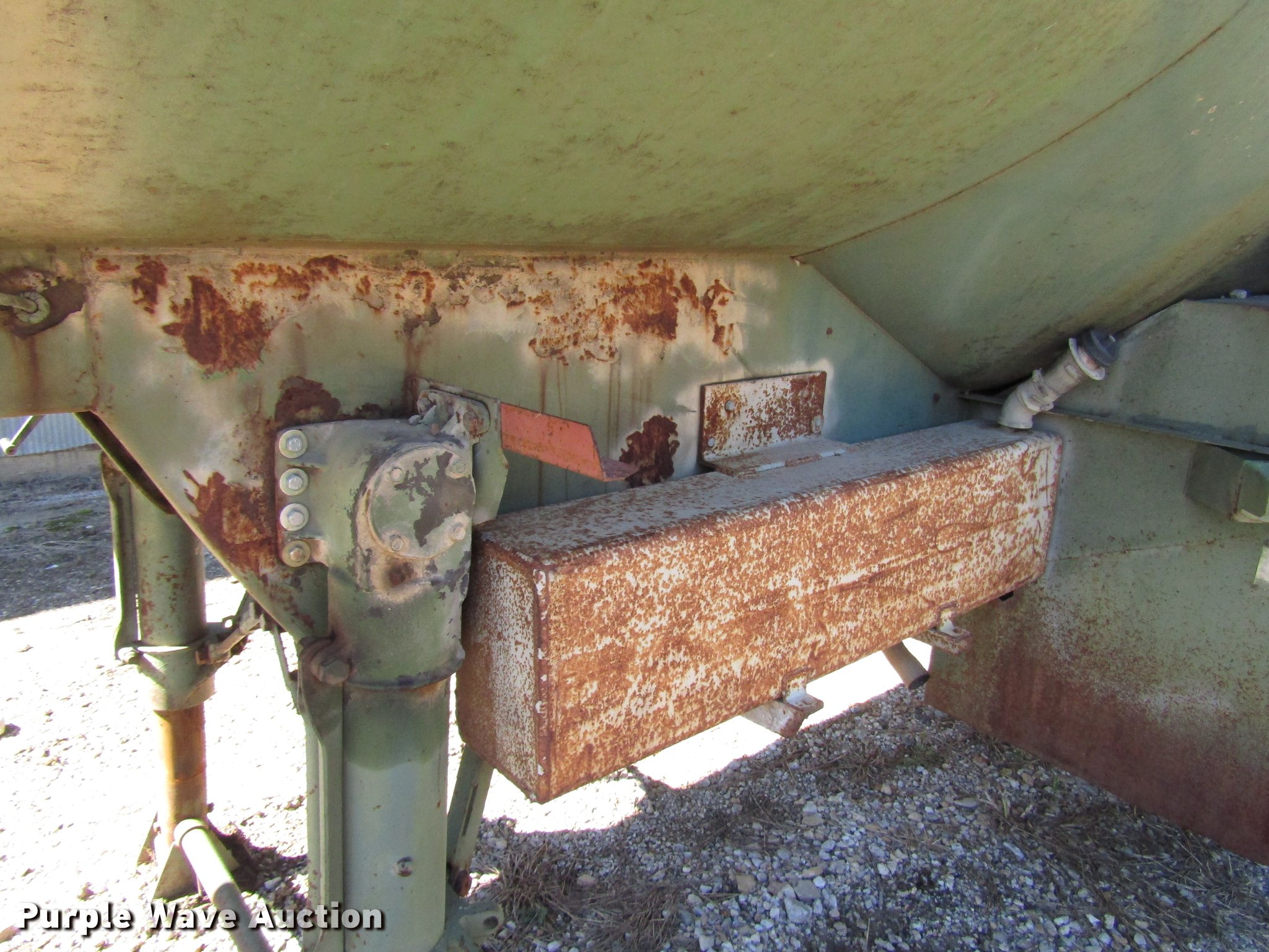 1968 IMP Omaha tank trailer. 30'L x 94"W, 5,000 gallon stainless steel tank (2) compartments, (3) 2.5" outlet valves, (2) 10"W manways/manholes, Pump 2.5" outlet, Full length walkway, Under-mounted toolbox, Fifth wheel plate, Dual leg landing gear, Spring suspension, Air brakes, Tandem axle, Steel wheels, 11.00-20 tires. Kansas title. Title distribution may be delayed up to 14 days from verification of funds. OMH962099. Greenwood County. Eureka, KS 67045