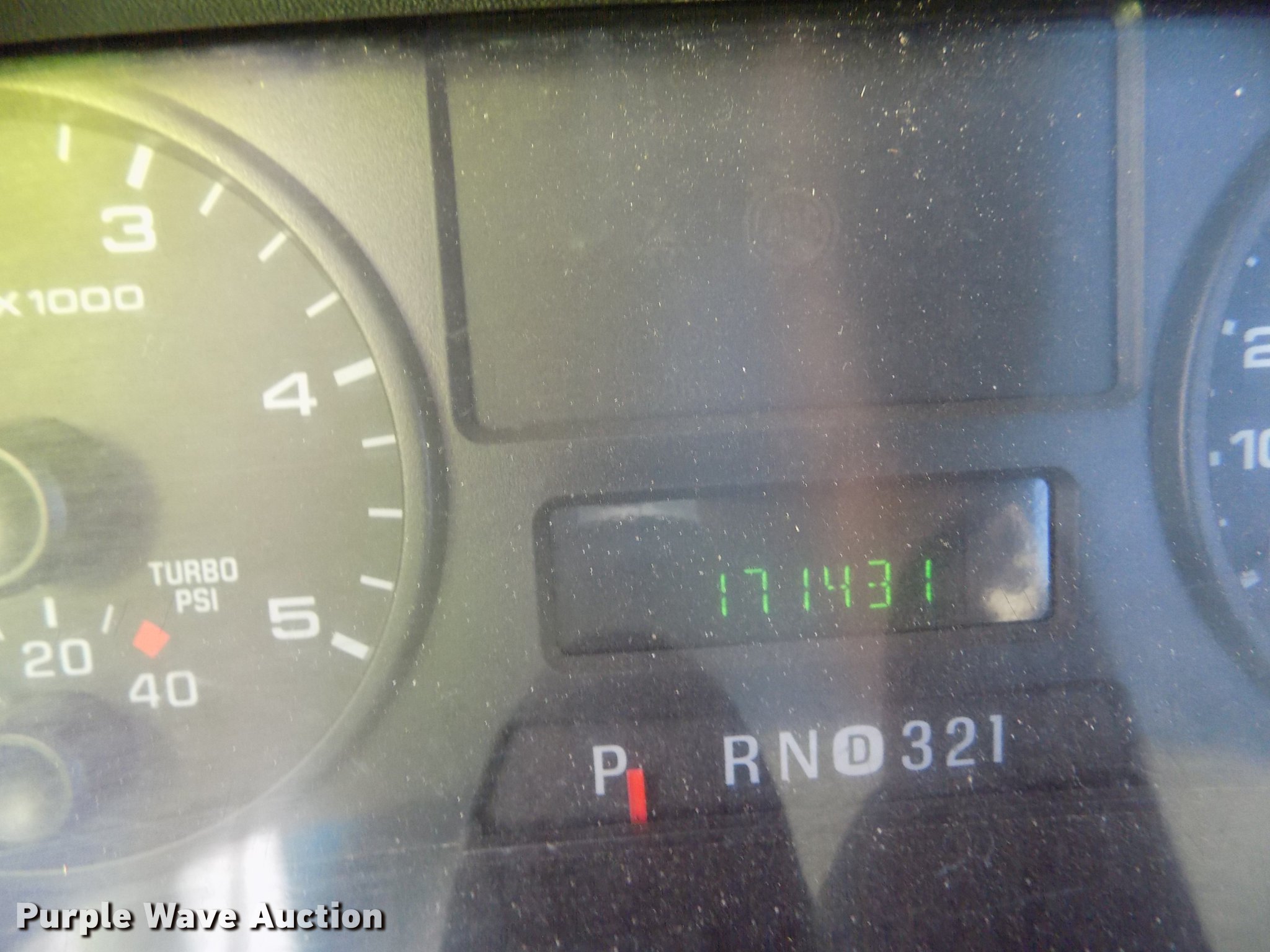 Purple Wave is selling a used 3/4 or 1 Ton Pickup or Van in Kansas. This item is a 2006 Ford F250 Super Duty XL pickup truck with the following: 171,431 miles on odometer, 6,774 hours on meter, 6.0L V8 OHV 32V turbo diesel engine, Automatic transmission, AC and heat, Tilt, Cruise, AM/FM, Vinyl interior, Front tow hooks, Long bed, Auxiliary fuel tank, Pump, Meter, Toolboxes, Receiver hitch, Trailer wiring, LT245/75R17 tires, Check engine light on, Batteries bad, Hail damage, Clear coat peeling, KDOT ID 113-6236