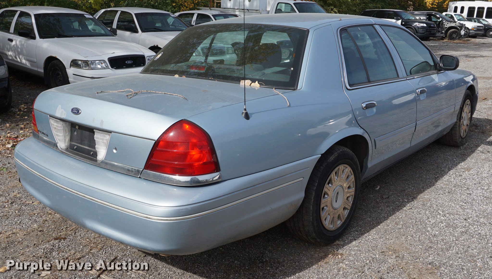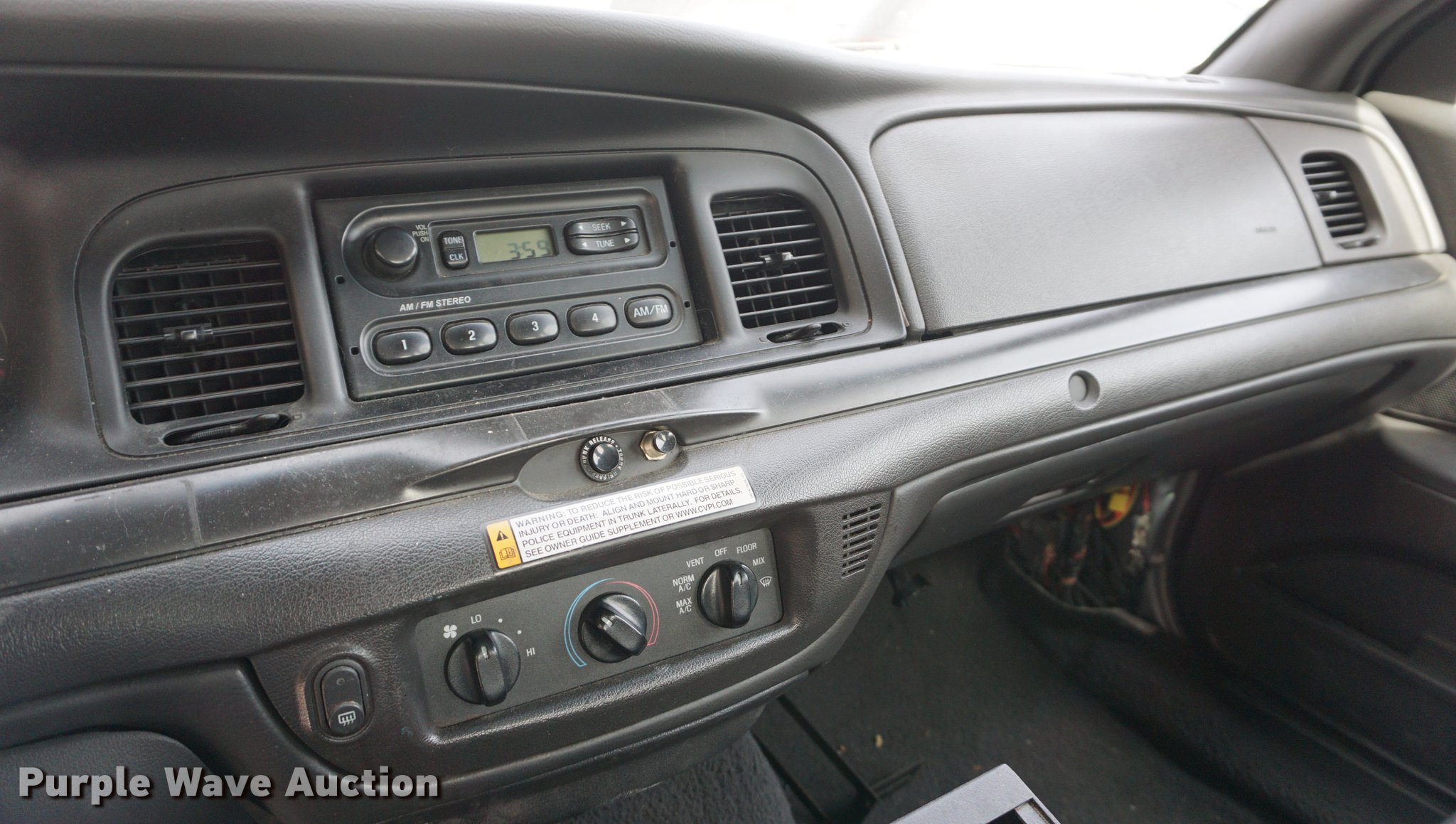 Purple Wave is selling a used Passenger Vehicle in Kansas. This item is a 2005 Ford Crown Victoria Police Interceptor with the following: 199,579 miles on odometer, 4.6L V8 SOHC 16V gas engine, Automatic transmission, AC and heat, Tilt, Cruise, AM/FM, Power windows, locks, mirrors, and seat, Cloth interior, 225/60R16 tires