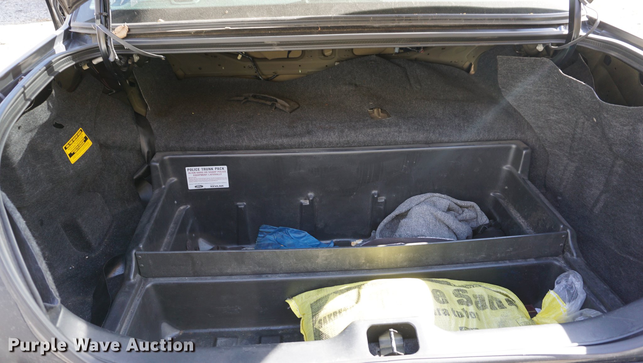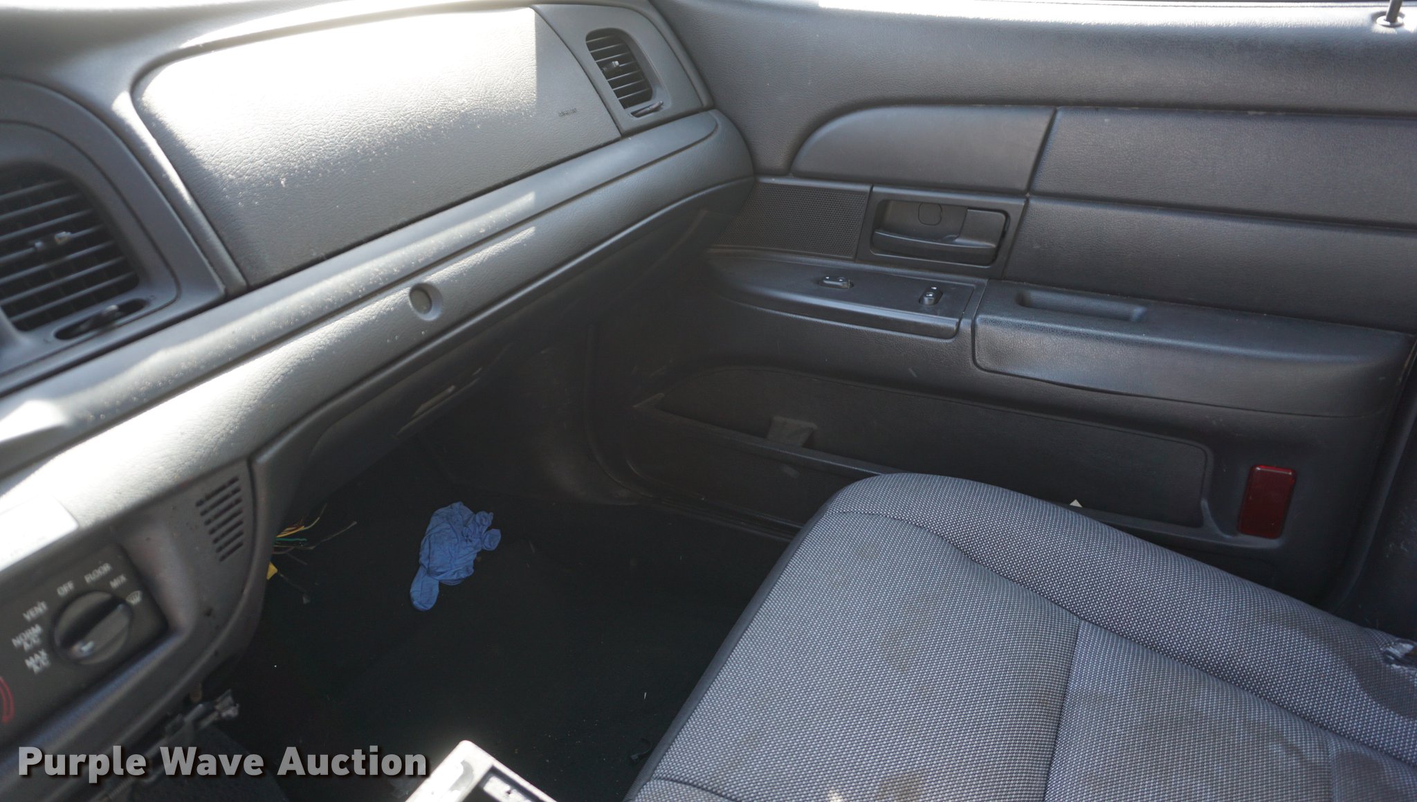 Purple Wave is selling a used Passenger Vehicle in Kansas. This item is a 2006 Ford Crown Victoria Police Interceptor with the following: 268,935 miles on odometer, 4.6L V8 SOHC 16V gas engine, Automatic transmission, AC and heat, Tilt, Cruise, AM/FM, Power windows, locks, mirrors, and seat, Cloth front interior, Vinyl rear interior, Spot light, Cage divider, 235/55R17 tires