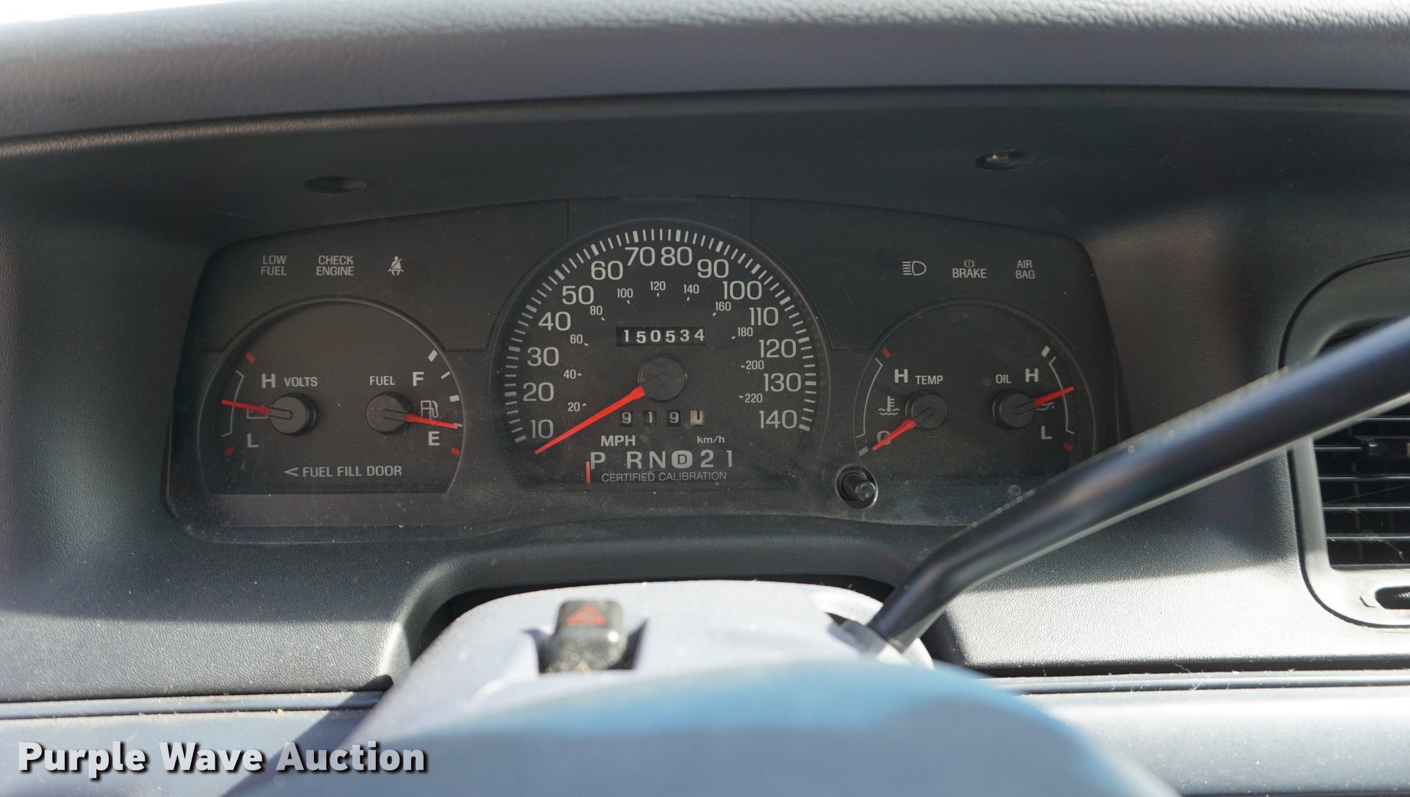 Purple Wave is selling a used Passenger Vehicle in Kansas. This item is a 2000 Ford Crown Victoria Police Interceptor with the following: 150,534 miles on odometer, 4.6L V8 SOHC 16V gas engine, Auotmatic transmission, AC and heat, Tilt, Cruise, AM/FM, Power windows, locks, mirror, and seat, Cloth interior, 225/60R16 tires, Battery dead