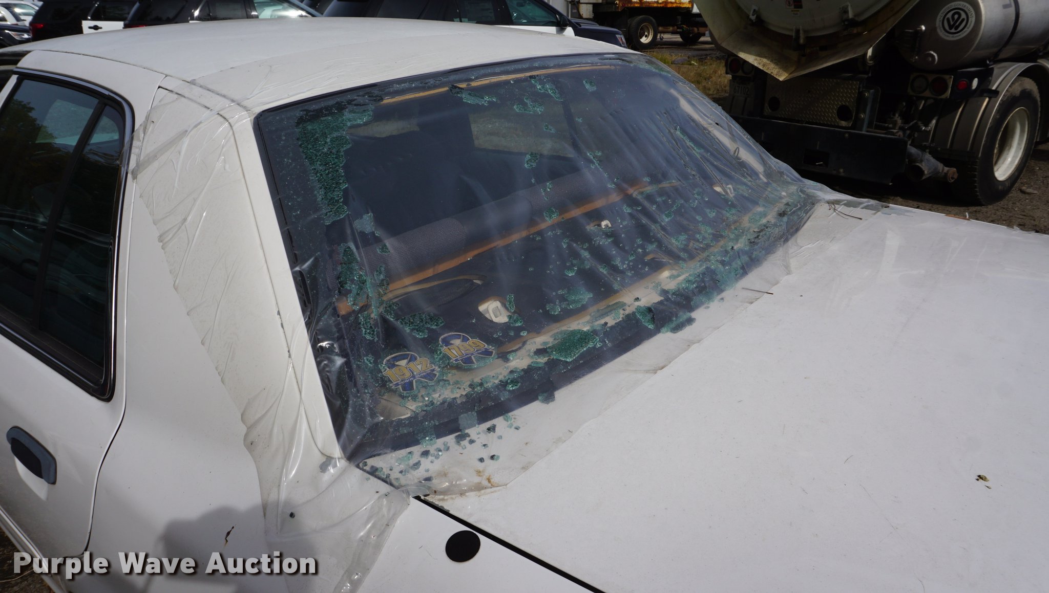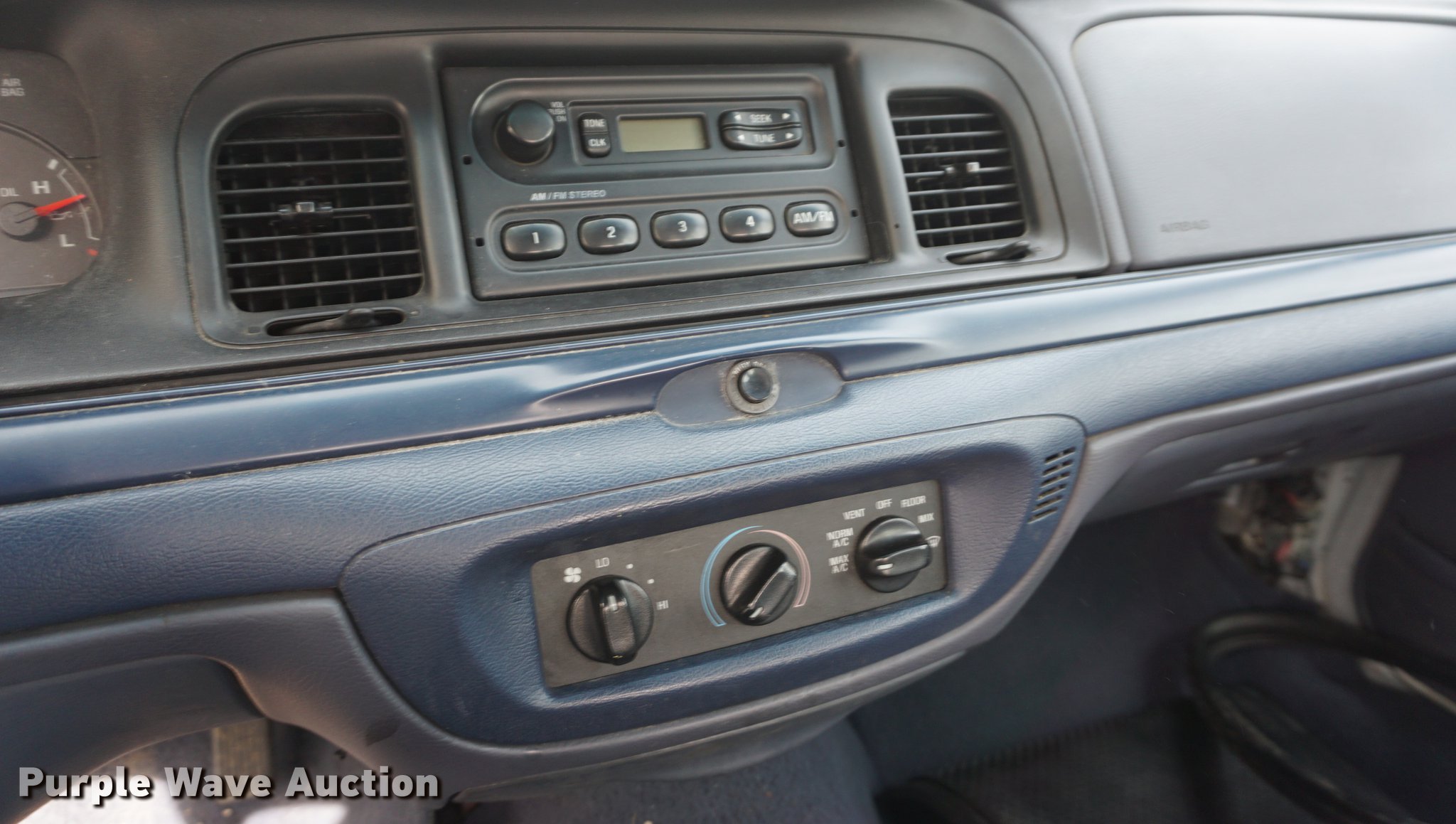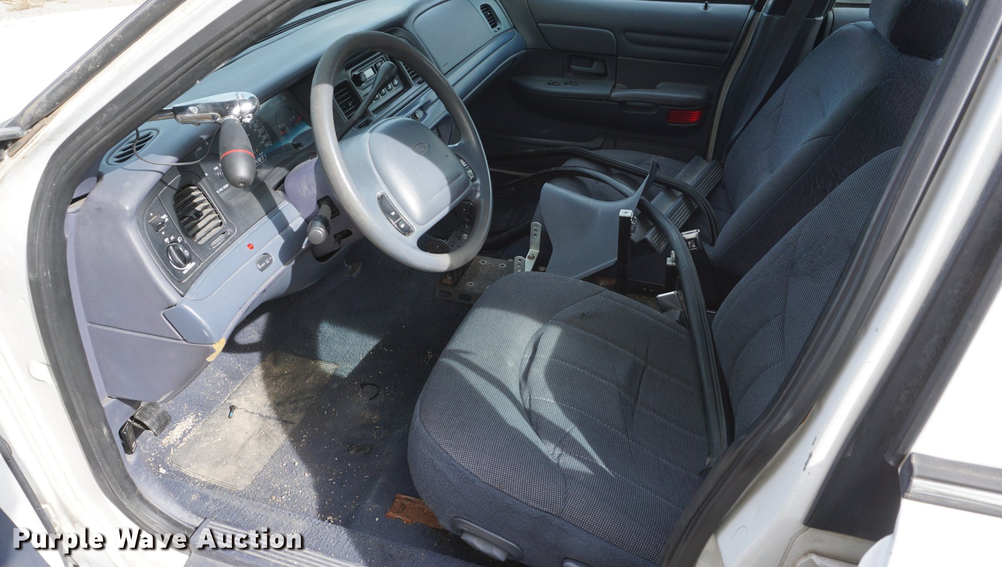 Purple Wave is selling a used Passenger Vehicle in Kansas. This item is a 2000 Ford Crown Victoria Police Interceptor with the following: 92,596 miles on odometer, 4.6L V8 SOHC 16V gas engine, Automatic transmission, AC and heat, Tilt, Cruise, AM/FM, Power windows, locks, mirrors, and seat, Cloth interior, Spot light, 225/60R16 tires, Battery dead, Rear window broken