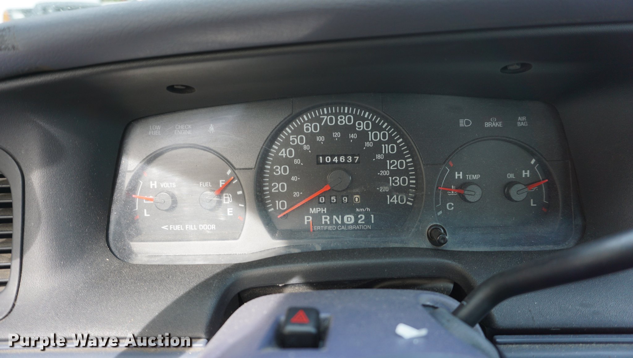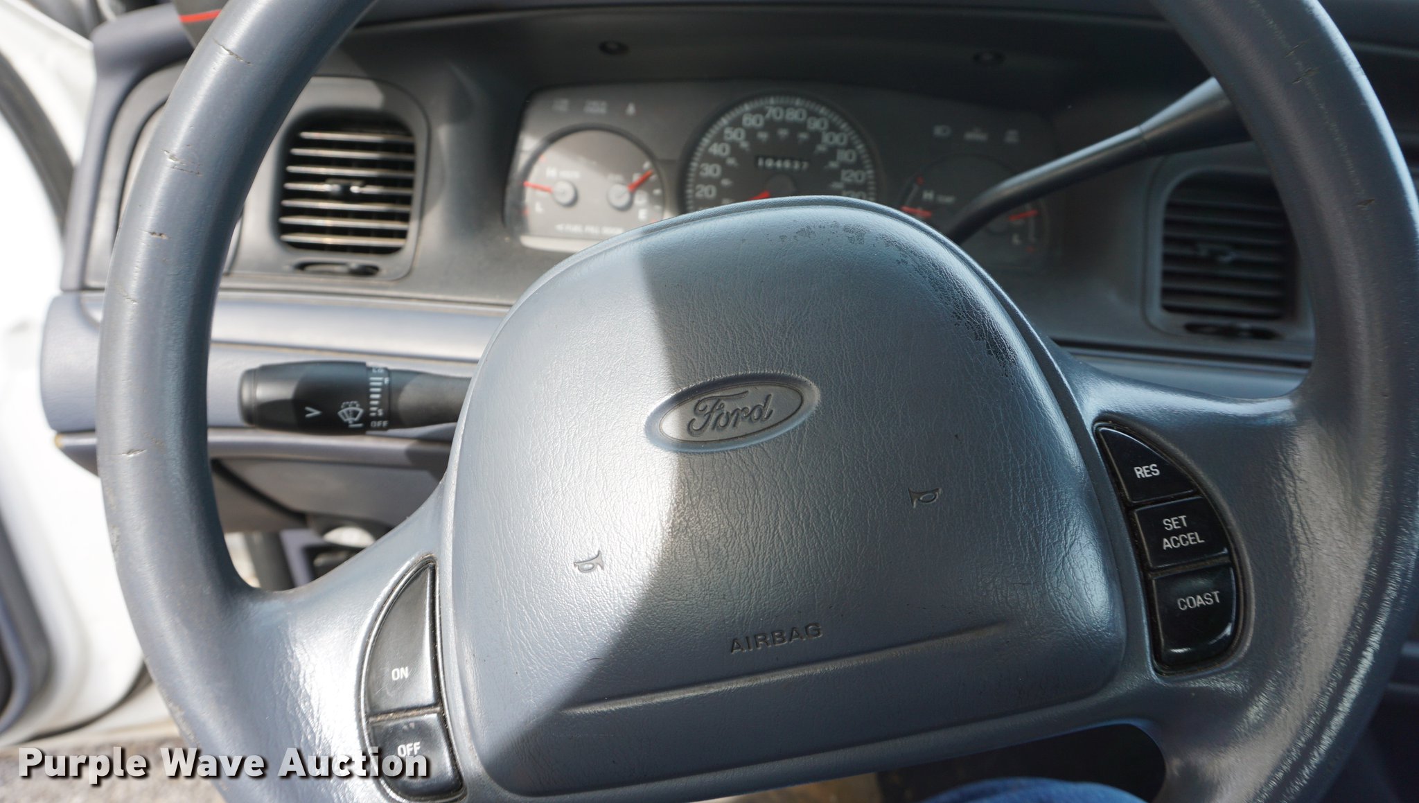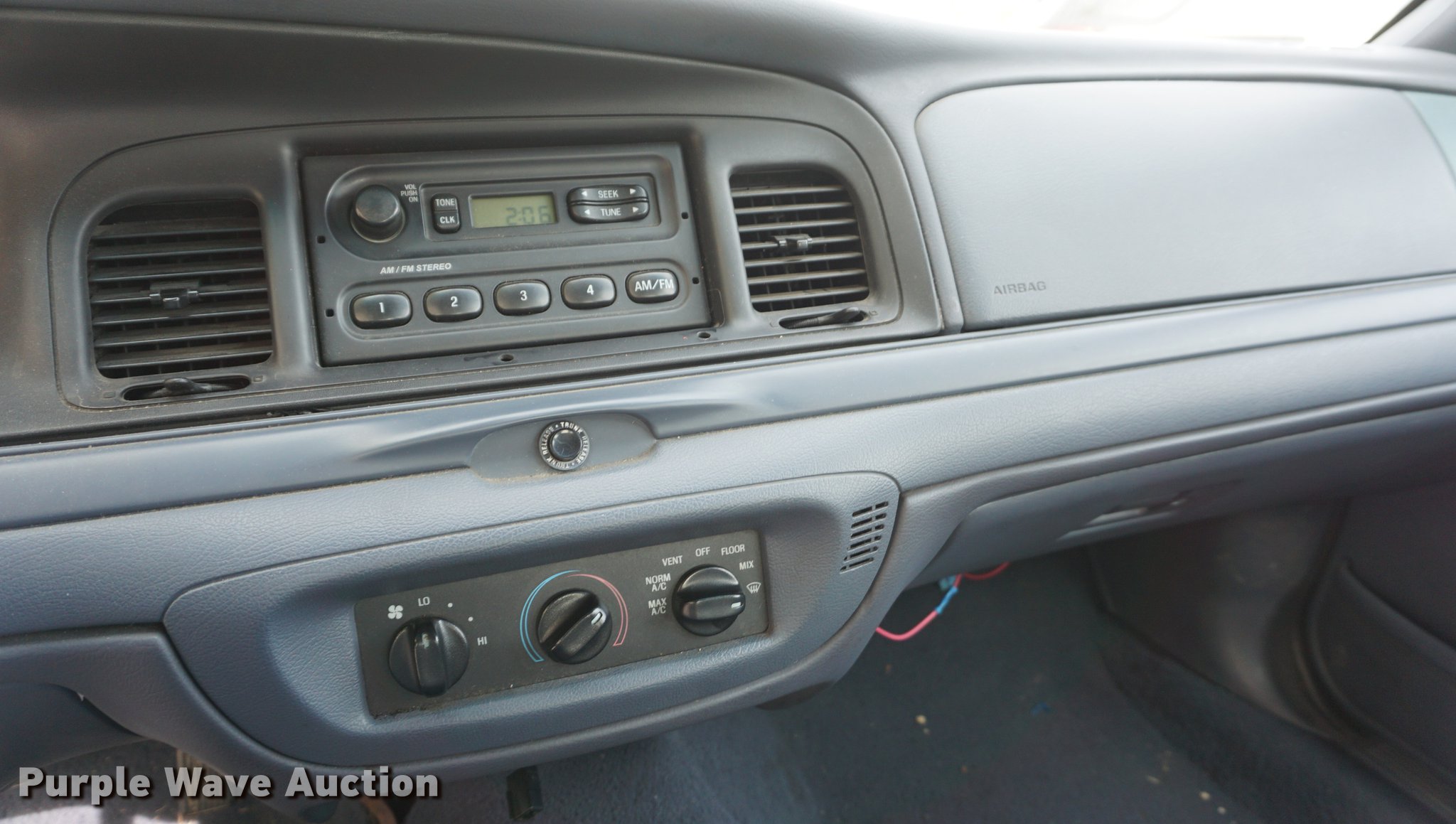 Purple Wave is selling a used Passenger Vehicle in Kansas. This item is a 2000 Ford Crown Victoria Police Interceptor with the following: 104,637 miles on odometer, 4.6L V8 SOHC 16V gas engine, Automatic transmission, AC and heat, Tilt, Cruise, AM/FM, Power windows, locks, mirrors, and seat, Cloth interior, Spot light, 225/60R16 tires