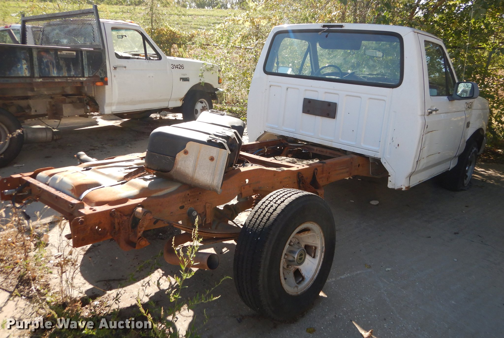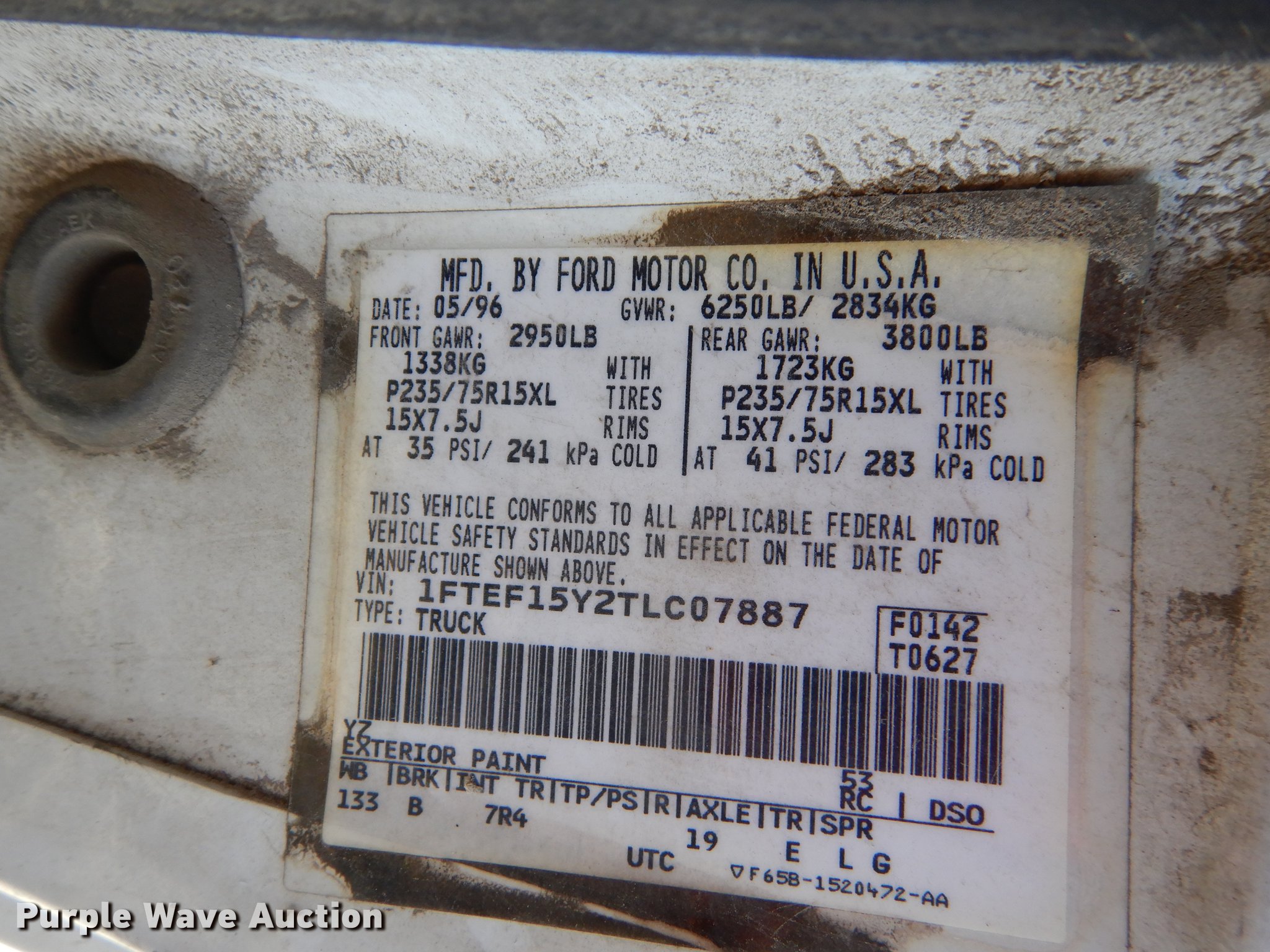 Purple Wave is selling a used 1/2 Ton Pickup or Van in Kansas. This item is a 1996 Ford F150 pickup truck cab and chassis with the following: Unknown miles on odometer, 4.9L L6 OHV 12V gas engine, Automatic transmission, Heat, 93" from cab to end of frame, 245/70R16 tires, Flat tire, No seat, Non-operational transmission, Non-operational unit, parts only