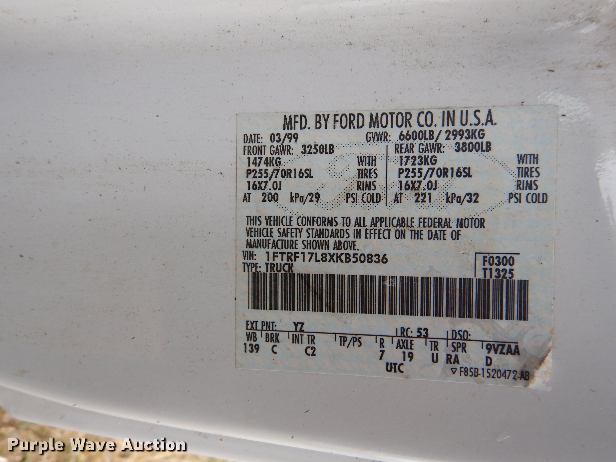 Purple Wave is selling a used 1/2 Ton Pickup or Van in Kansas. This item is a 1999 Ford F150 pickup truck with the following: 136,897 miles on odometer, 5.4L V8 SOHC 16V gas engine, Automatic transmission, AC and heat, AM/FM, Cloth interior, Long bed, Toolbox, 245/75R16 tires, No battery, Turns over, but will not start, Non-operational unit