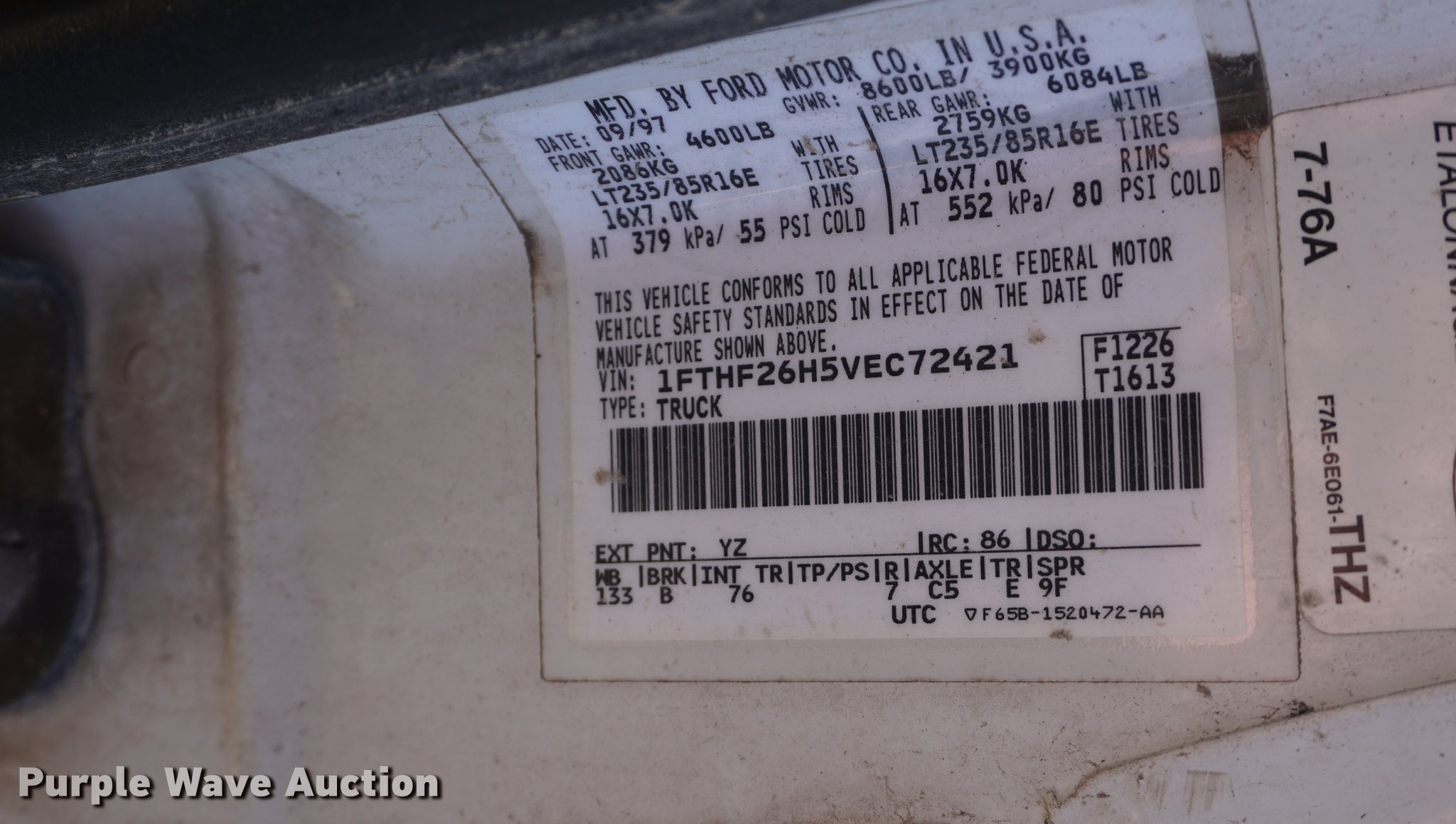 Purple Wave is selling a used 3/4 or 1 Ton Pickup or Van in Kansas. This item is a 1997 Ford F250 HD pickup truck with the following: 64,825 miles on odometer, 5.8L V8 OHV 16V gas engine, Automatic transmission, Four wheel drive, AC and heat, AM/FM, Cloth interior, Plow brackets, Headache rack, Receiver hitch, Trailer wiring, BF Goodrich 235/85R16 tires, No plow included, Dead battery, Runs rough, Limbs will be removed prior to auction, Unit# 31416