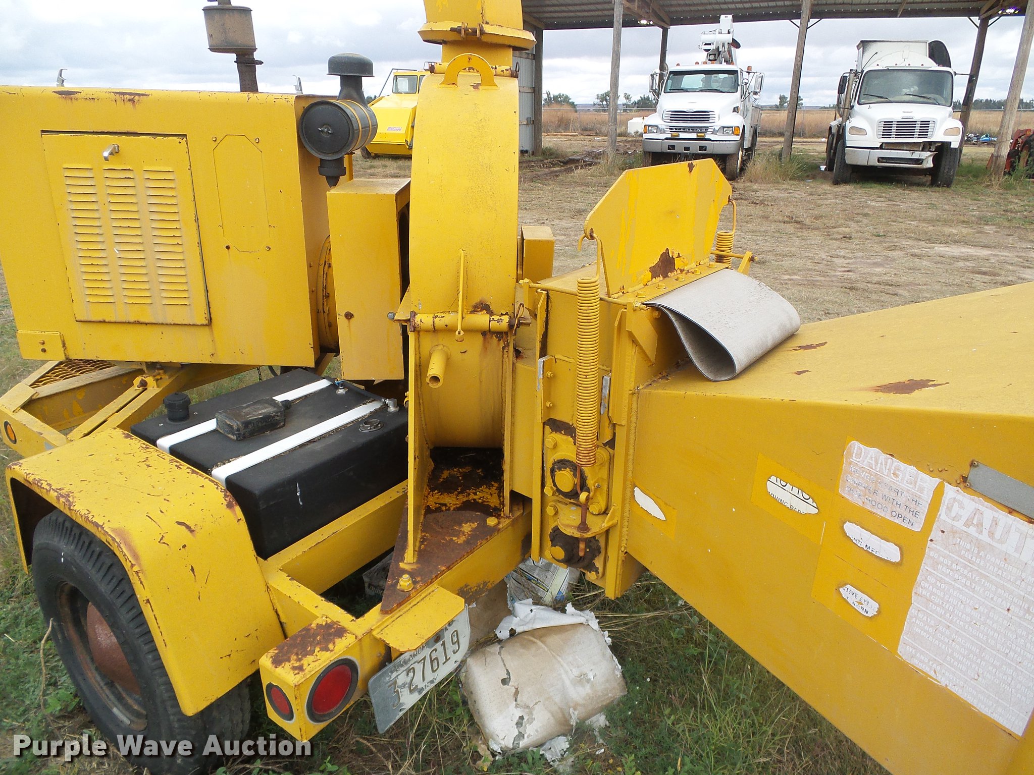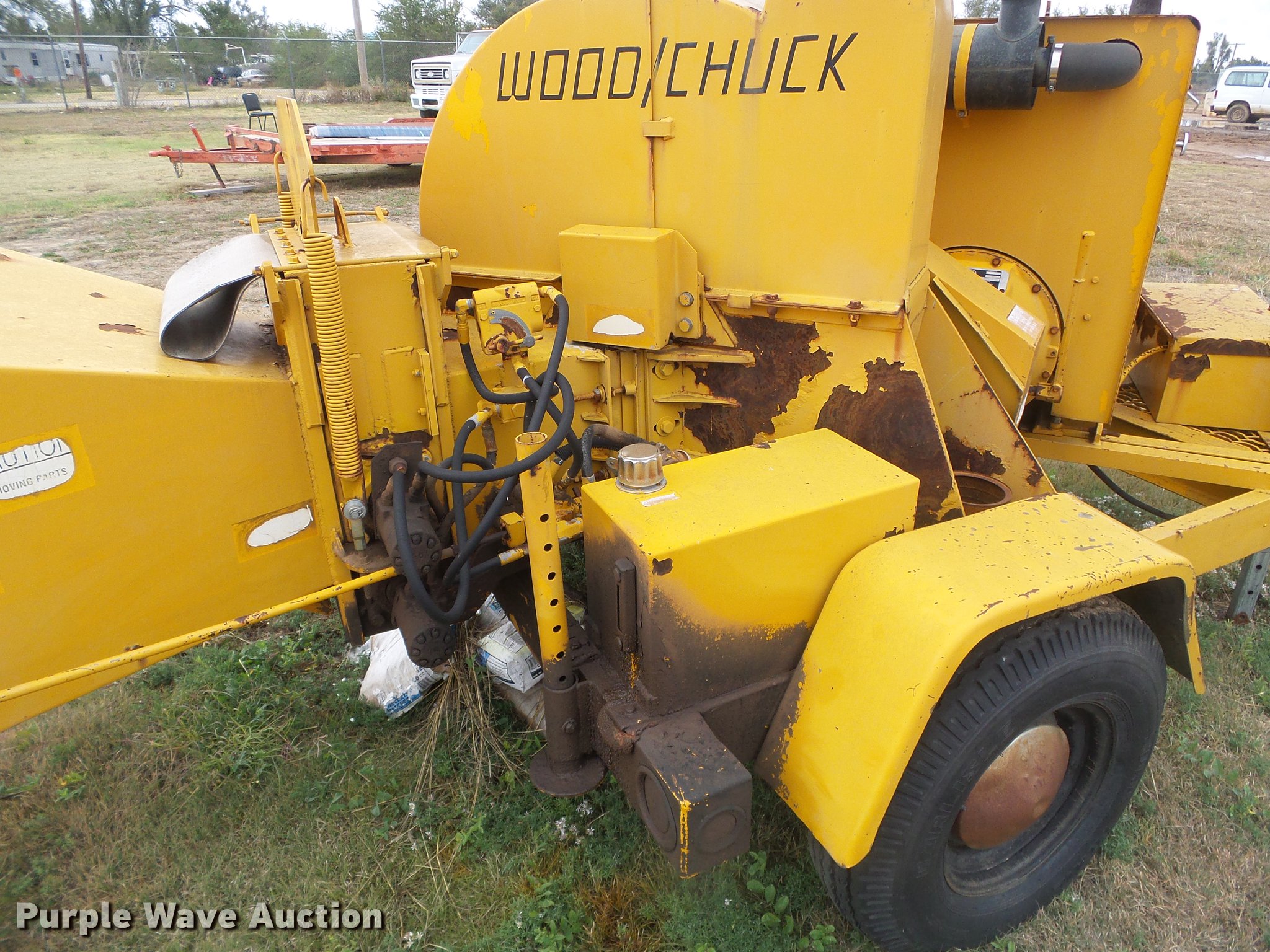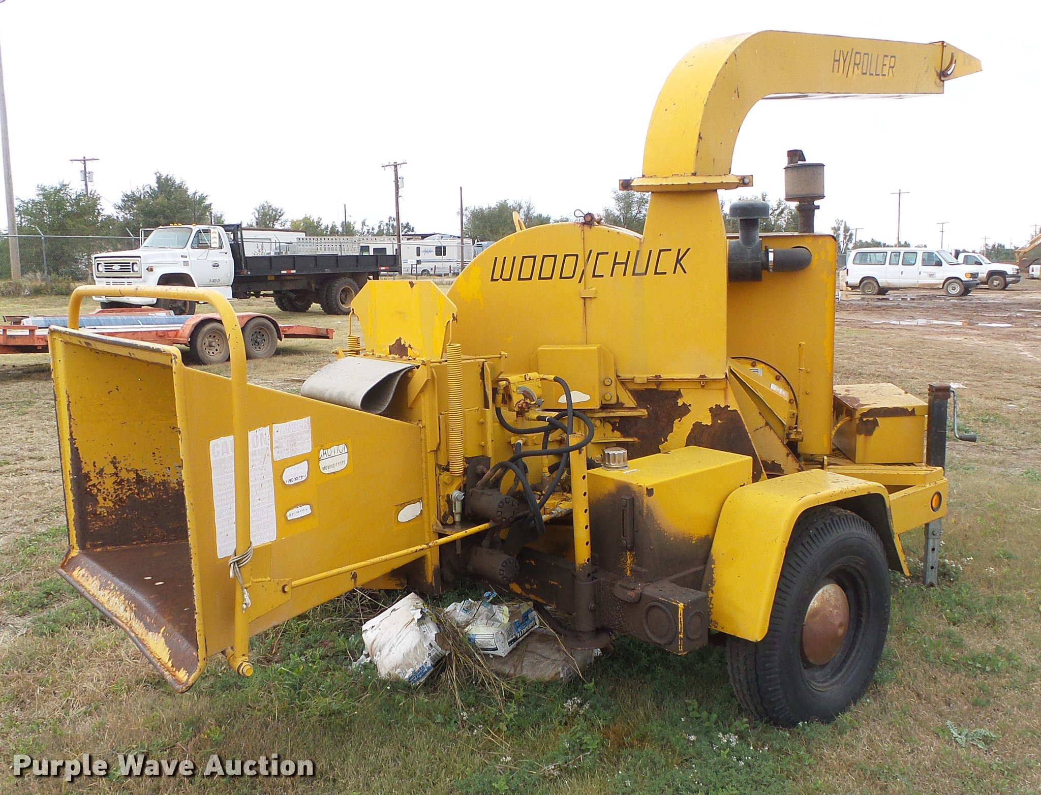 Purple Wave is selling a used Wood Chipper or Stump Grinder in Oklahoma. This item is a Wood Chuck 236D Hy/Roller wood chipper with the following: 1,529 hours on meter, Perkins four cylinder diesel engine, Serial U314725T, Twin disc SP111HP3 transmission, 16"W feed mouth, Outriggers, 2" ball hitch, 7.00-15LT tires, Battery needs to be replaced