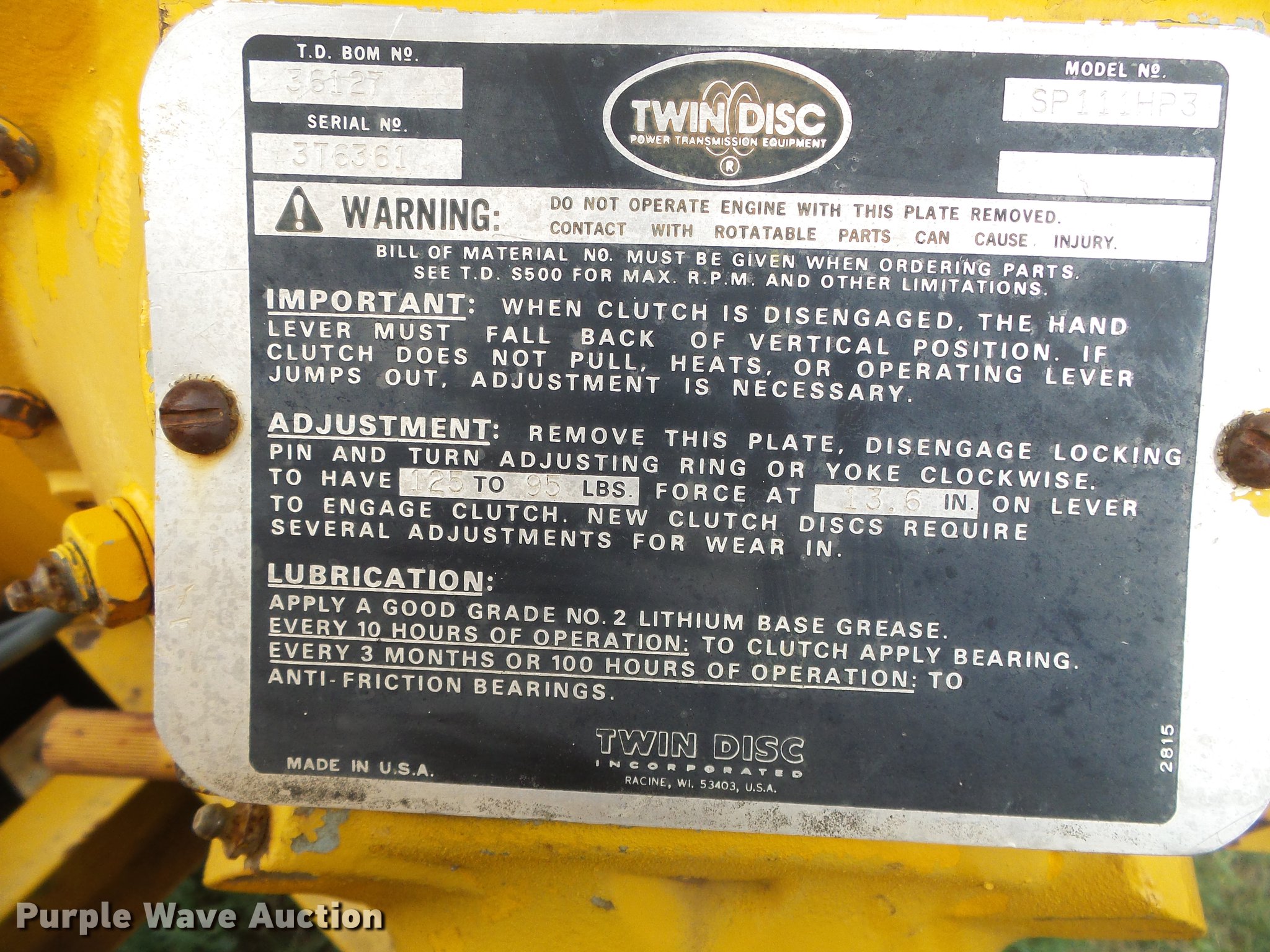 - Twin disc SP111HP3 transmission