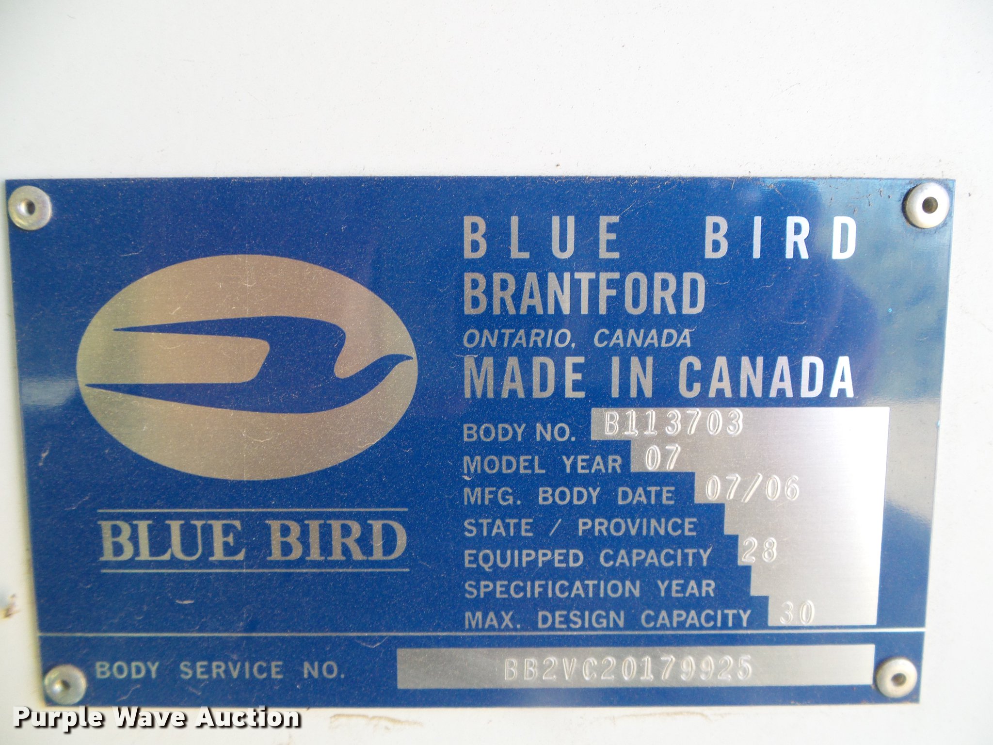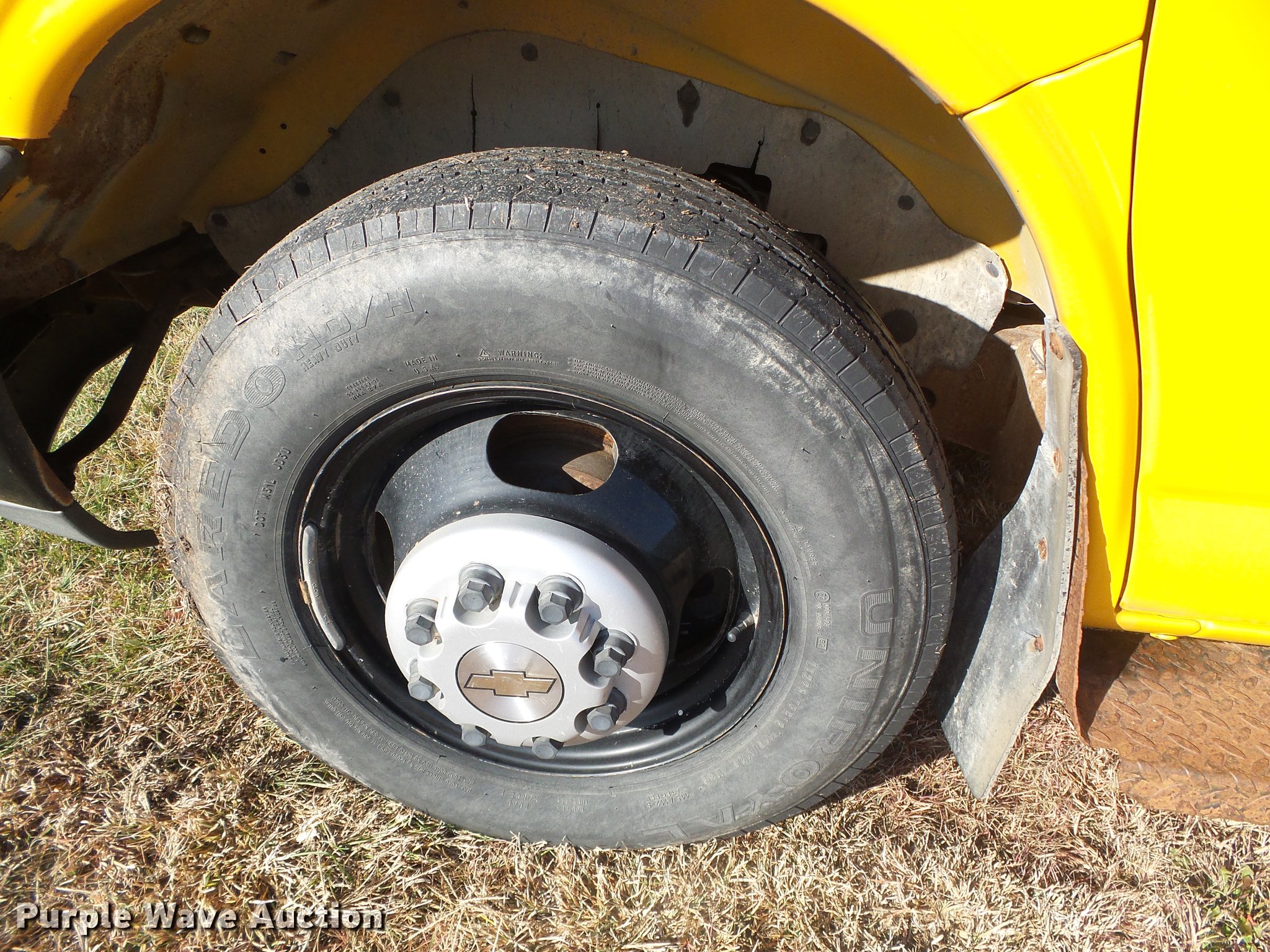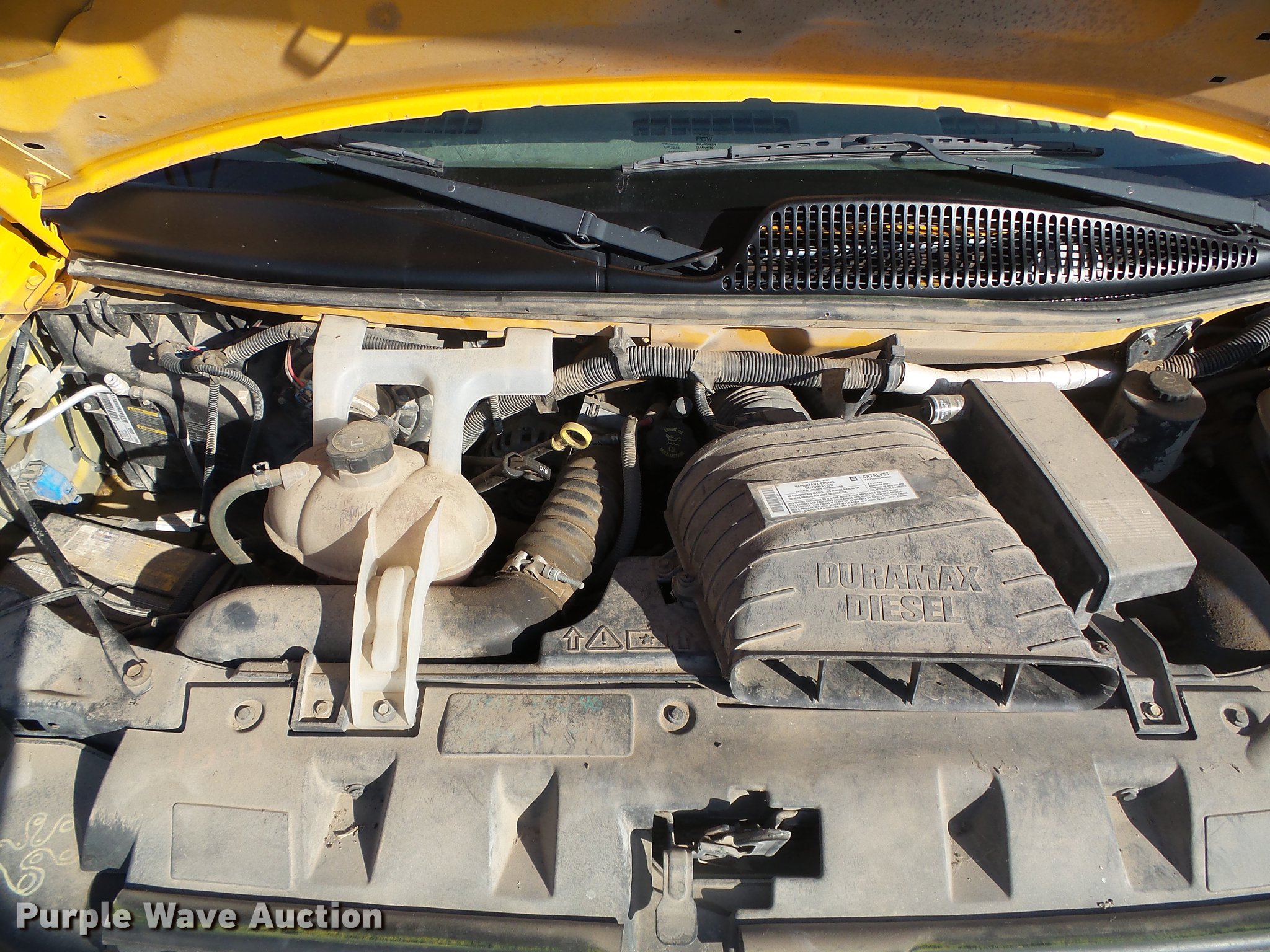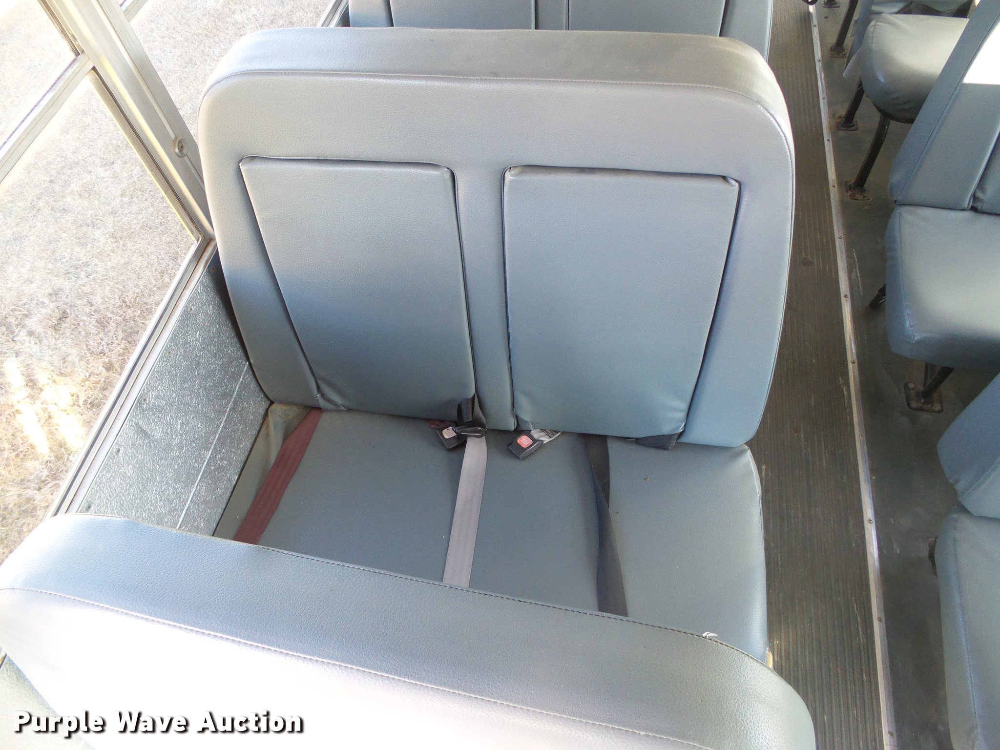 Purple Wave is selling a used Bus in Kansas. This item is a 2007 Chevrolet Express 3500 Blue Bird school bus with the following: Unknown miles on odometer, 6.6L V8 OHV 32V turbo diesel engine, Serial 6GMXH06.6591, Automatic transmission, Single axle, AC and heat, AM/FM, Heated mirrors, Suspension seat, 28 passenger capacity, (8) child safety seats, Seat belts, Ceiling, rear, and side emergency exits, Lighted stop sign, Block heater, Rear tow hooks, Spring suspension, Hydraulic brakes, LT225/75R16 tires, GVWR 12,300 lbs, Batteries need to be replaced, Non-operational unit, Unit# B-2