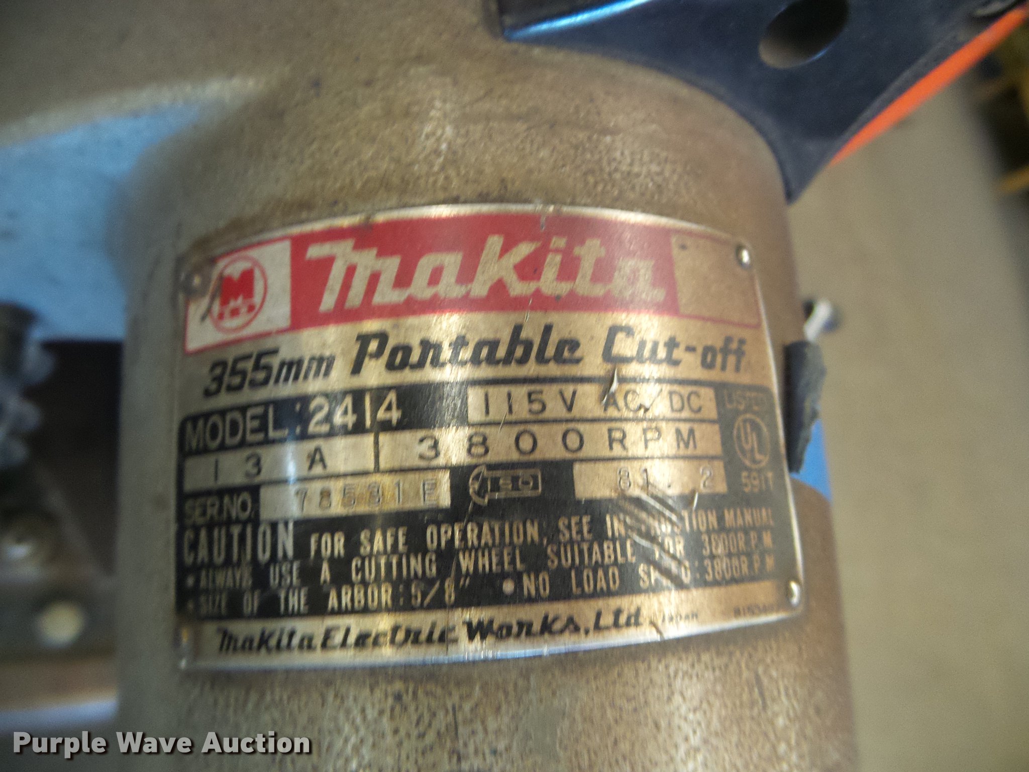 Purple Wave is selling a used Tools in Kansas. This item is a Tools with the following: Makita 2414 chop saw, 115V, Table not included, Walker Turner drill press, 120V, Serial 1-147