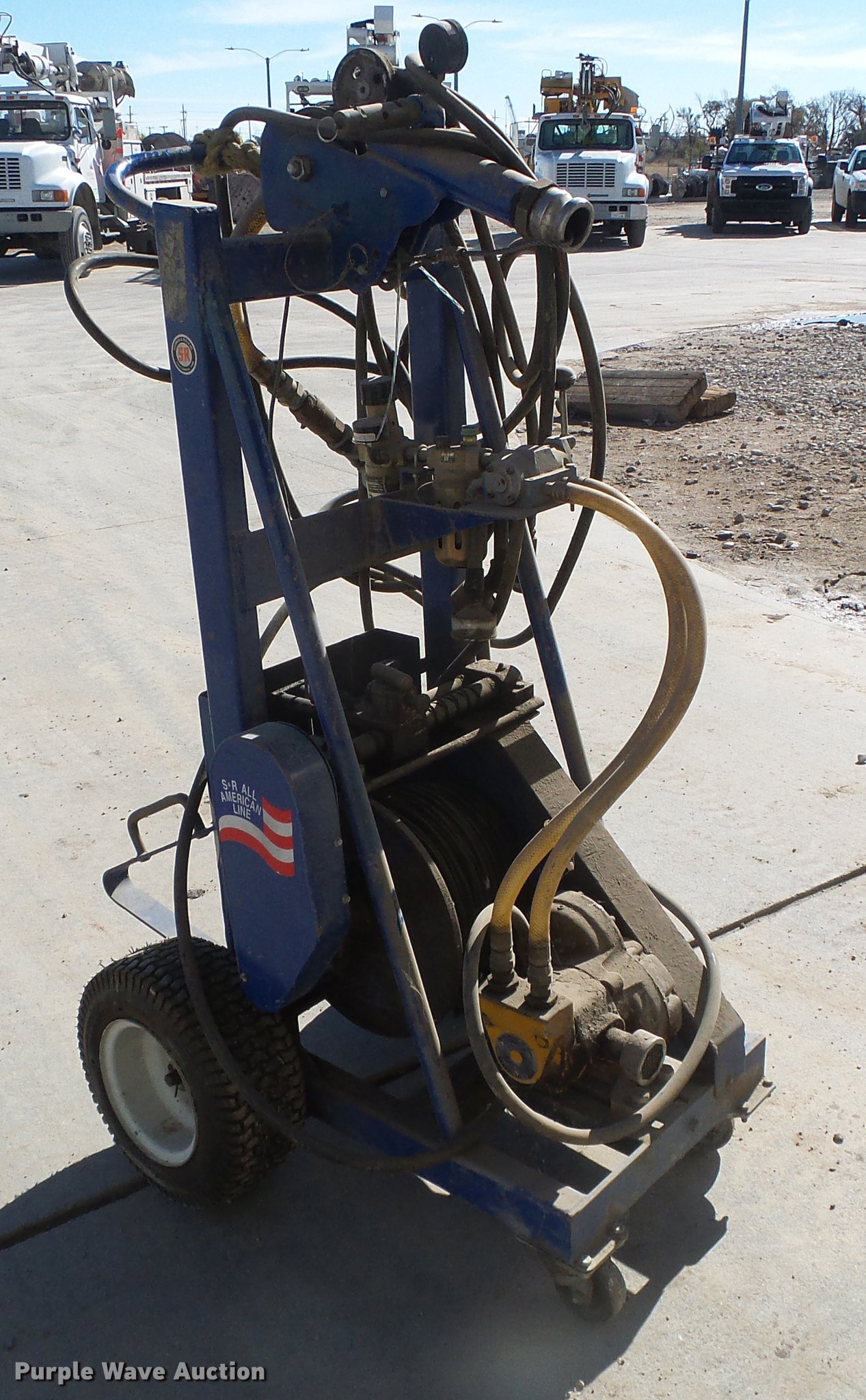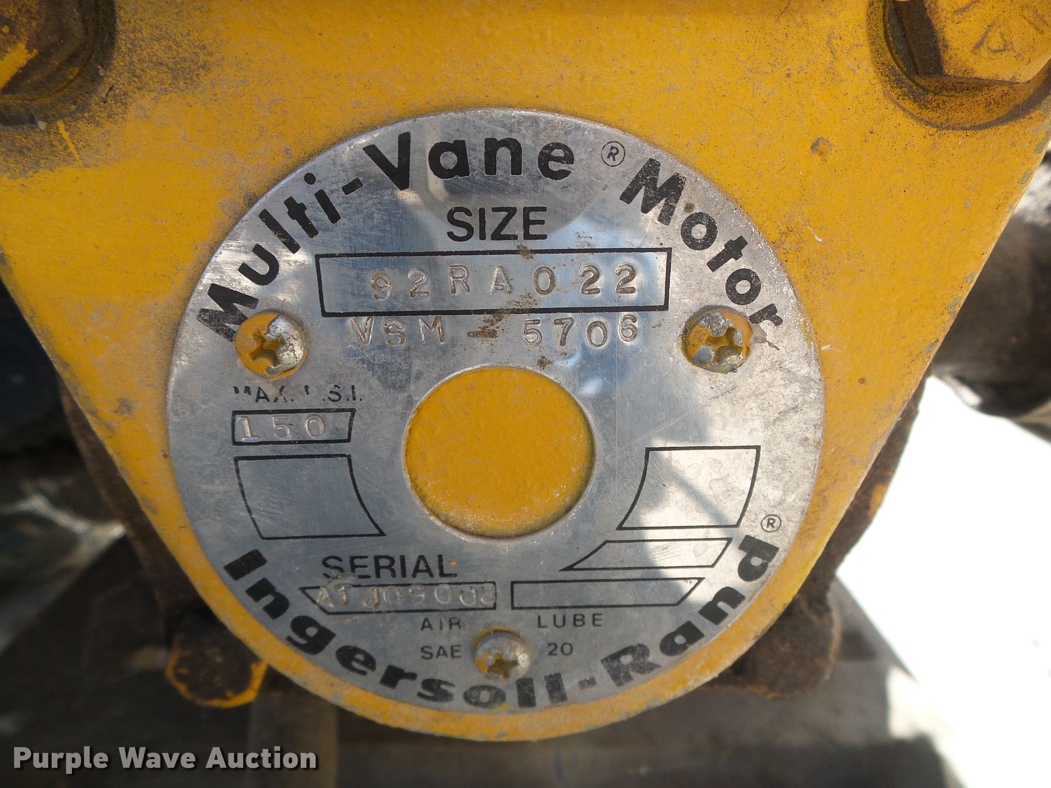 Purple Wave is selling a used Tools in Kansas. This item is a ATCC cable puller with the following: Ingersoll Rand multi vane motor, Size 92RA022, 3,000 lbs capacity, Air controlled valve, 16x6.50-8 tires, Serial ATJ09003