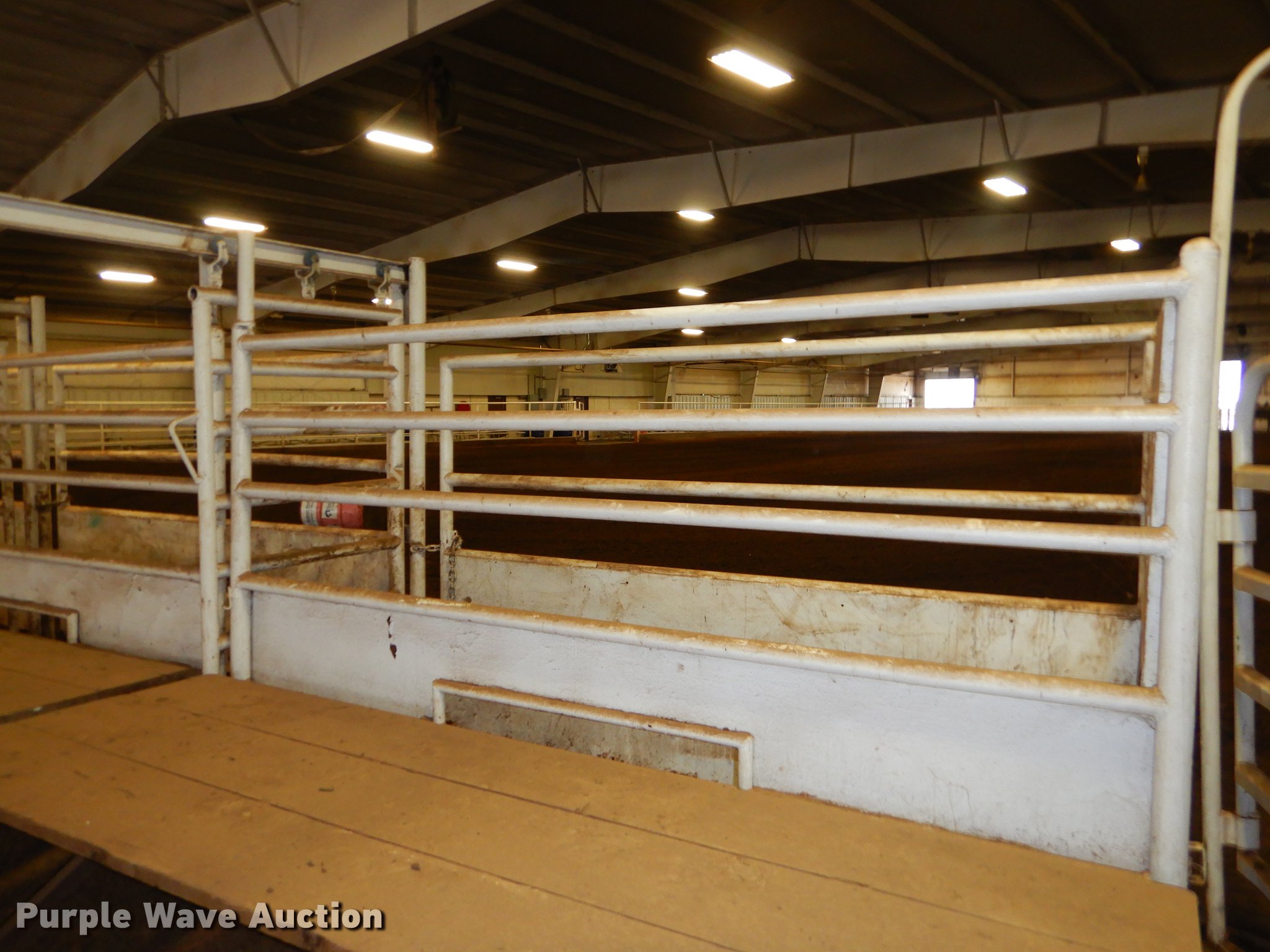 Purple Wave is selling a used Livestock Equip. in Oklahoma. This item is a (3) bucking chutes with the following: 27'L overall, 104"L x 3' per chute, Loading bleachers, Items may be disassembled prior to auction