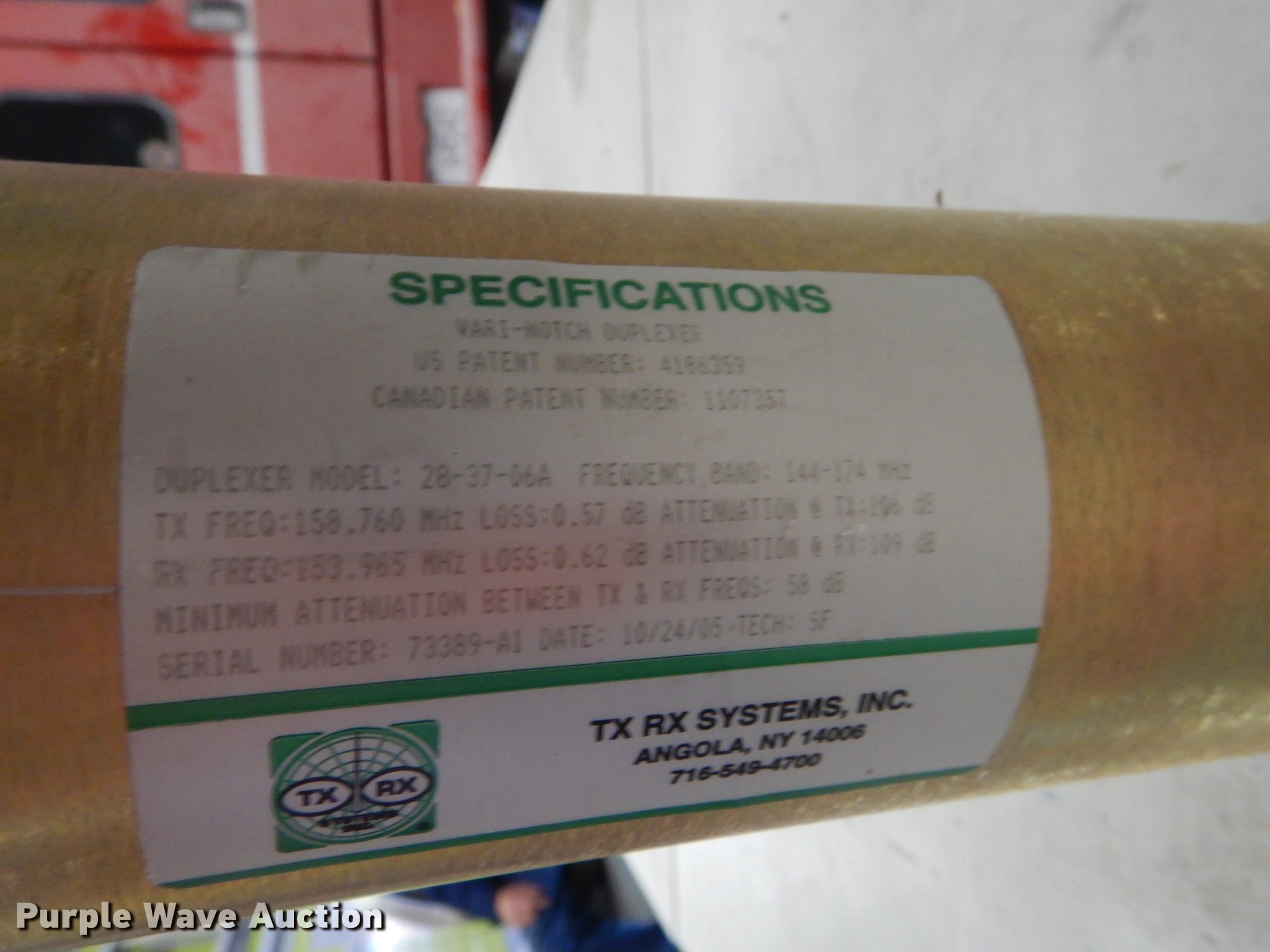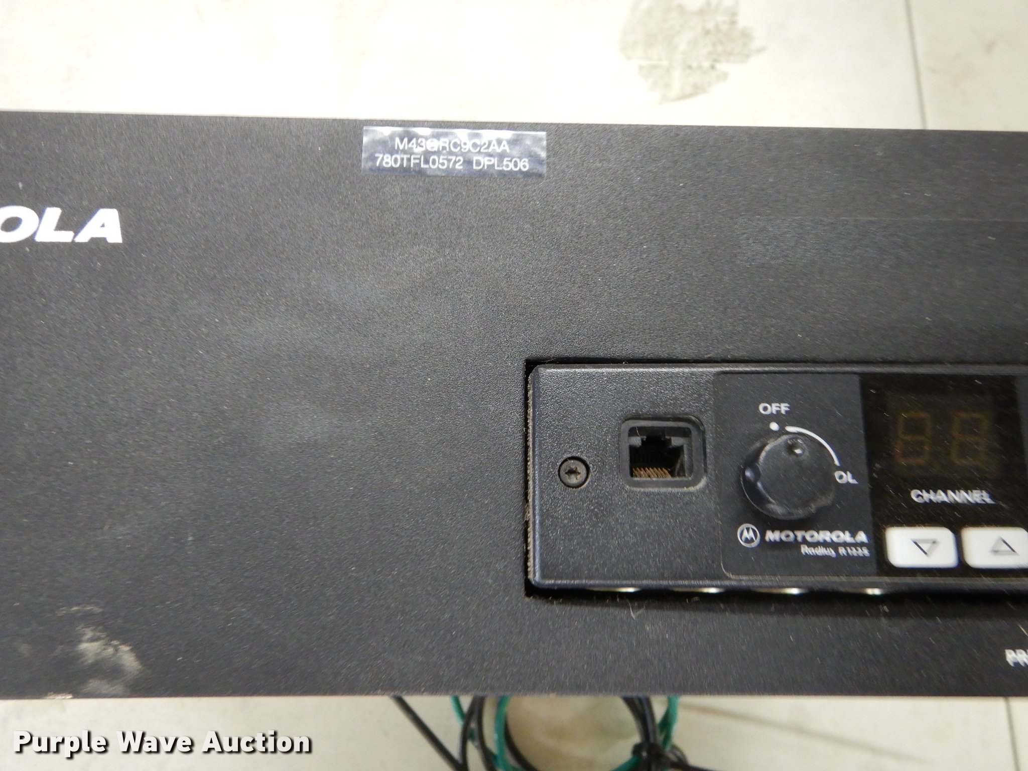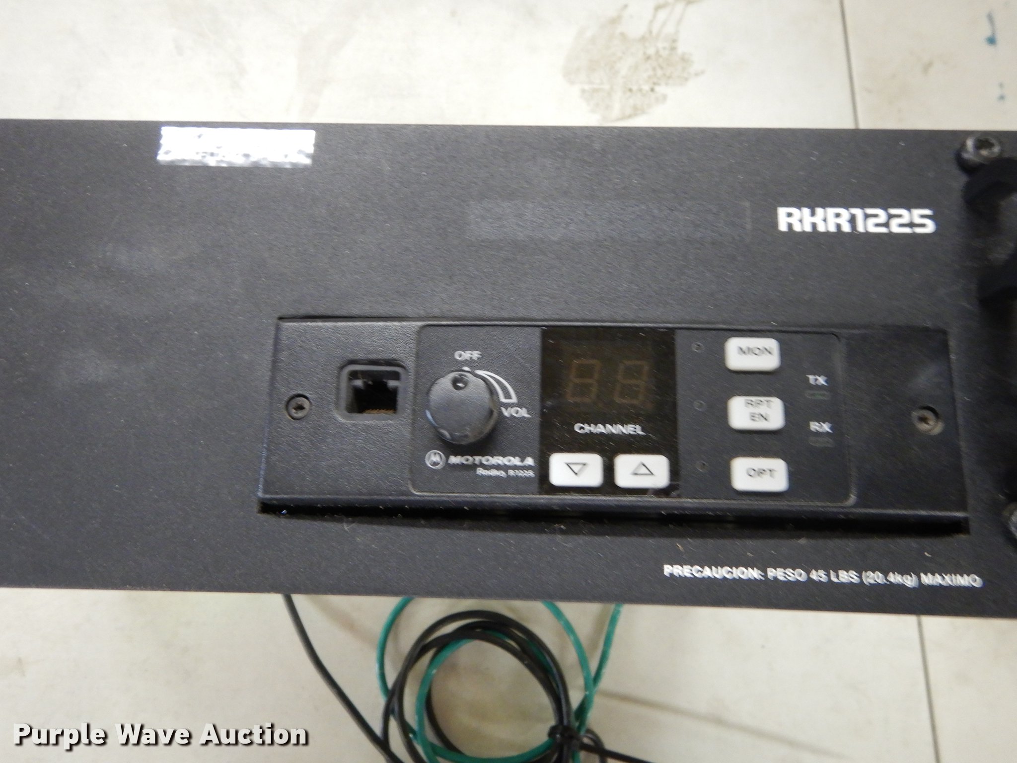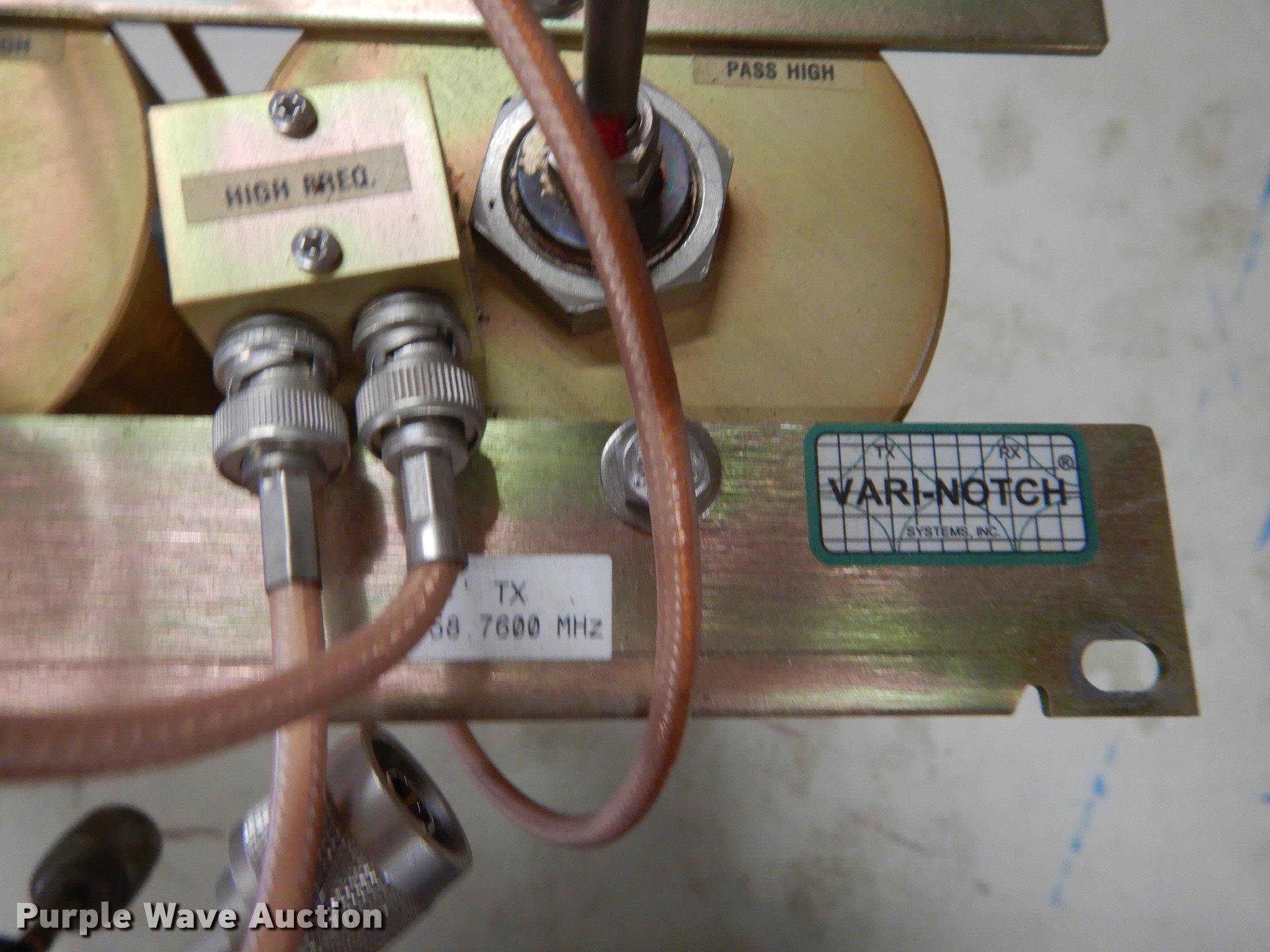 Purple Wave is selling a used Electronics in Kansas. This item is a Radio equipment with the following: Vari Notch duplexor, Serial 73387-A1, Motorola RKR1225 repeater, Serial M43GRC9C2AA