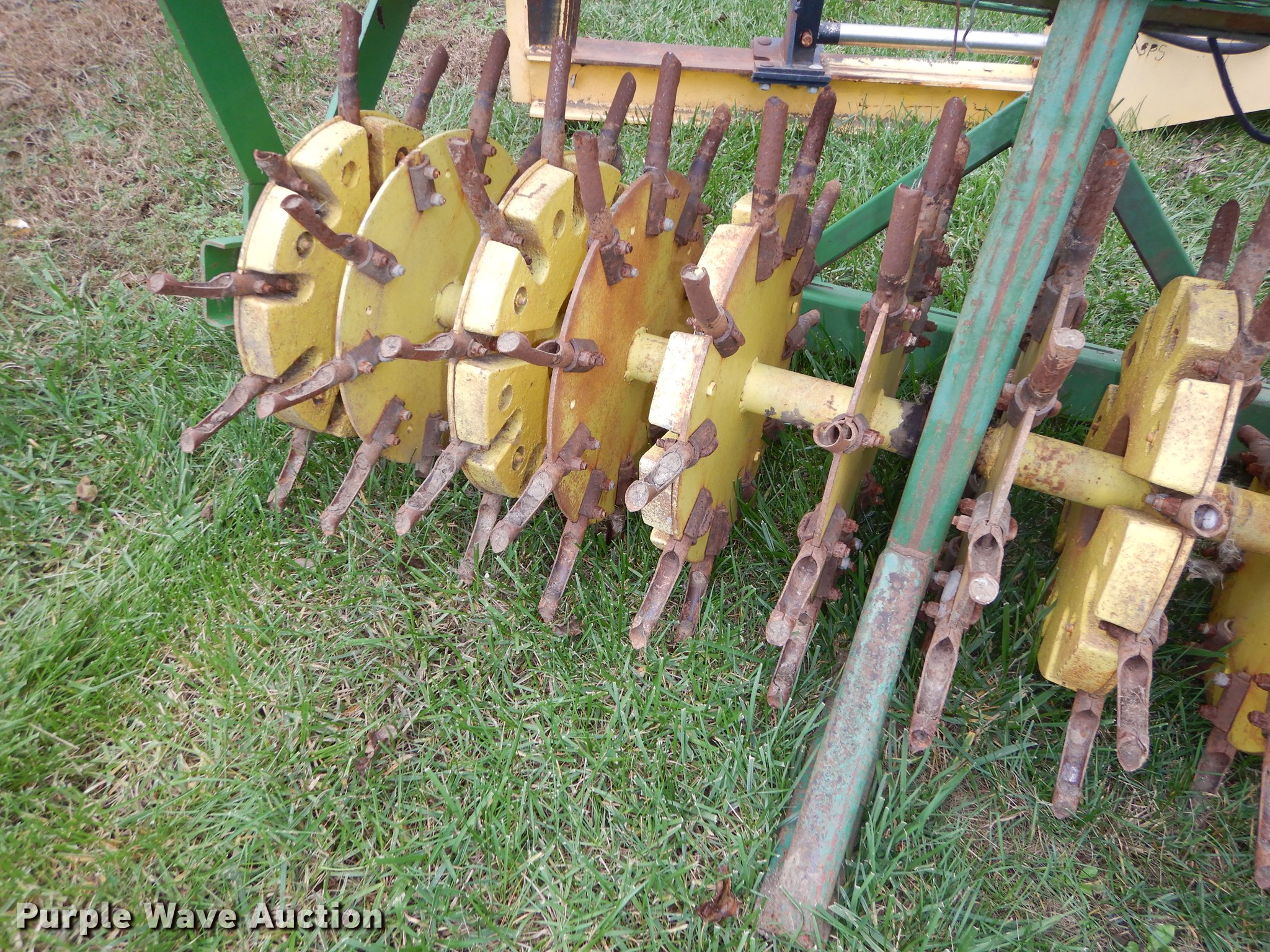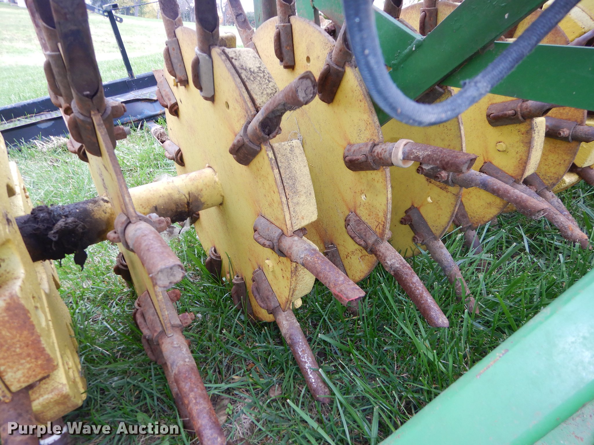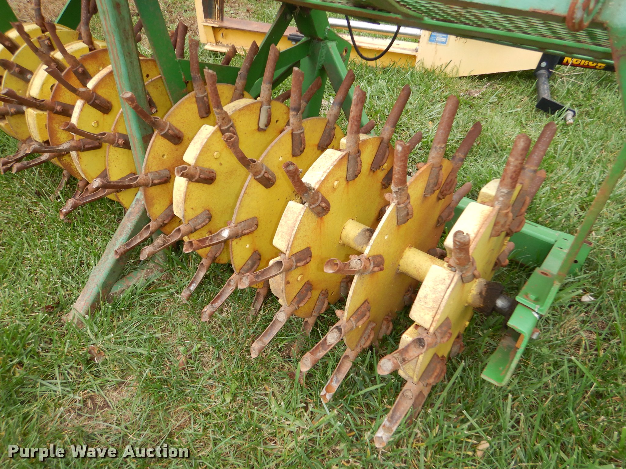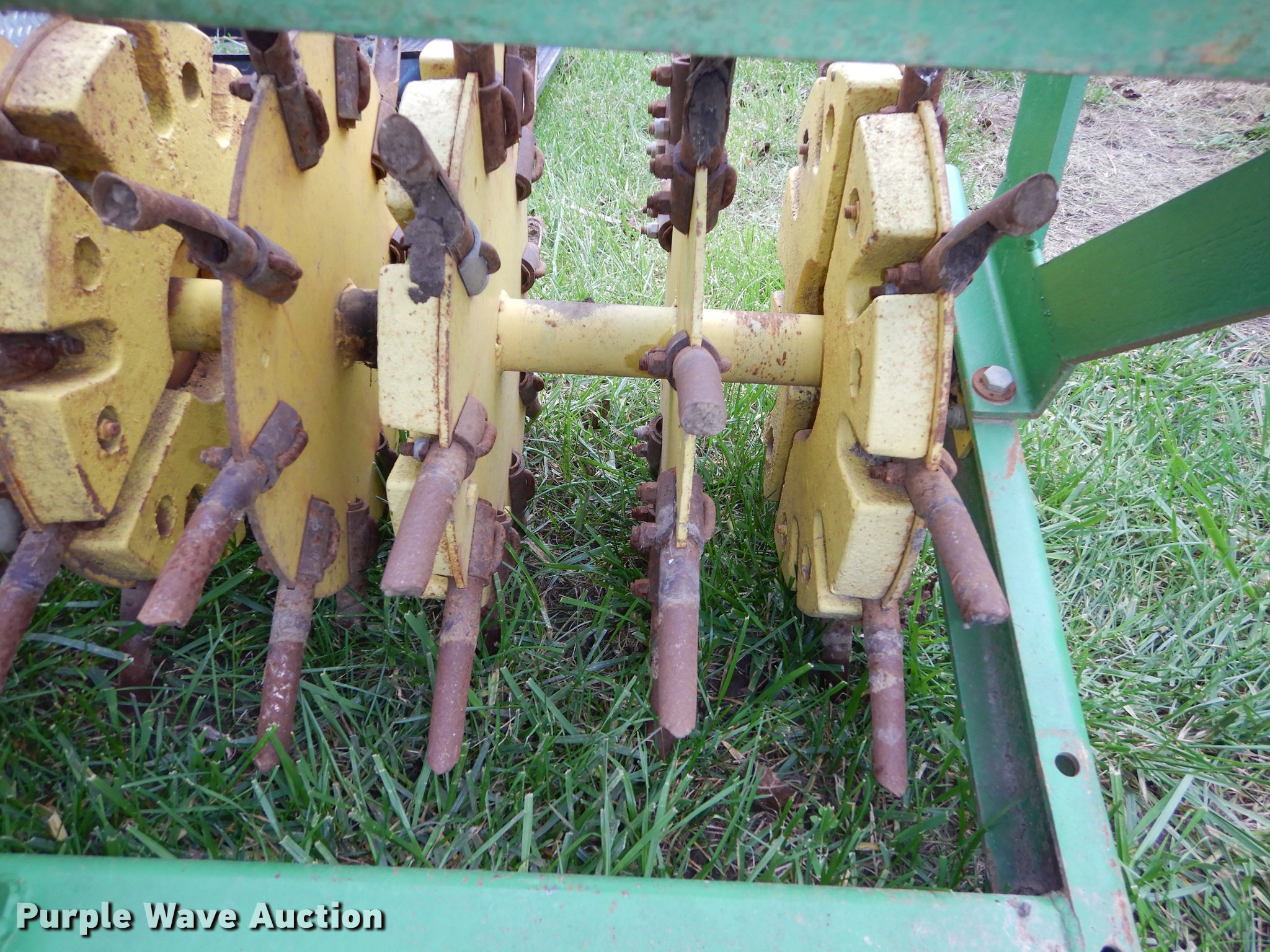 Purple Wave is selling a used Lawn and Garden in Kansas. This item is a Lawn aerator with the following: 5"L spikes, 6" spacing, (3) weights, Three point, Front stand leg missing, Crack at back leg
