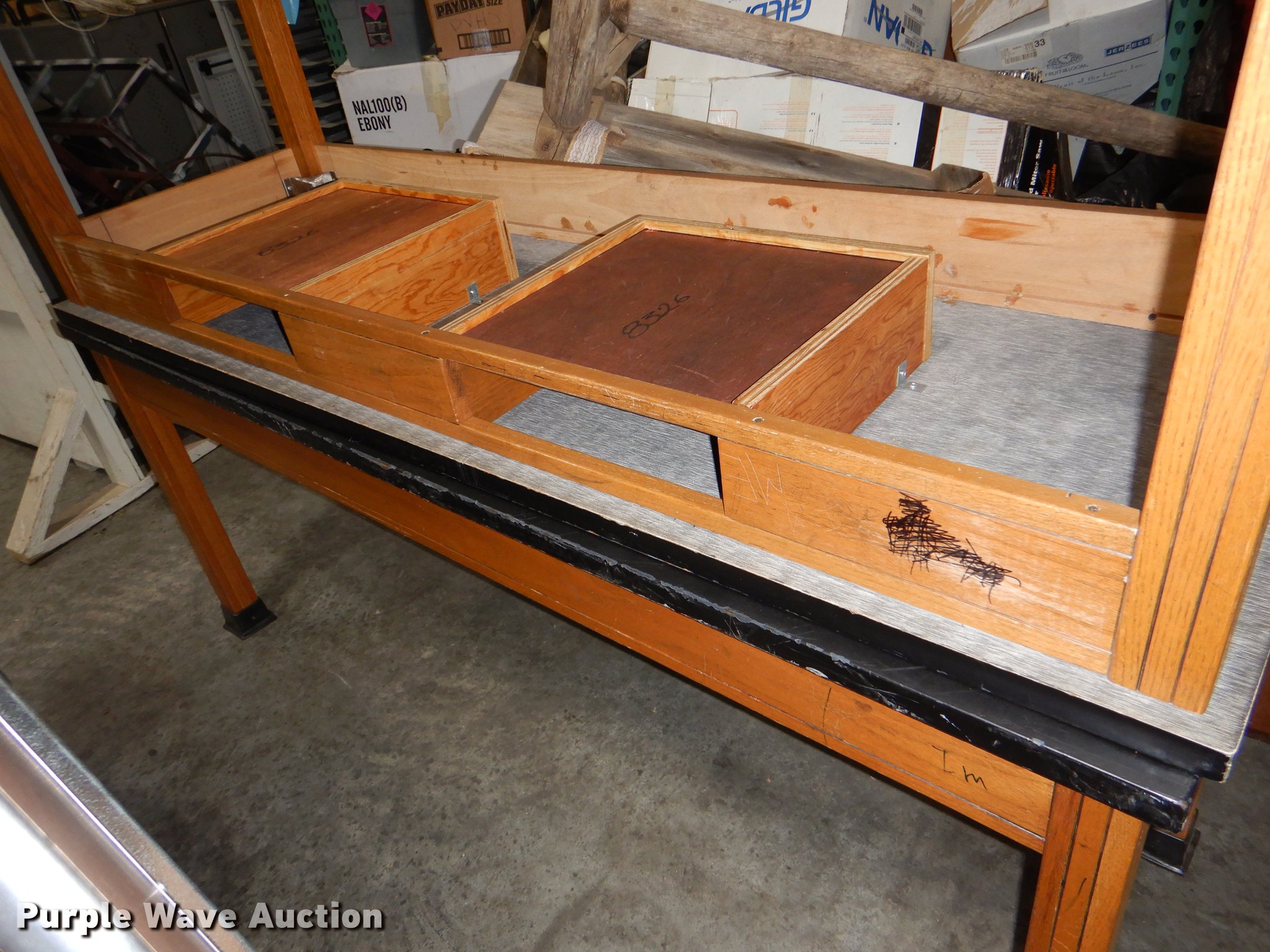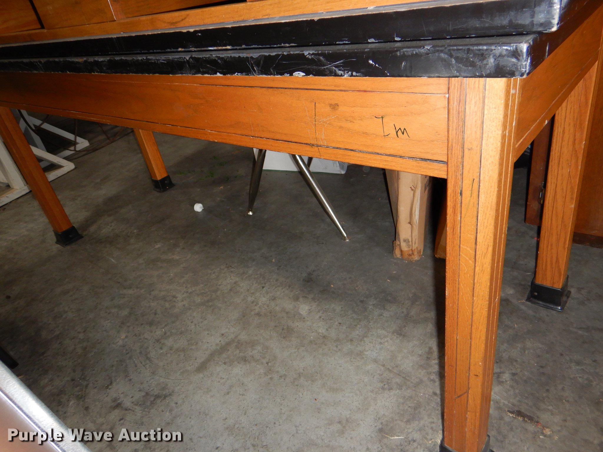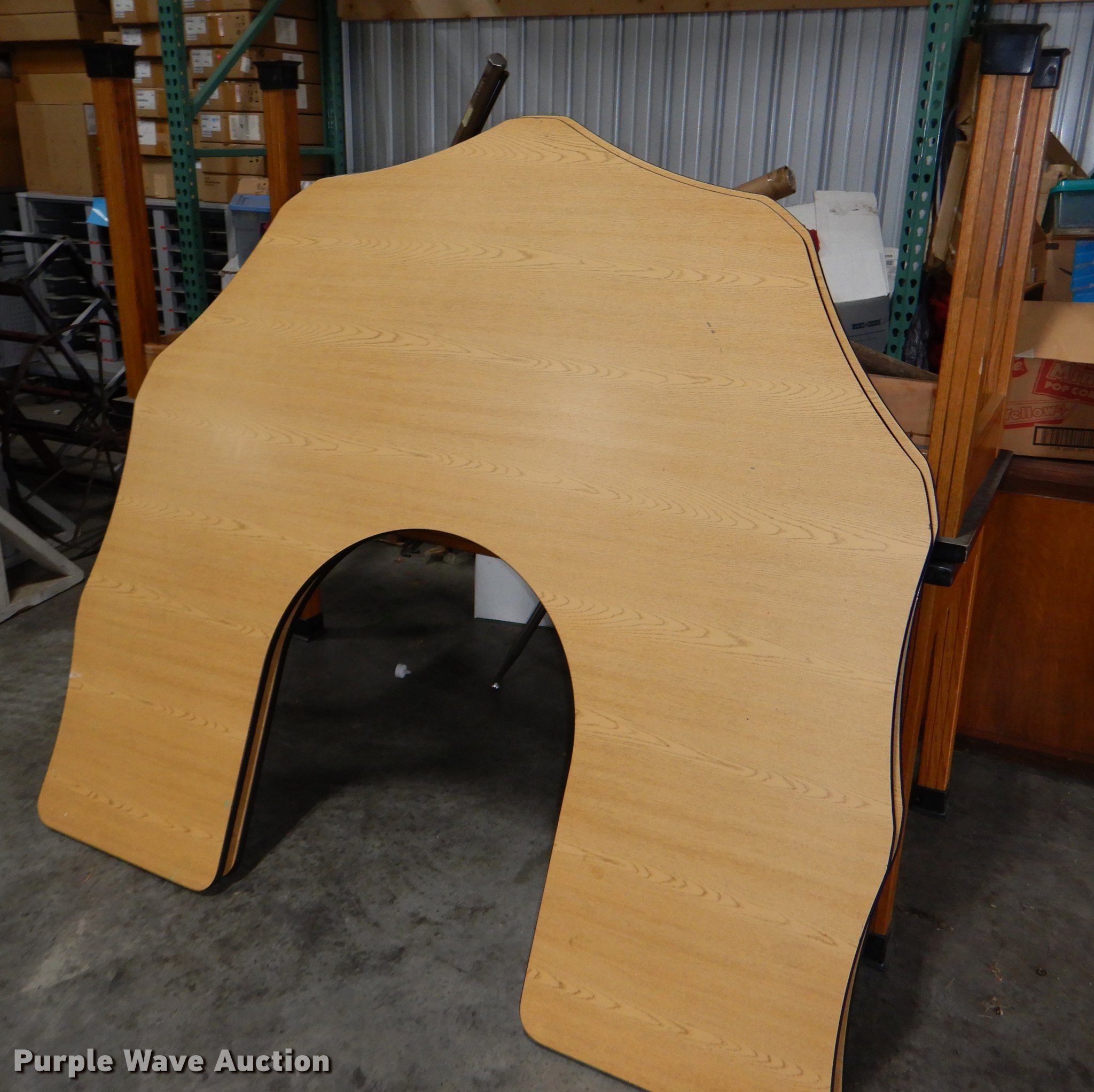 Purple Wave is selling a used Furniture in Kansas. This item is a Furniture with the following: (2) U table tops, 5.5' x 5', No legs, (2) science work tables, 6' x 2' x 30"