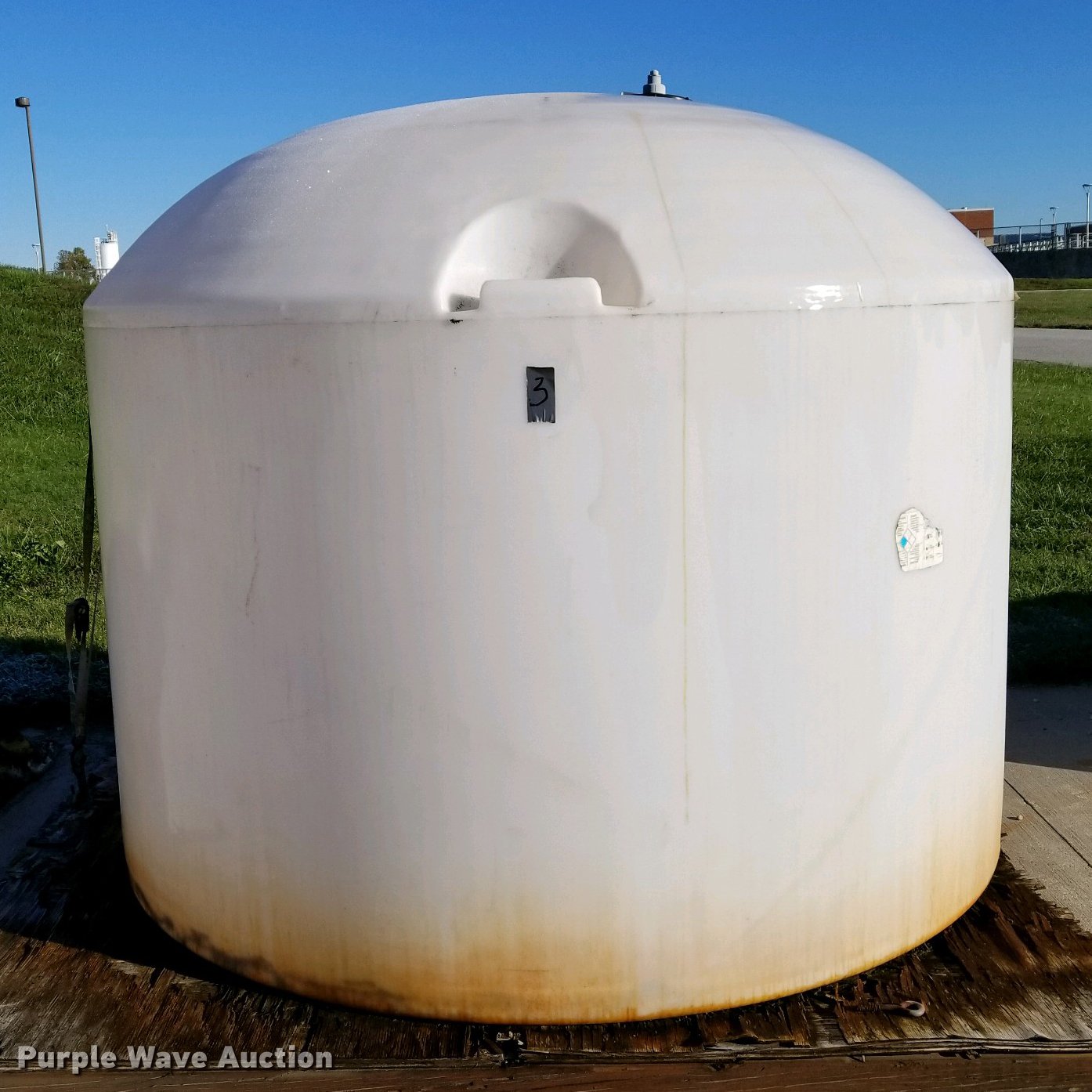 Purple Wave is selling a used Tanks in Kansas. This item is a Poly tank with the following: 7'W x 6'H, 1,600 gallon capacity, Previously stored ferrous chloride solution, Tank has not been cleaned