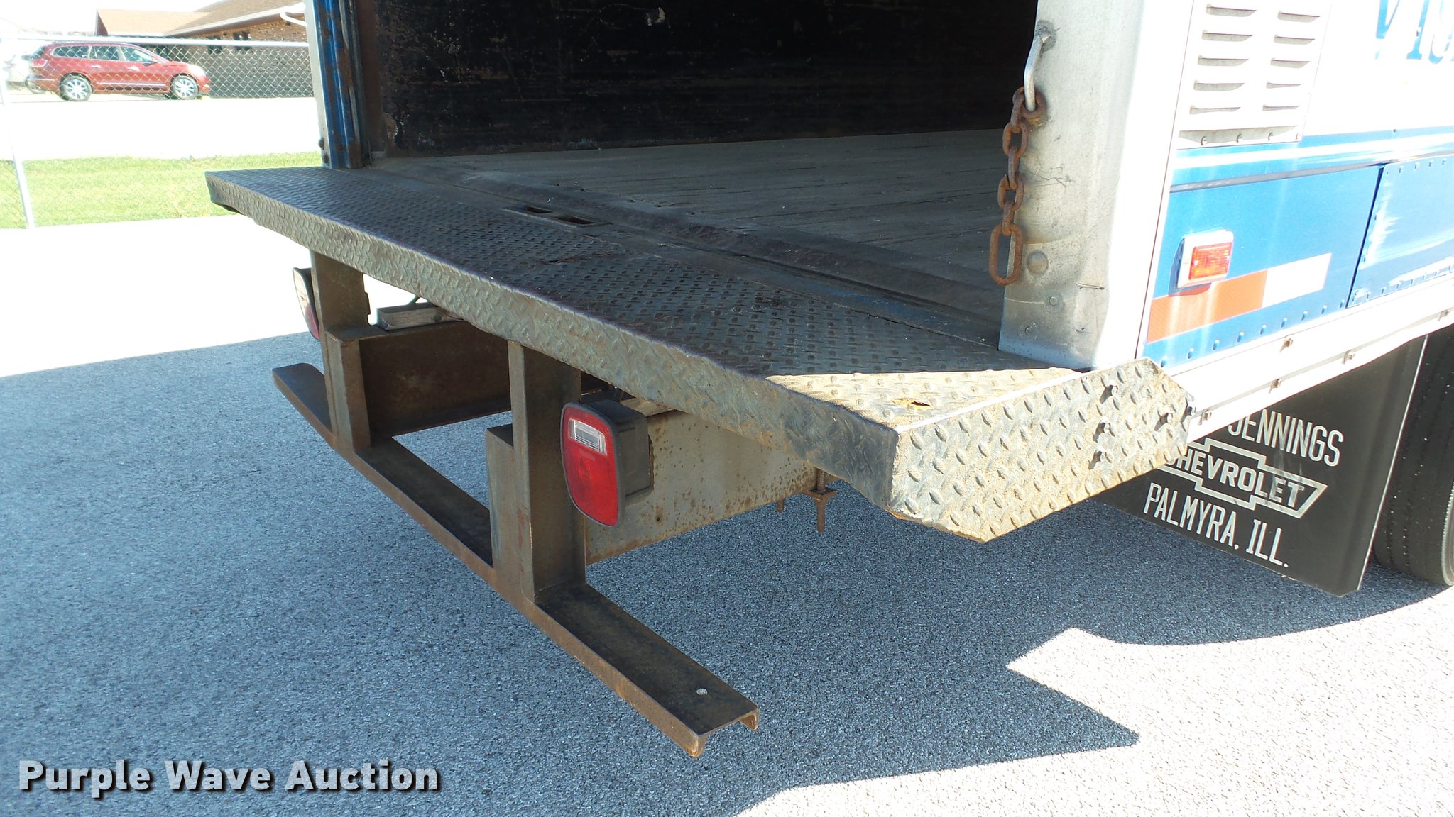 1996 GMC TopKick Lo-Pro box truck. 94,101 miles on odometer, 6.0L V8 gas engine, Eaton Fuller five speed manual transmission, Single axle, AC and heat, AM/FM, 17'L x 96"W box bed Wood floor, Roll up rear door, E-track rail system, 12" rear platform/step, Single fuel tank, Spring suspension, Hydraulic brakes, 197" wheelbase, 225/70R19.5 tires, GVWR 18,000 lbs, Windshield wipers inoperable, Engine issue, once warm engine will not stay running, Unit# 5014. Illinois title. 1GDE6H1P4TJ502972. R.P. Lumber Co., Inc.. 1311 State Hwy 109. Jerseyville, IL 62052