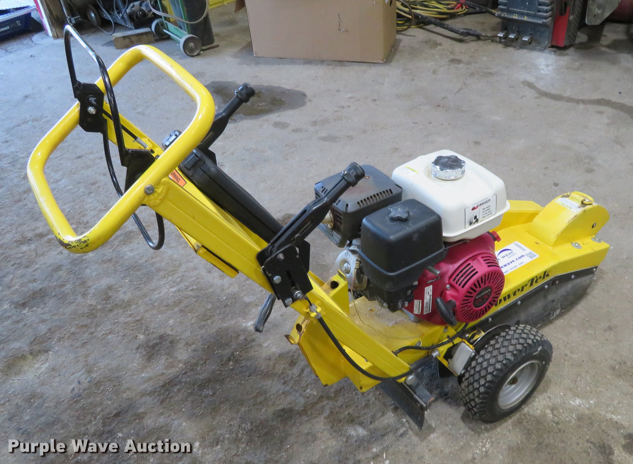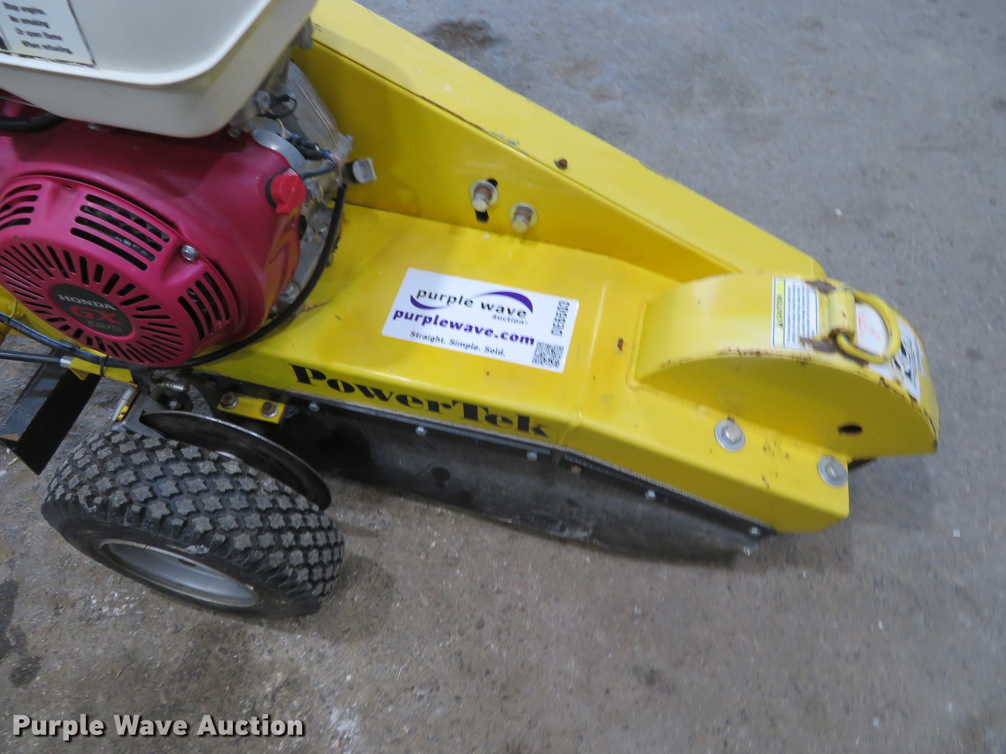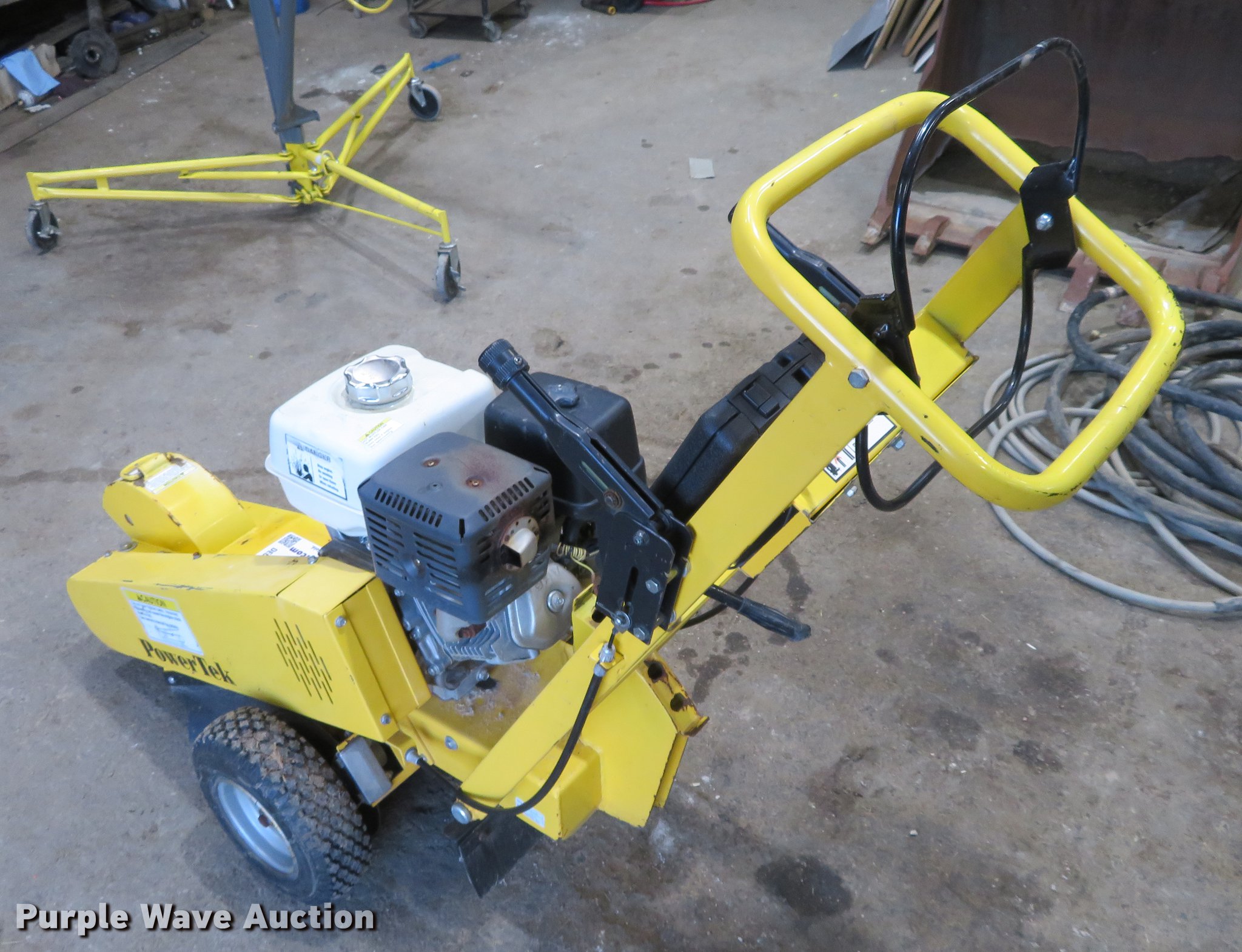 Purple Wave is selling a used Wood Chipper or Stump Grinder in Kansas. This item is a PowerTek stump grinder with the following: 101 hours on meter, Honda GX390 gas engine
