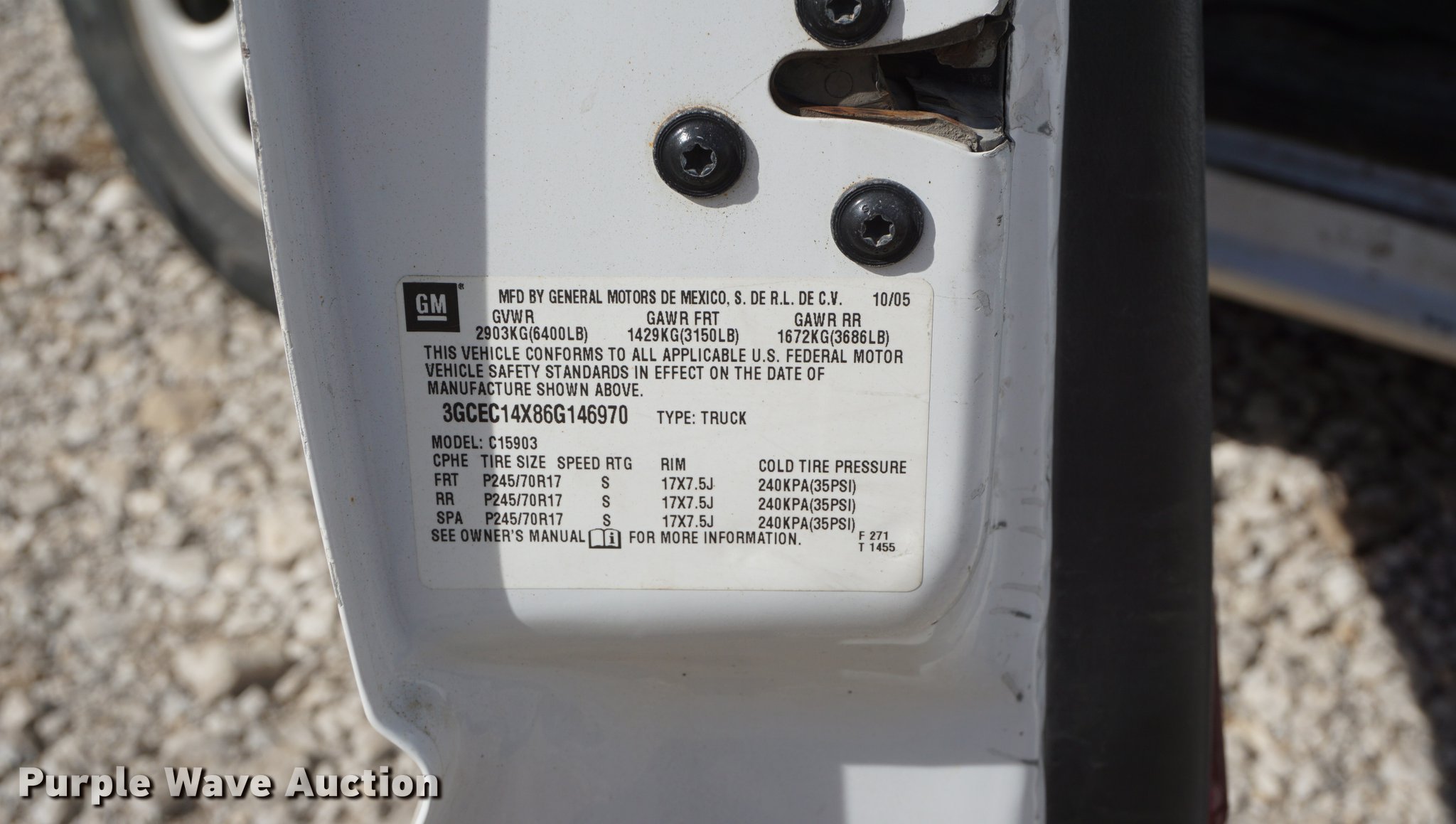 Purple Wave is selling a used 1/2 Ton Pickup or Van in Kansas. This item is a 2006 Chevrolet Silverado 1500 pickup truck with the following: 227,644 miles on odometer, 4.3L V6 OHV 12V gas engine, Automatic transmission, AC and heat, Tilt, Cruise, AM/FM, Vinyl interior, Long bed, 245/70R17 tires, Brakes need work, Cracked windshield