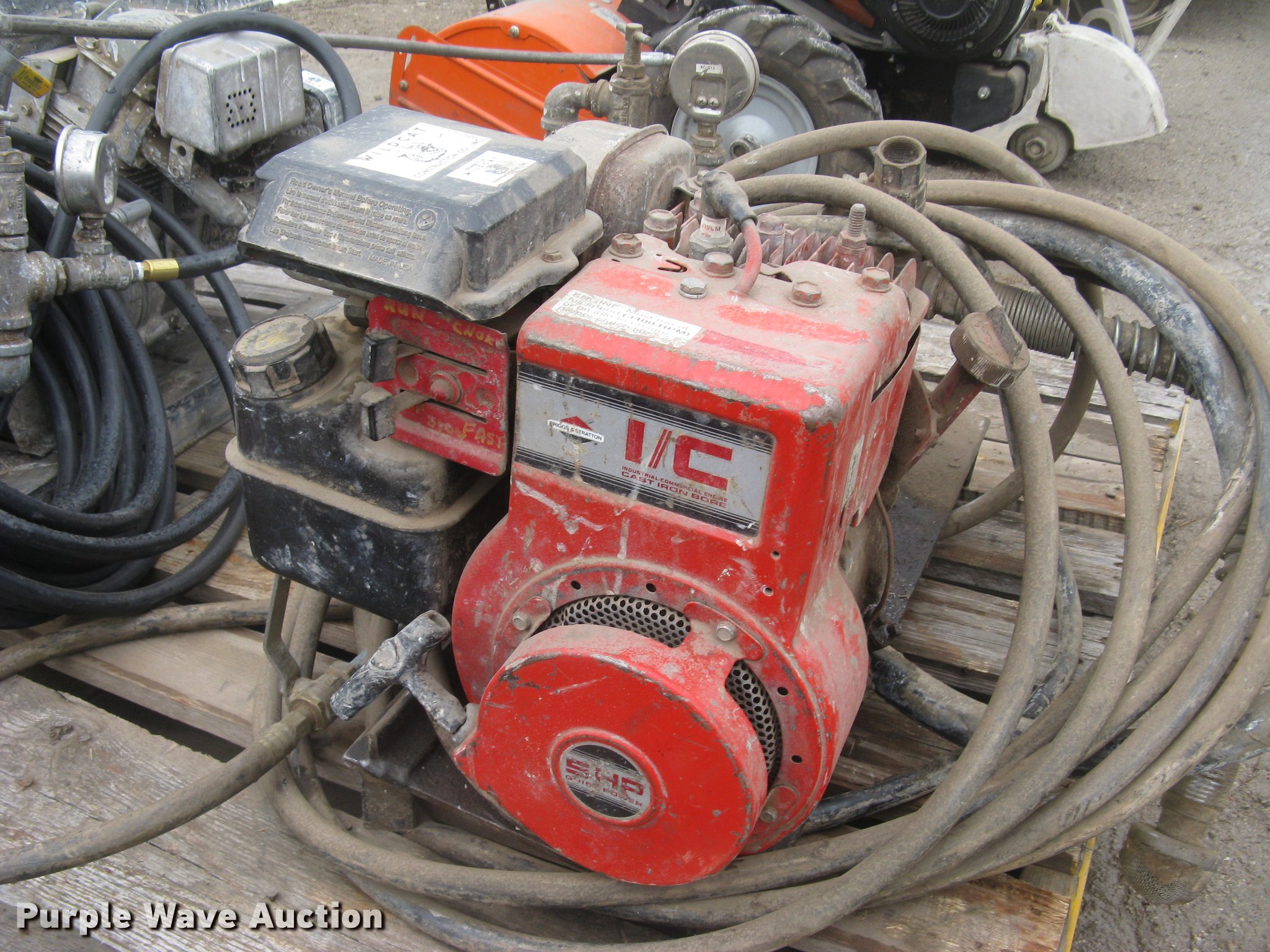 Purple Wave is selling a used Concrete Equip. or Acces. in Kansas. This item is a (2) concrete cure spray pumps with the following: Enduro 5 HP gas engine, Hypro pump, Hose and wand, Briggs & Stratton 5 HP gas engine, Teel pump, Hose and wand