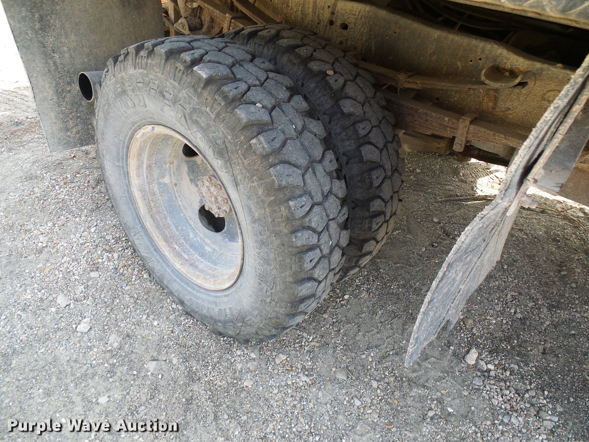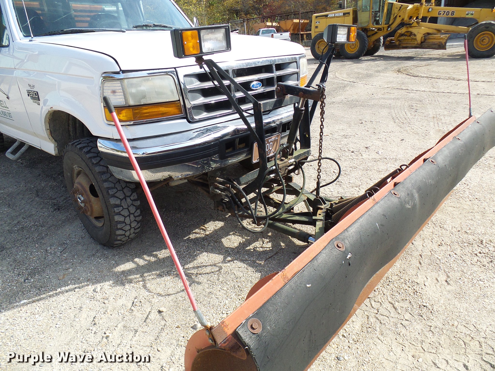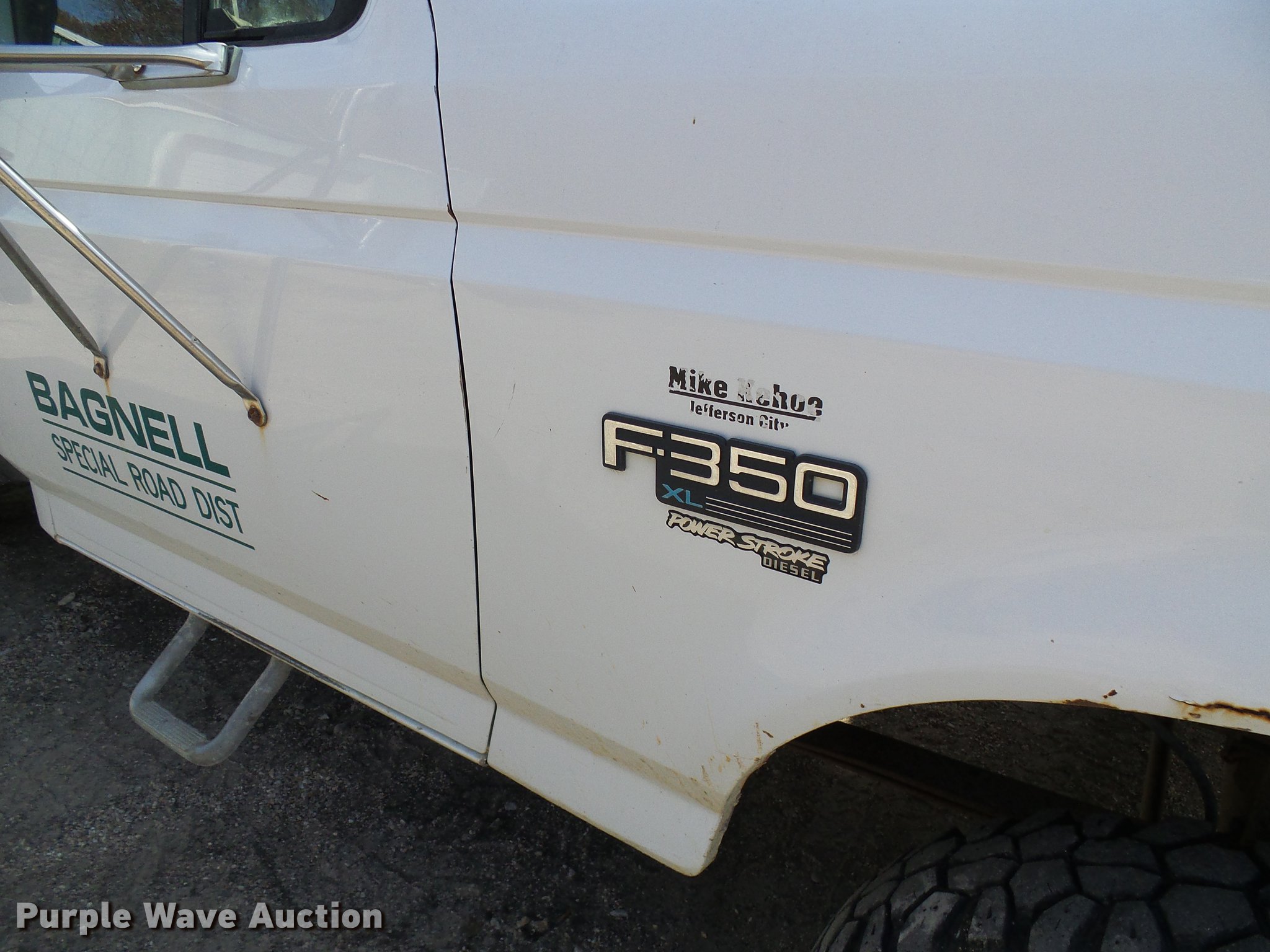 Purple Wave is selling a used 3/4 or 1 Ton Pickup or Van in Missouri. This item is a 1997 Ford F350 dump flatbed pickup truck with the following: Approx. 107,000 miles, Odometer inoperable, 7.3L V8 OHV 16V turbo diesel engine, Six speed manual transmission, Four wheel drive, Single axle, AC and heat, AM/FM, Suspension seat, PTO, 8'L x 8'W steel dump flatbed, Single ram hoist, Western 9'W plow, Henderson spreader, 8'L, Single fuel tank, Pintle hitch, Spring suspension, Hydraulic brakes, 235/85R16 tires, Cracked windshield