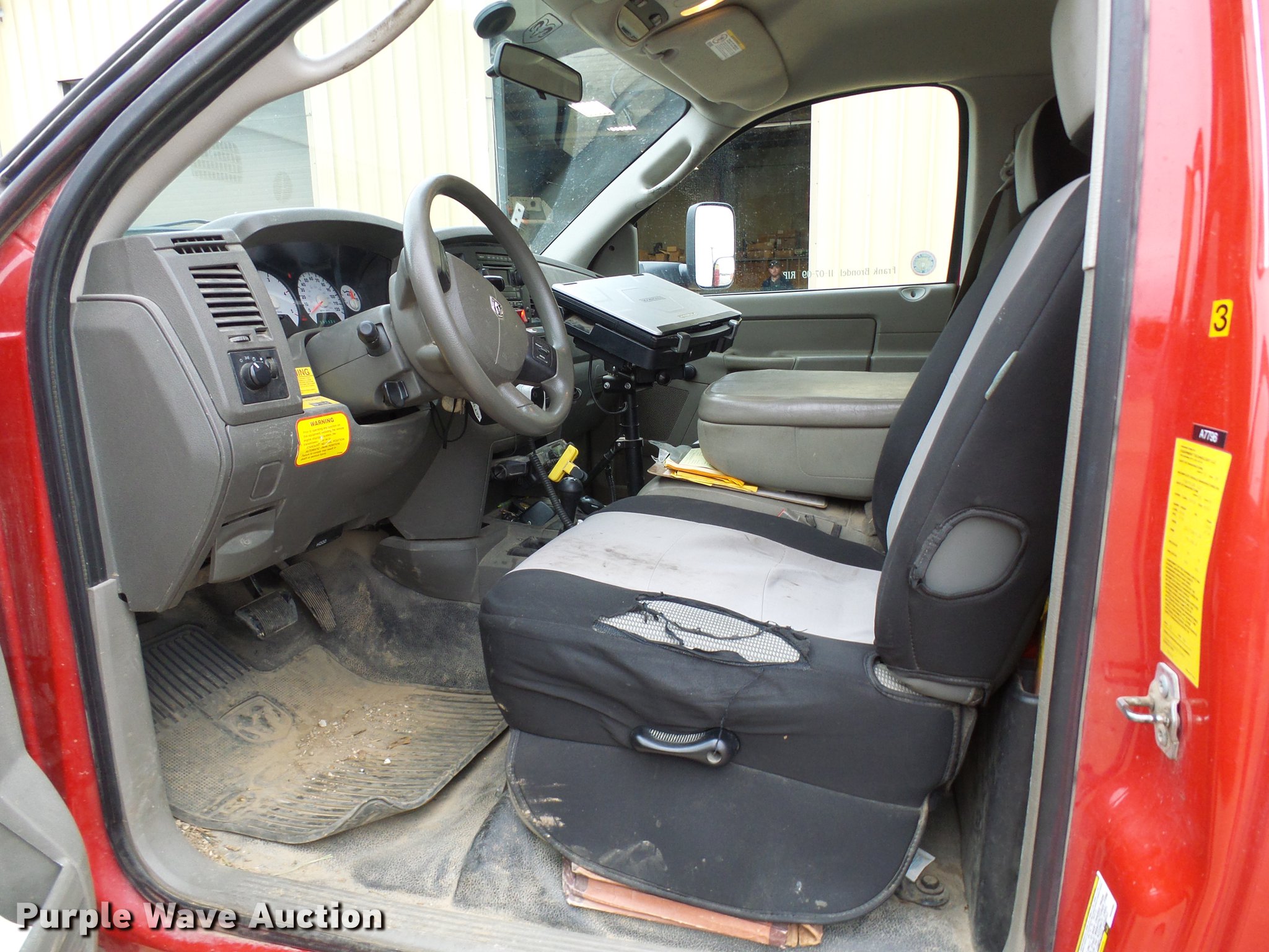 Purple Wave is selling a used Bucket Truck in Missouri. This item is a 2009 Dodge Ram 5500 bucket truck with the following: 157,040 miles on odometer, 6.7L L6 OHV 24V turbo diesel engine, Automatic transmission, Four wheel drive, AC and heat, AM/FM, Suspension seat, PTO, Backup alarm, ETI SB108DD94A36N utility bed, Shelving, Serial 12603, ETI ETC37IH boom, 350 lbs maximum lift capacity, 37' maximum lift height, Man basket, Platform and ground controls, Boom rotation, Articulating, insulated, telescopic boom, (2) outriggers, Serial 1009C77140, Single fuel tank, Pintle hitch, Trailer wiring, Spring suspension, Hydraulic brakes, 225/70R19.5 tires, Generator and contents are not included, View Aerial Device Test Report, Unit# 34