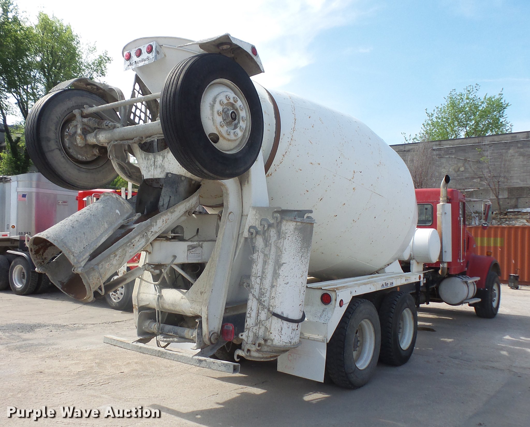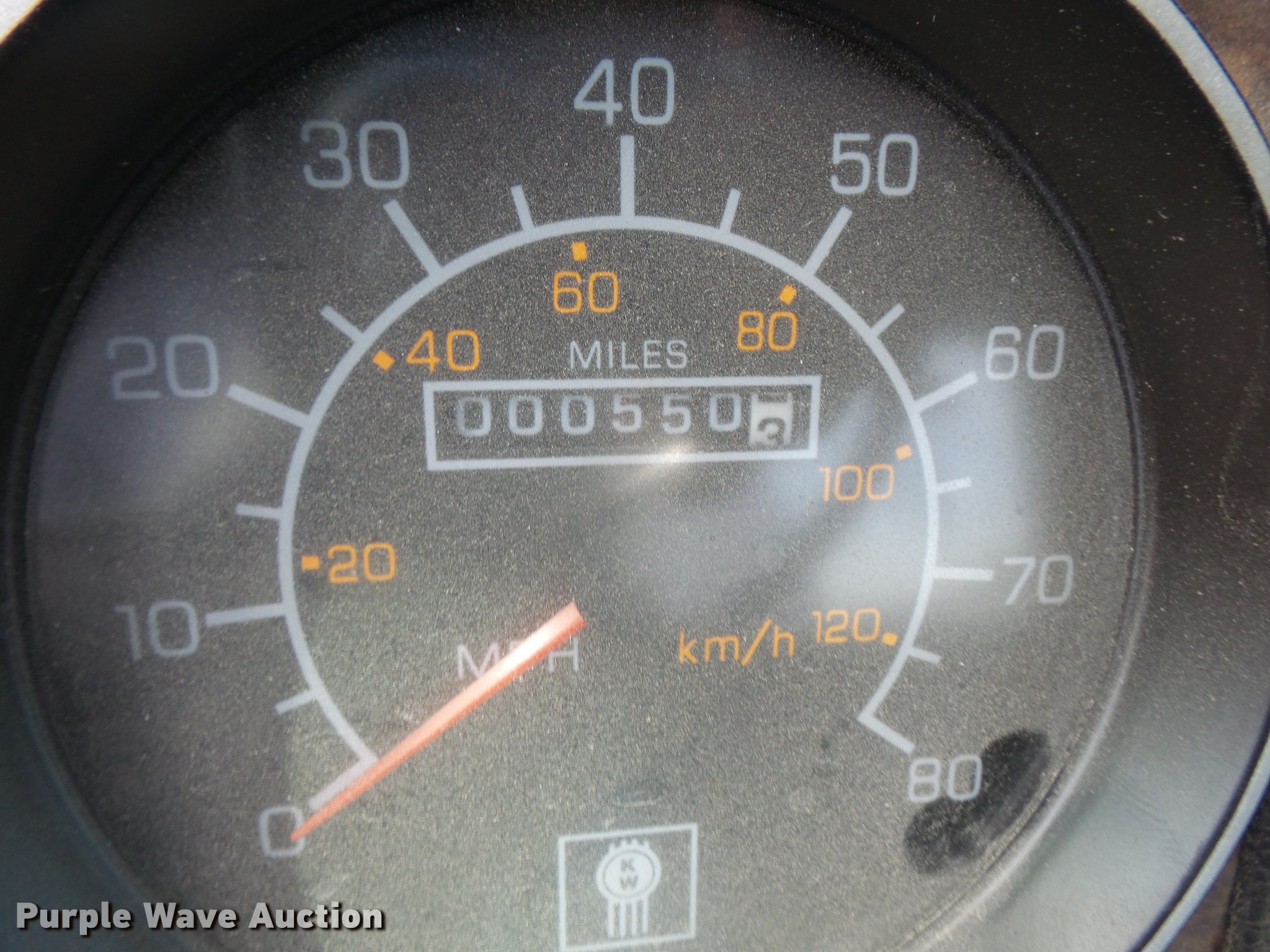 Purple Wave is selling a used Ready Mix or Pump Truck in Kansas. This item is a 1993 Kenworth W900 ready mix truck with the following: 550 miles on odometer, 1,494 hours on meter, Approximately 21,494 total hours on unit, Actual miles unknown, Caterpillar 3306 10.5L L6 turbo diesel engine, 300 HP, Serial 7RJ01306, Eaton Fuller nine speed manual transmission, Lo and Lo-Lo, Full differential lock, Triple axle, Heat, Heated mirorrs, Air suspension seat, PTO, McNeilus 11 cu.yd. mixer bed, Rear drum controls, Drum/axle controls, (3) steel chute extensions, 125 gallon water tank, Rear discharge, Ladder, Serial 31017-03922, Single fuel tank, Walking beam suspension, Air brakes, 425/65R22.5 front tires, 11R22.5 tag axle tires, 11R22.5 rear tires, GVWR 75,400 lbs, FAWR 20,000 lbs, IAWR 21,000 lbs, RAWR 21,200 lbs, Bridgemaster 13,000 lbs tag axle