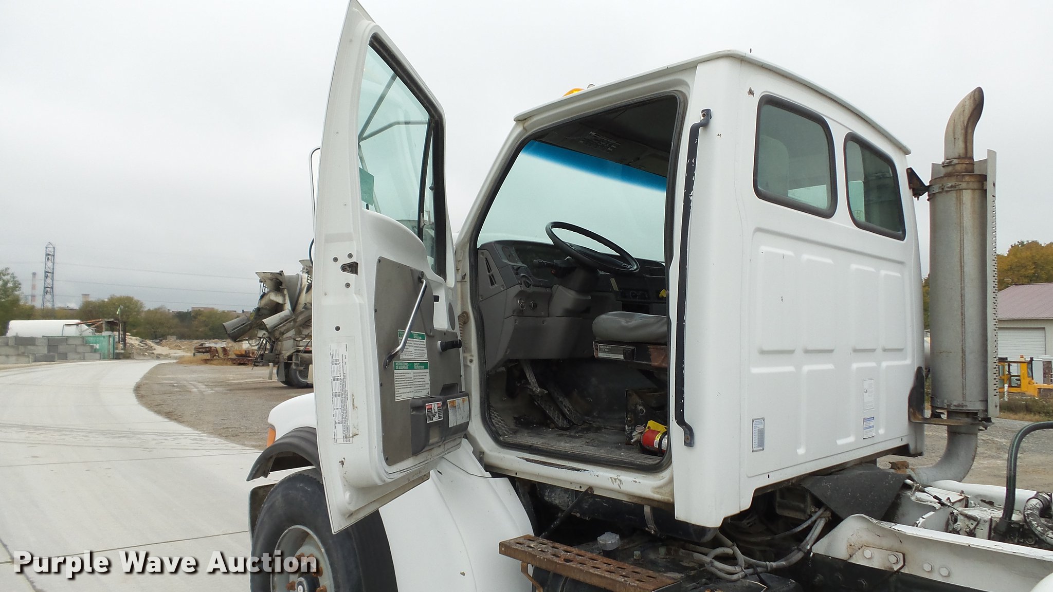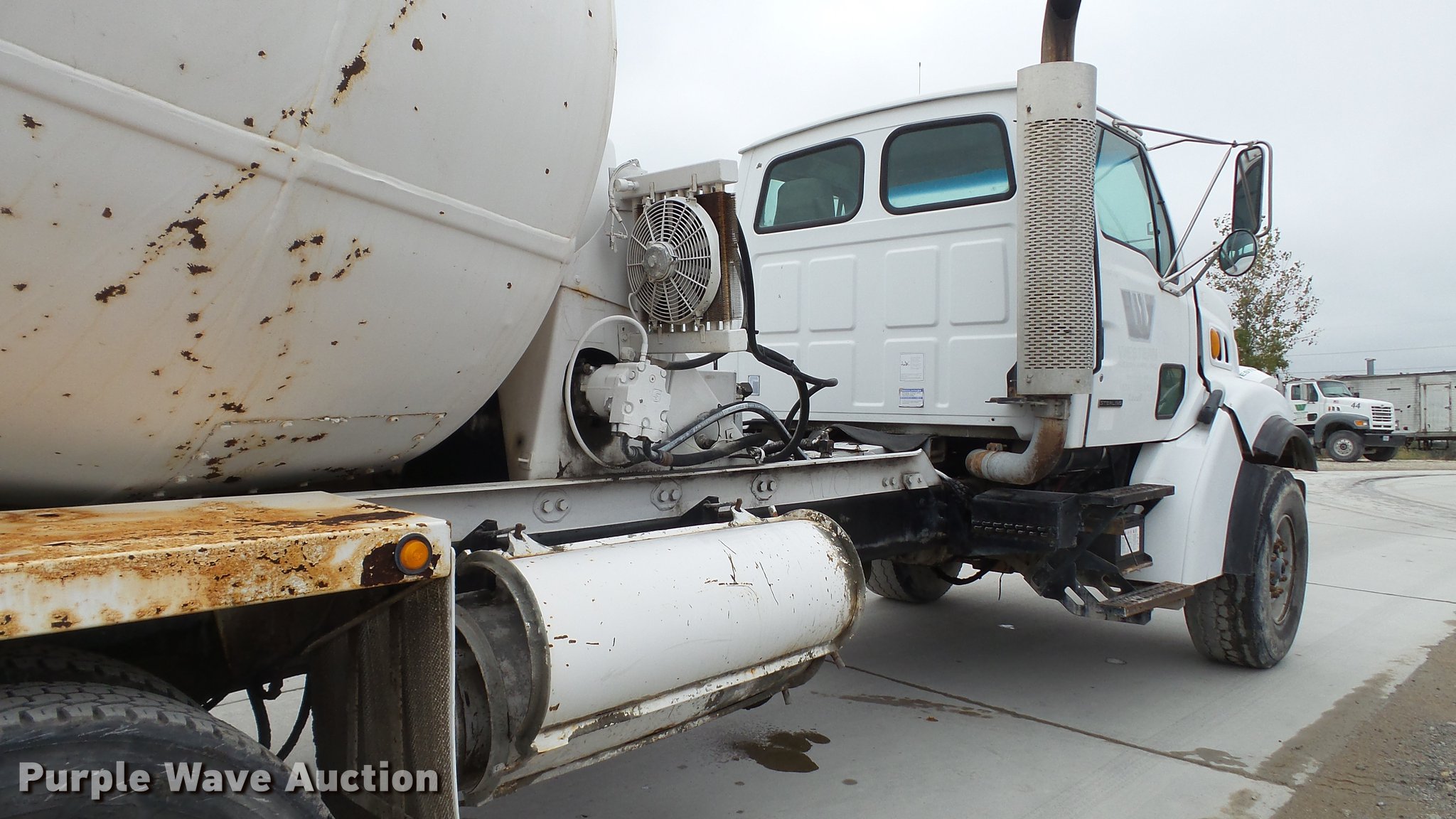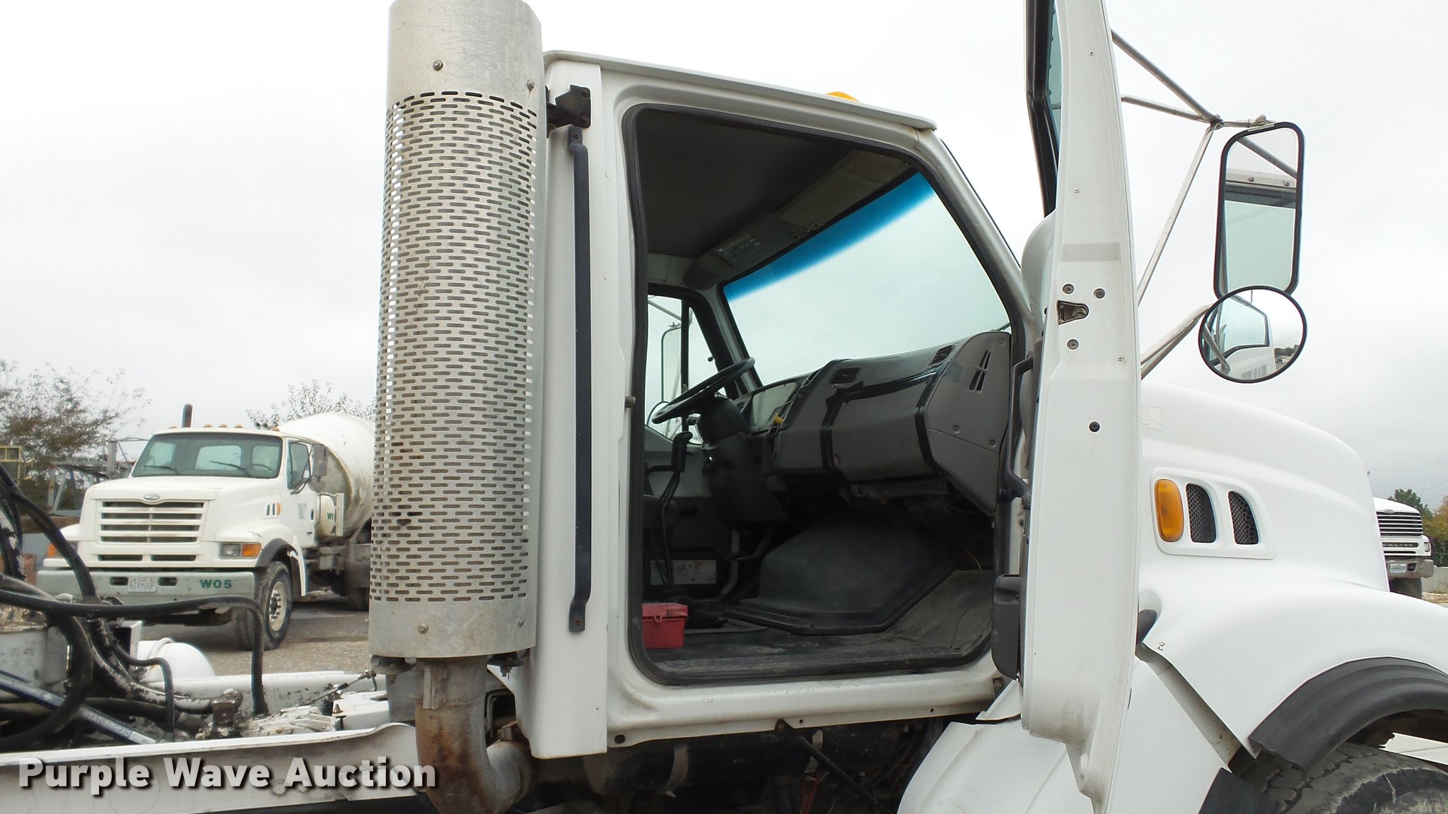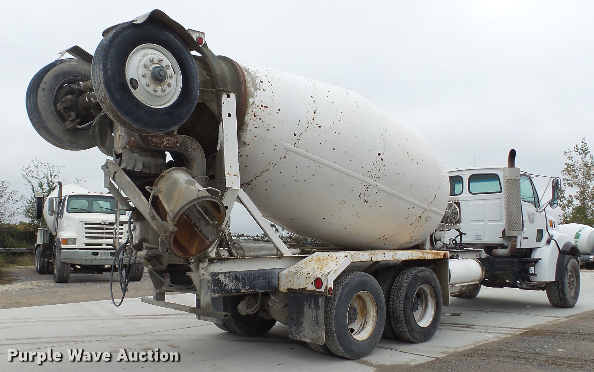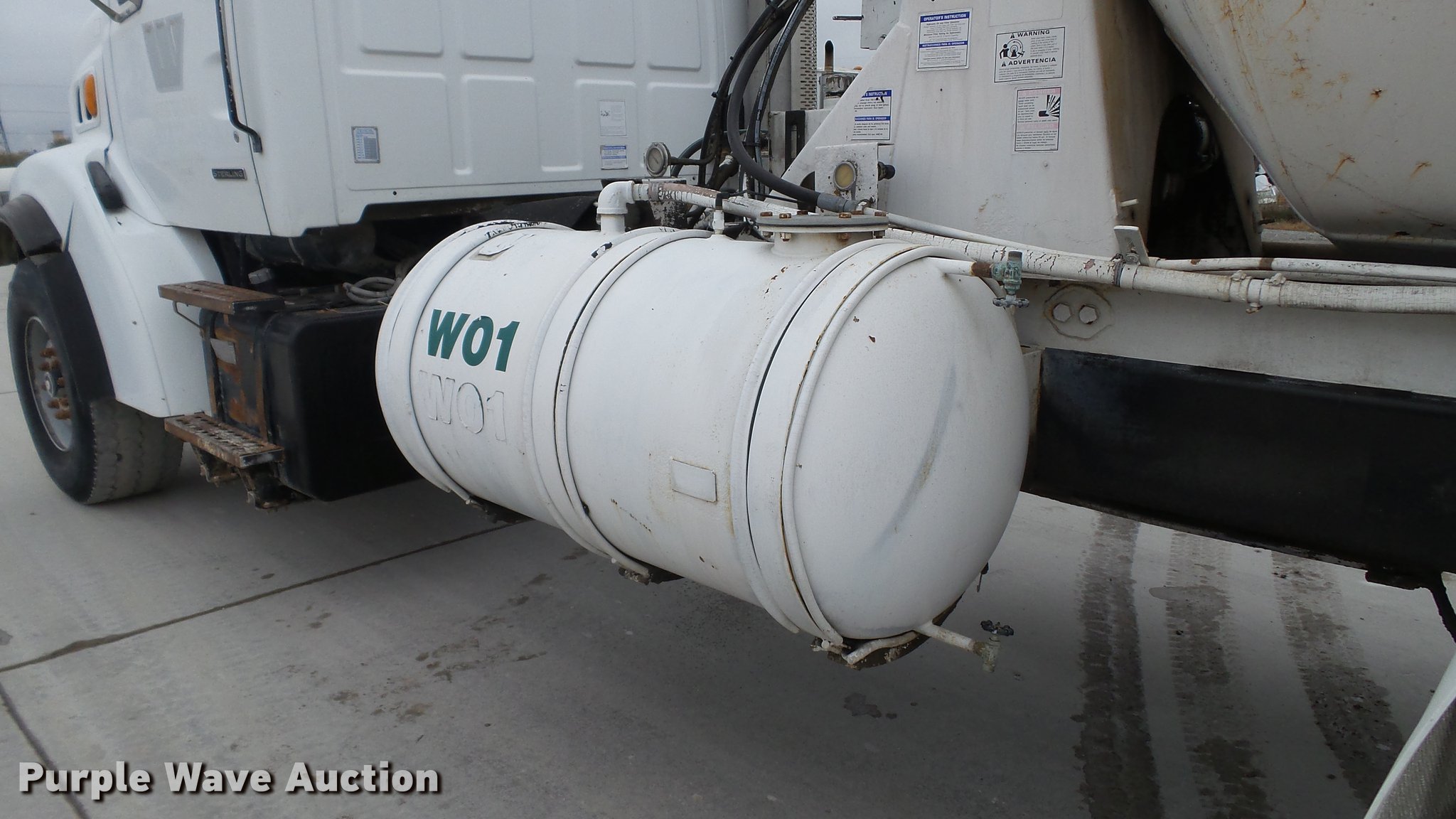 Purple Wave is selling a used Ready Mix or Pump Truck in Missouri. This item is a 2000 Sterling ready mix truck with the following: 151,647 miles on odometer, Caterpillar C10 10.3L L6 turbo diesel engine, 320 HP, Eaton Fuller RTO-8LL eight speed manual transmission, Lo and Lo-Lo gears, Tandem axle, Tag lift axle, Inter-axle differential lock, Heat, Air suspension seat, Drum/axle controls, Front tow hook, PTO, Rexworks 770 Ultra mixer bed, Rear drum controls, Rear discharge, (3) steel chute extensions, Approx. 150 gallon water tank, Ladder, Single fuel tank, Spring over walking beam suspension, Air brakes, 252" wheelbase, 425/65R22.5 front tires, 11R22.5 rear tires, GVWR 66,000 lbs, FAWR 20,000 lbs, IAWR 23,000 lbs, RAWR 23,000 lbs, Fuel gauge inoperable, ABS light on, Hydraulic pump leaks, Unit# W01