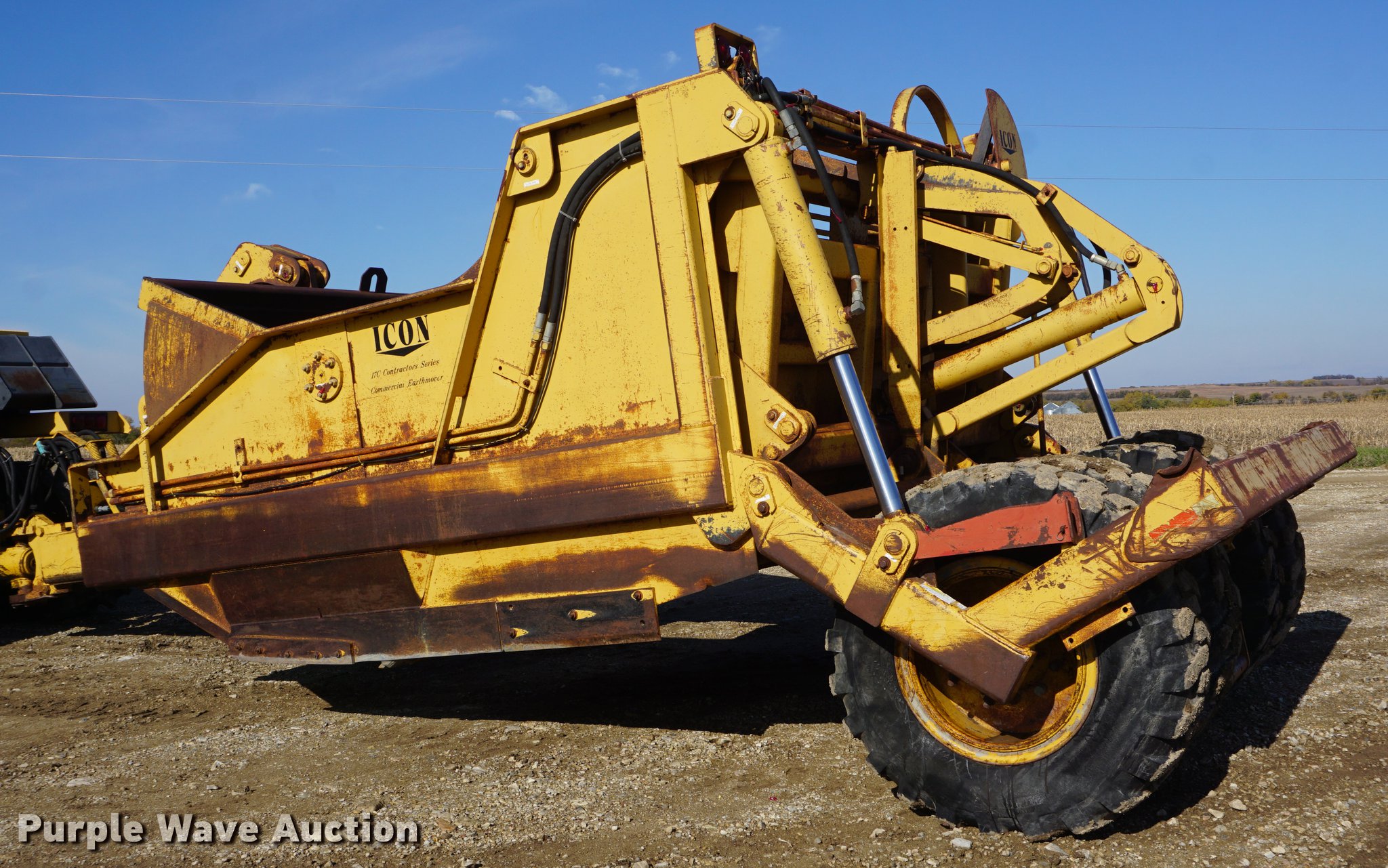 Purple Wave is selling a used Pull Type Scraper in Kansas. This item is a Icon 17C scraper with the following: 10' cutting width, 17 cu.yd. capacity, Hydraulic lift, Icon draw bar, 17.5-25 tires