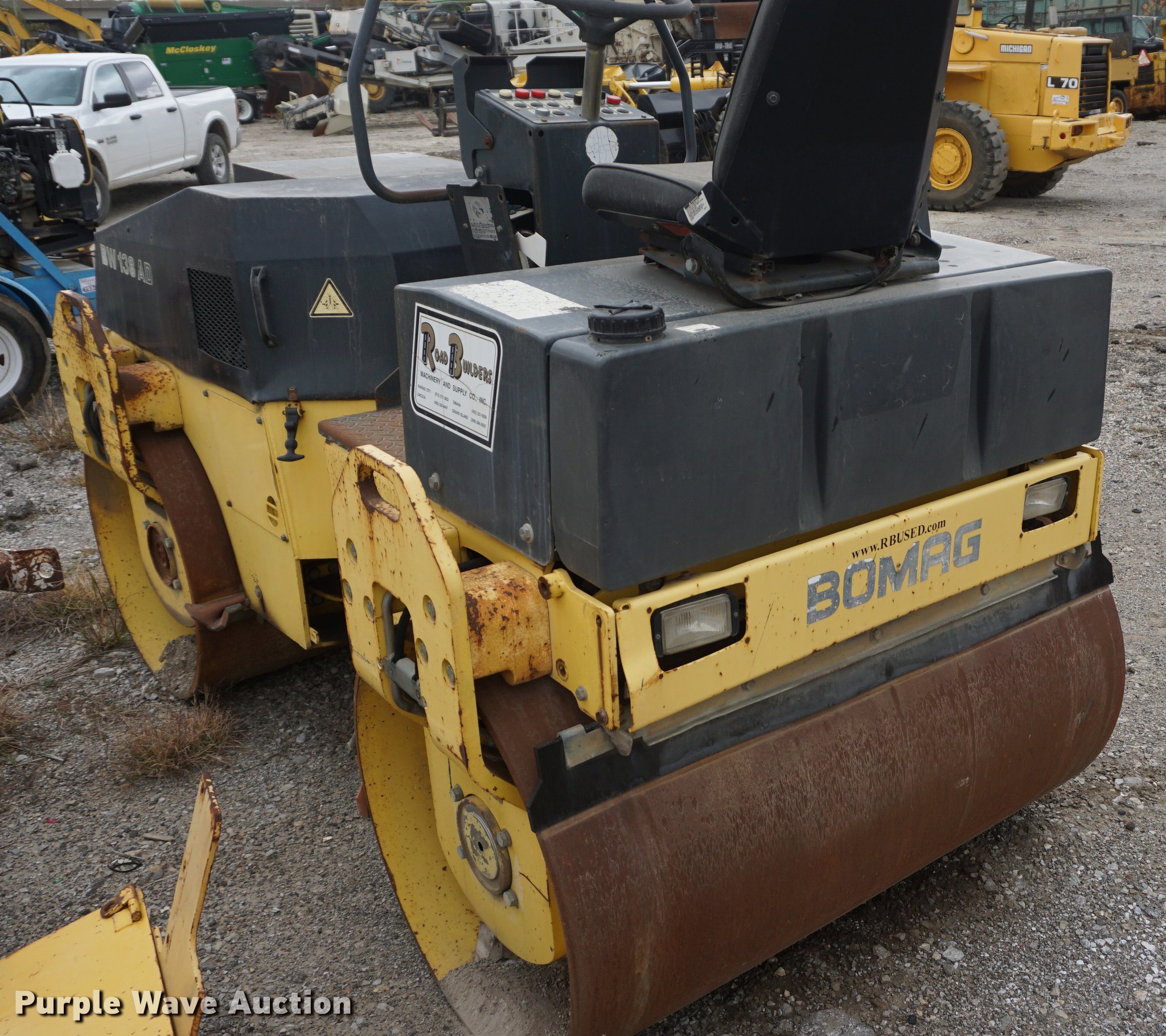 Purple Wave is selling a used Double Drum Roller Compactor in Kansas. This item is a 2000 Bomag BW138AD double drum vibratory roller with the following: Deutz three cylinder diesel engine, 46 HP, Hydrostatic transmission, 53.5"W smooth front drum, 53 3/4"W smooth rear drum, Double vibratory system, Front and rear drum scrapers, Dual propel system, Non-operational unit, Serial 101650141195