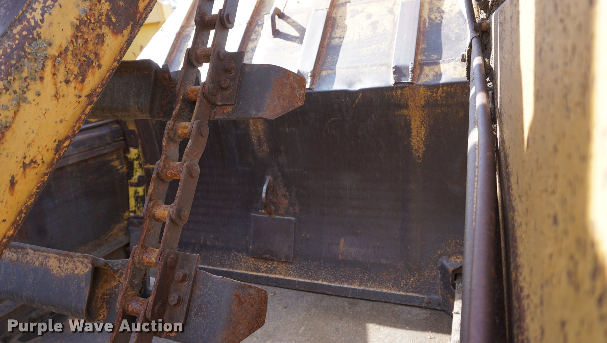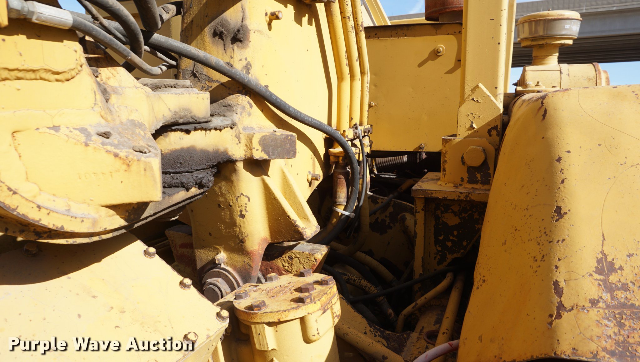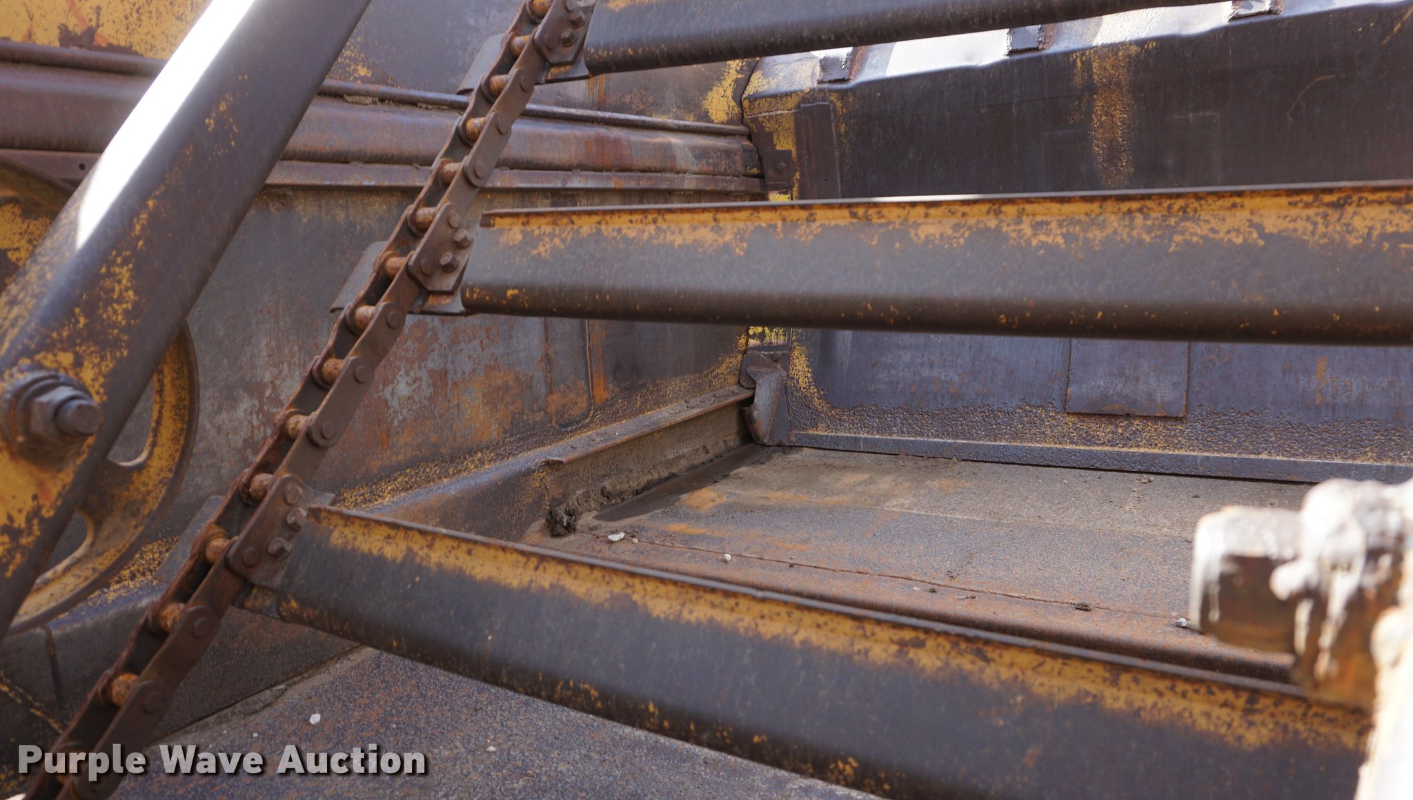 Purple Wave is selling a used Elevating Scraper in Kansas. This item is a 1971 Caterpillar 613 elevating scraper with the following: Unknown hours on meter, Caterpillar 3208 V-8 diesel engine, Powershift transmission, 4F-2R gears, Enclosed cab, Suspension seat, 11 cu.yd. bowl capacity, Hydrualic lift, Three lever controls, Lift cylinder leaks, Serial 71M973