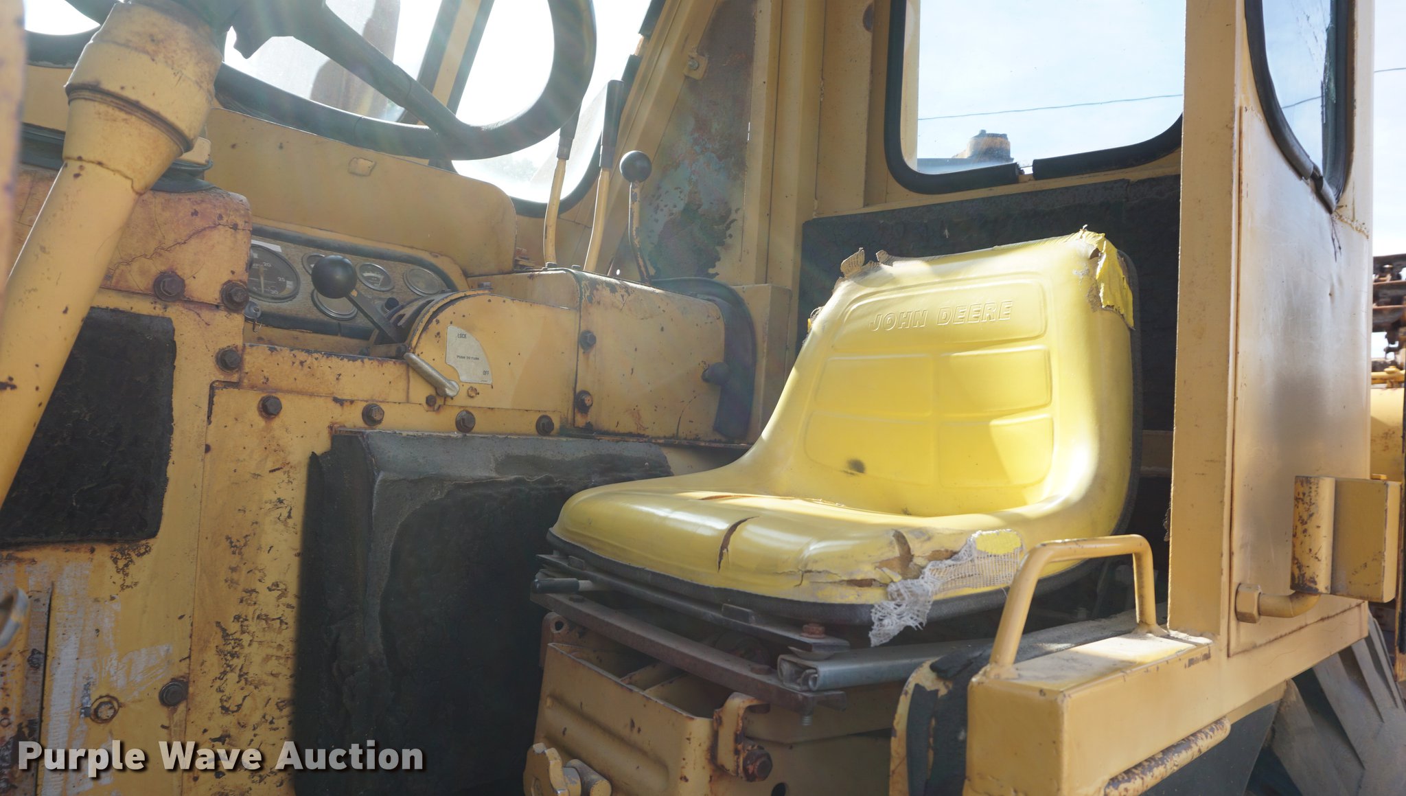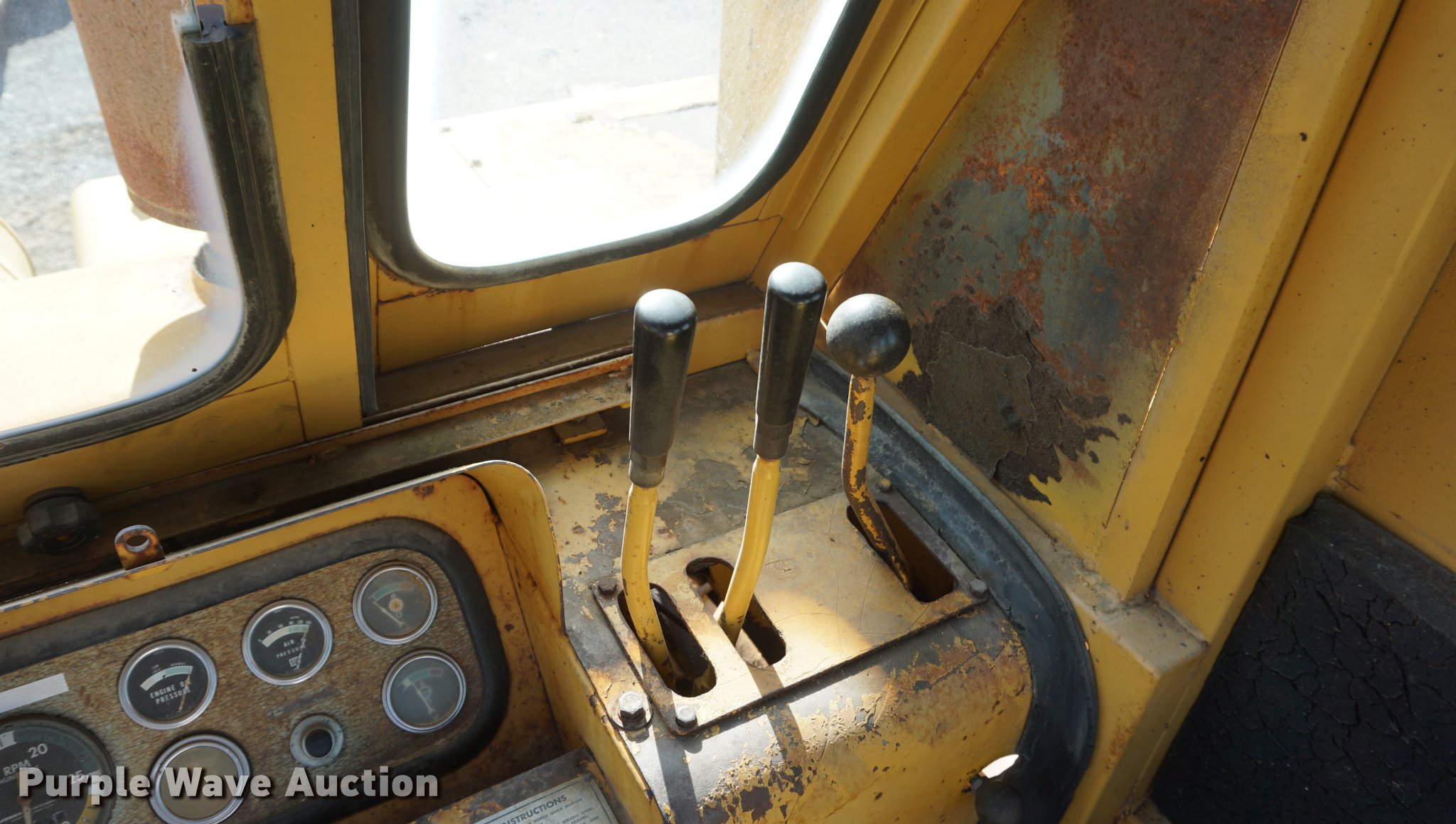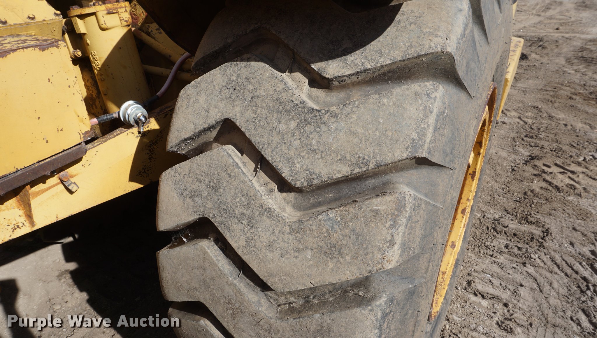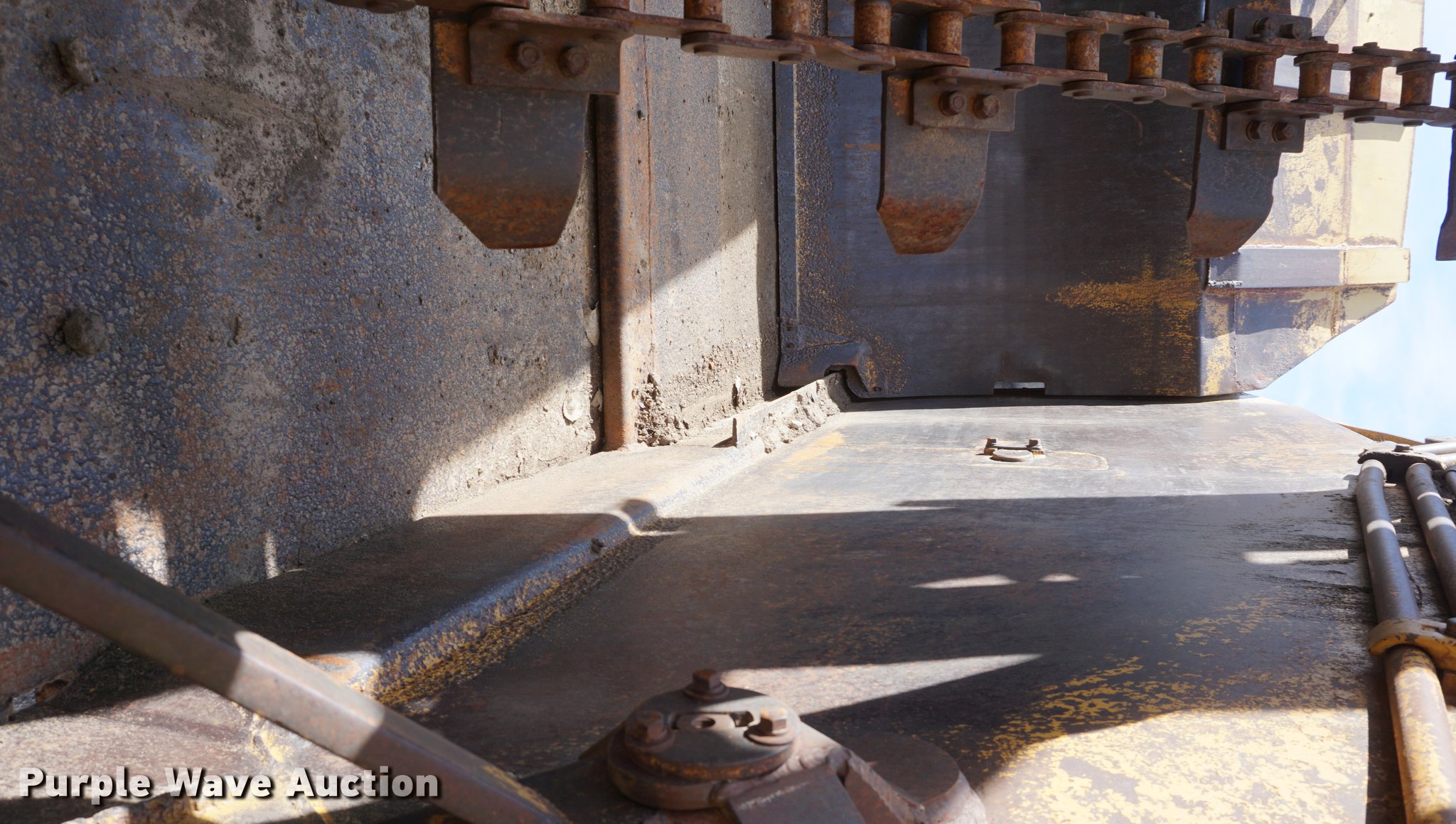 Purple Wave is selling a used Elevating Scraper in Kansas. This item is a 1971 Caterpillar 613 elevating scraper with the following: Unknown hours on meter, Caterpillar 3208 V-8 diesel engine, Powershift transmission, 4F-2R gears, Enclosed cab, Suspension seat, 11 cu.yd. bowl capacity, Hydrualic lift, Three lever controls, Lift cylinder leaks, Serial 71M973