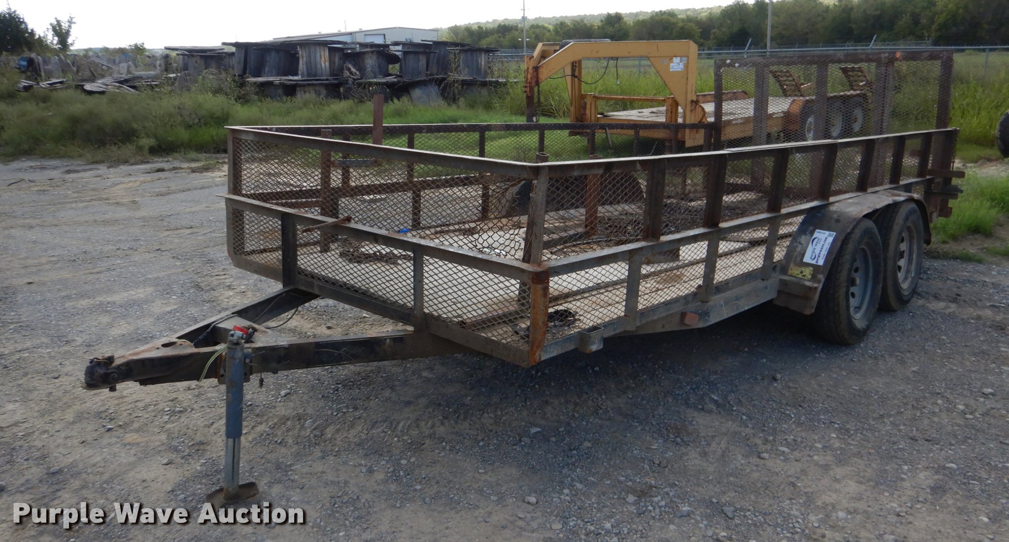 Purple Wave is selling a used Car or Utility Trailer in Oklahoma. This item is a Shop built utility trailer with the following: 20'L x 81"W, 16'L wood deck, 4'L end gate ramp, 18" floor height, Stake pockets, 2" ball hitch, Single leg landing gear, Spring suspension, Electric brakes, Tandem axle, Steel wheels, 225/75R15 tires