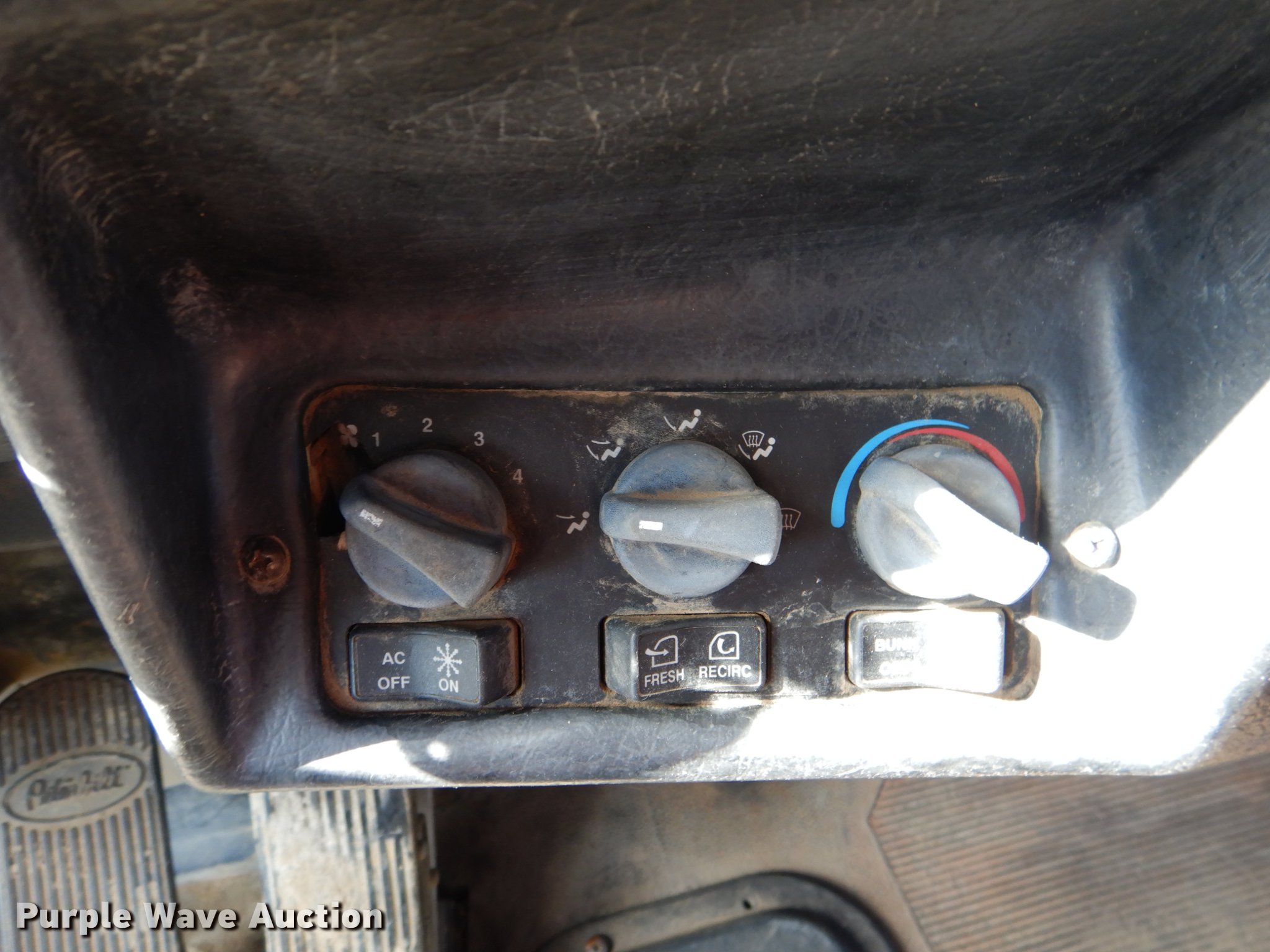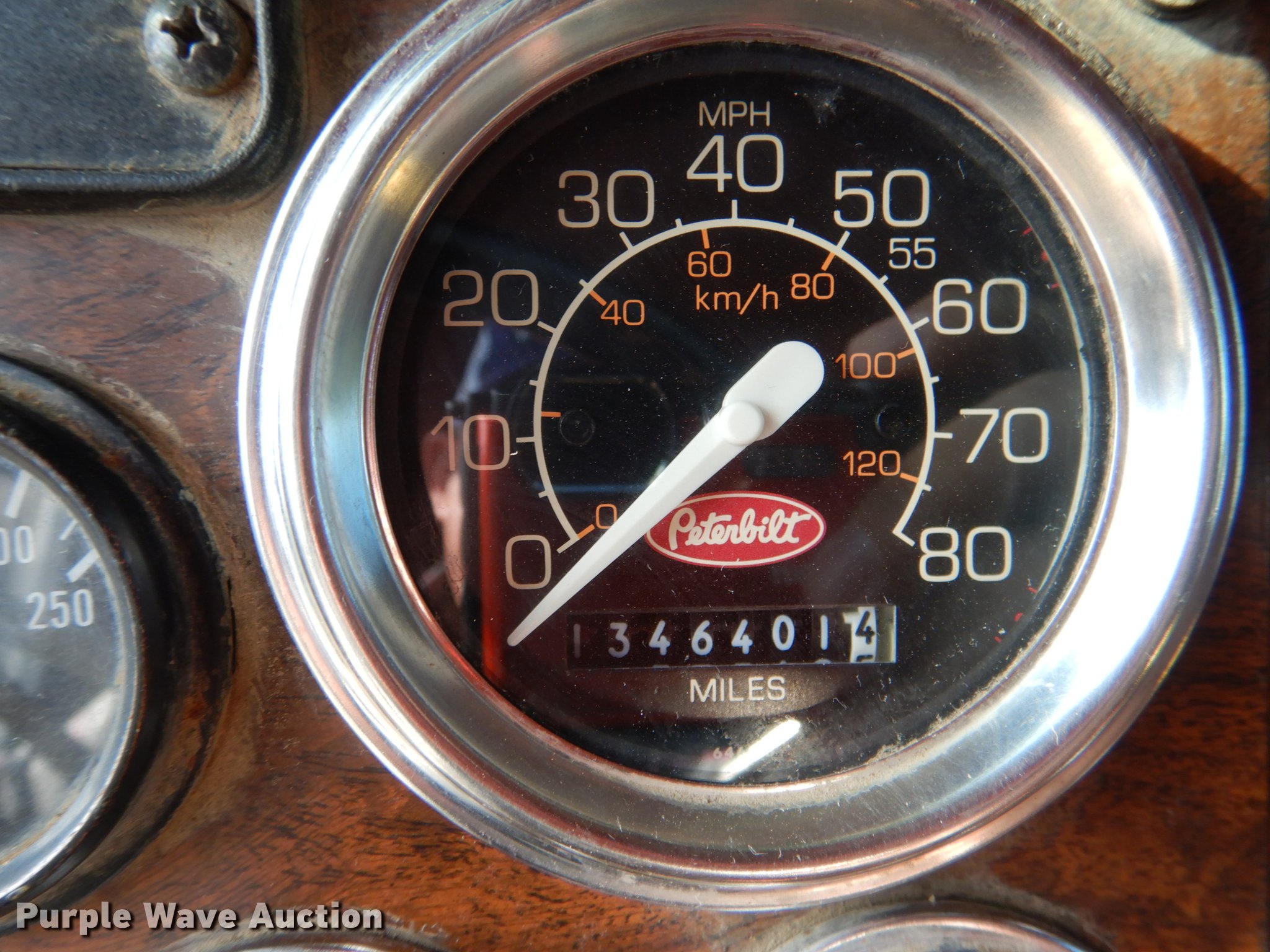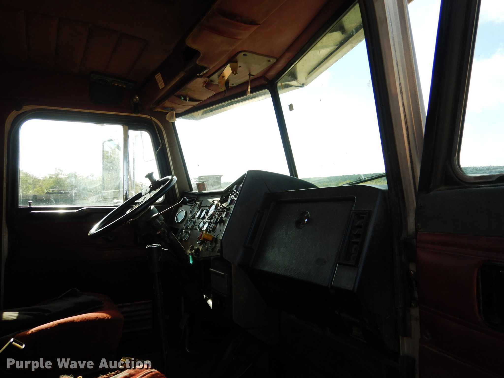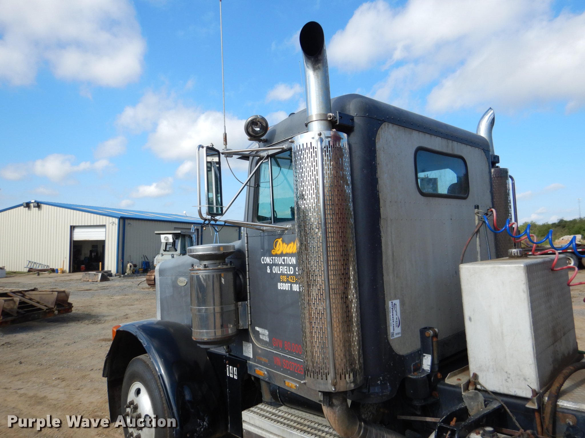 Purple Wave is selling a used Truck Tractor in Oklahoma. This item is a 1995 Peterbilt 379 semi truck with the following: 1,346,401 miles on odometer, Caterpillar 3406 14.6L L6 turbo diesel engine, Eaton Fuller 10 speed manual transmission, Tandem axle, Full differential lock, AC and heat, Tilt, Cruise, Power and heated mirrors, Air suspension seat, Dump valves, Wet kit, Exterior visor, Front tow hooks, Dual rear exhaust stacks, Aluminum deck plate, Sliding fifth wheel plate, Dual fuel tanks, Air suspension, Air brakes, Engine brake, 295/75R22.5 tires, Broken windshield, Unit# 144