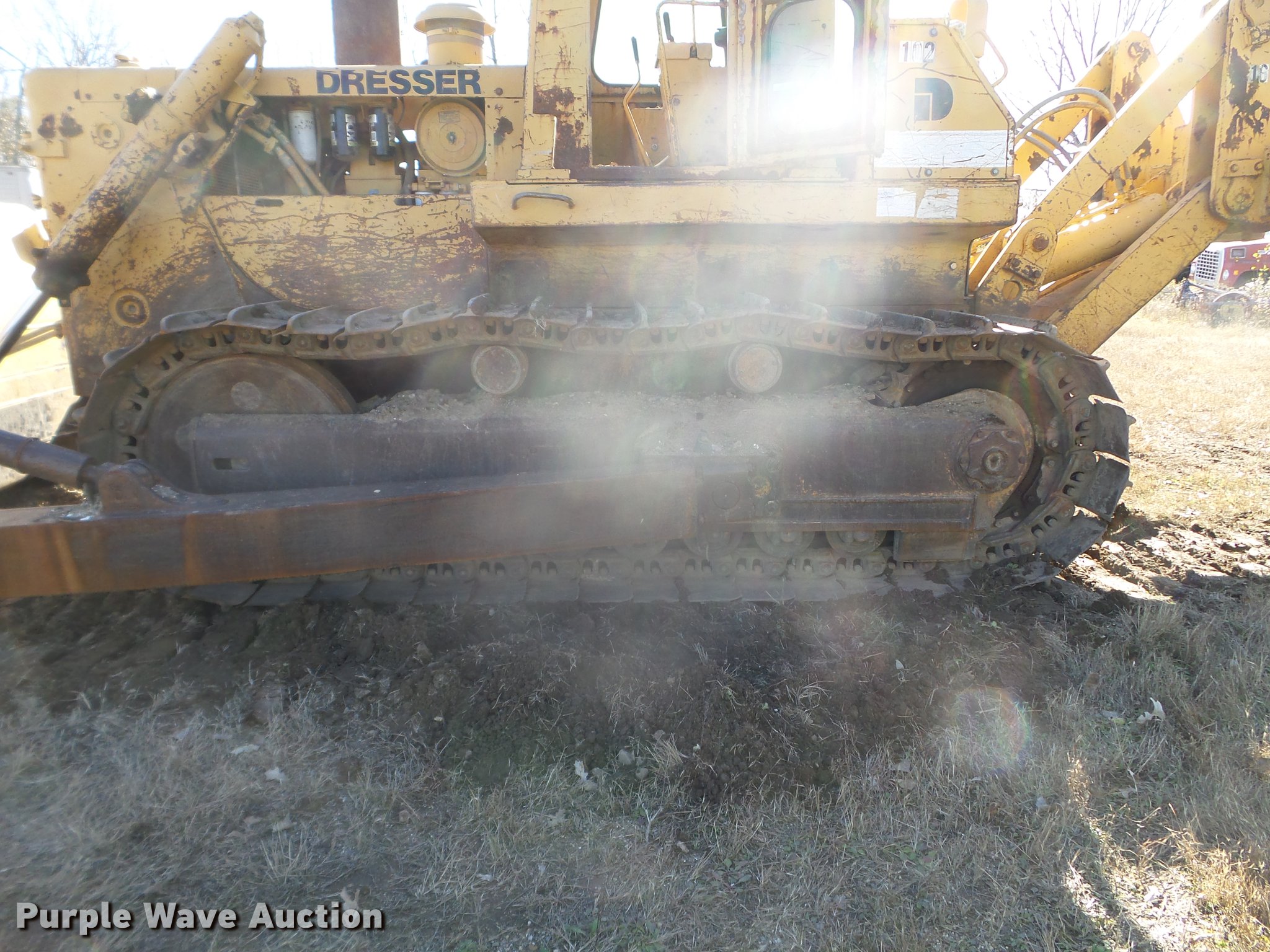 Purple Wave is selling a used Crawler Dozer in Minnesota. This item is a 1987 Dresser TD25G dozer with the following: 8,647 hours on meter, Cummins six cylinder turbo diesel engine, Powershift transmission, 3F-3R gears, Shop built cab, Suspension seat, Clutch brake steering, 13'W Semi-U single tilt dozer blade, Ripper, (1) shank, Track guards, Seven bottom rollers, 27.5"W single grouser track pads, Unit looses transmission pressure under load, Oil leaks into final drives, Serial 4370007U002354