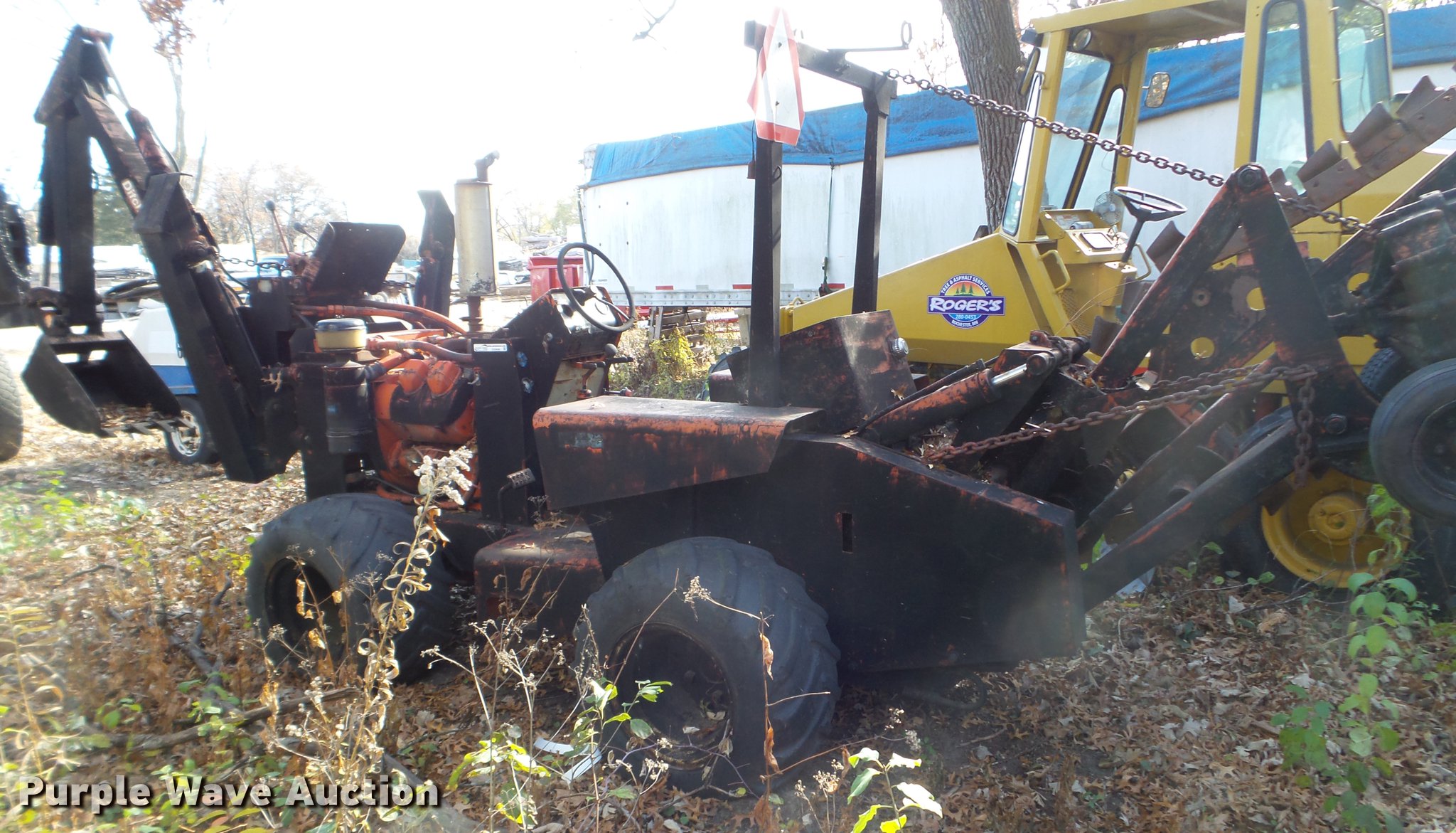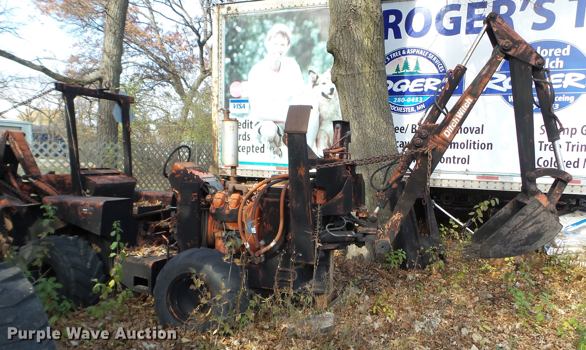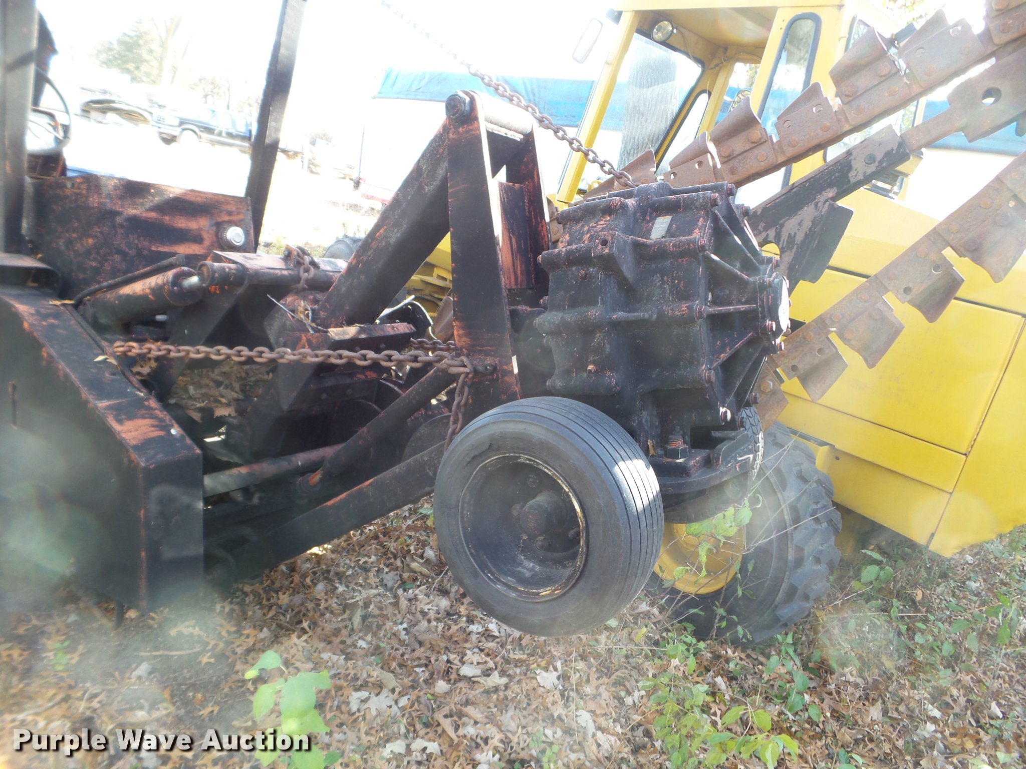 Purple Wave is selling a used Trencher or Rock Saw in Minnesota. This item is a Ditch Witch R65 trencher with the following: Four cylinder gas engine, Manaul transmission, 3F-1R gears, Four wheel drive, 80" trencher boom length, 5" cutting width, 10" end idler diameter, 15"W four tooth backhoe bucket, Outriggers, Model 20RL2 combination unit, 31 x 15.5-15 tires, Unknown operating condition, Serial 647526