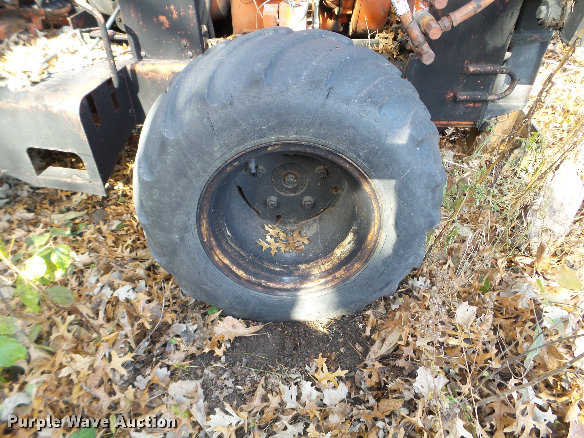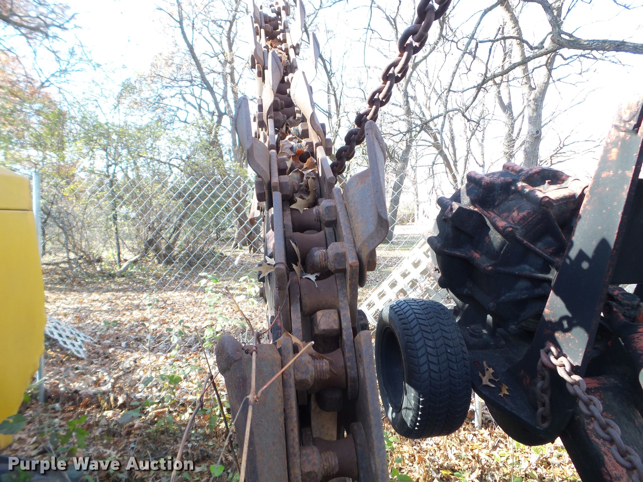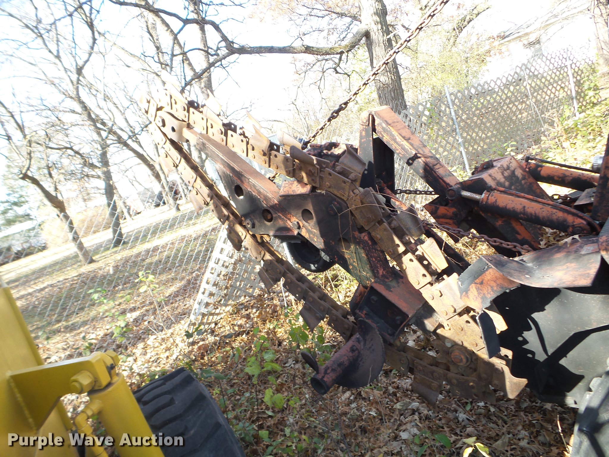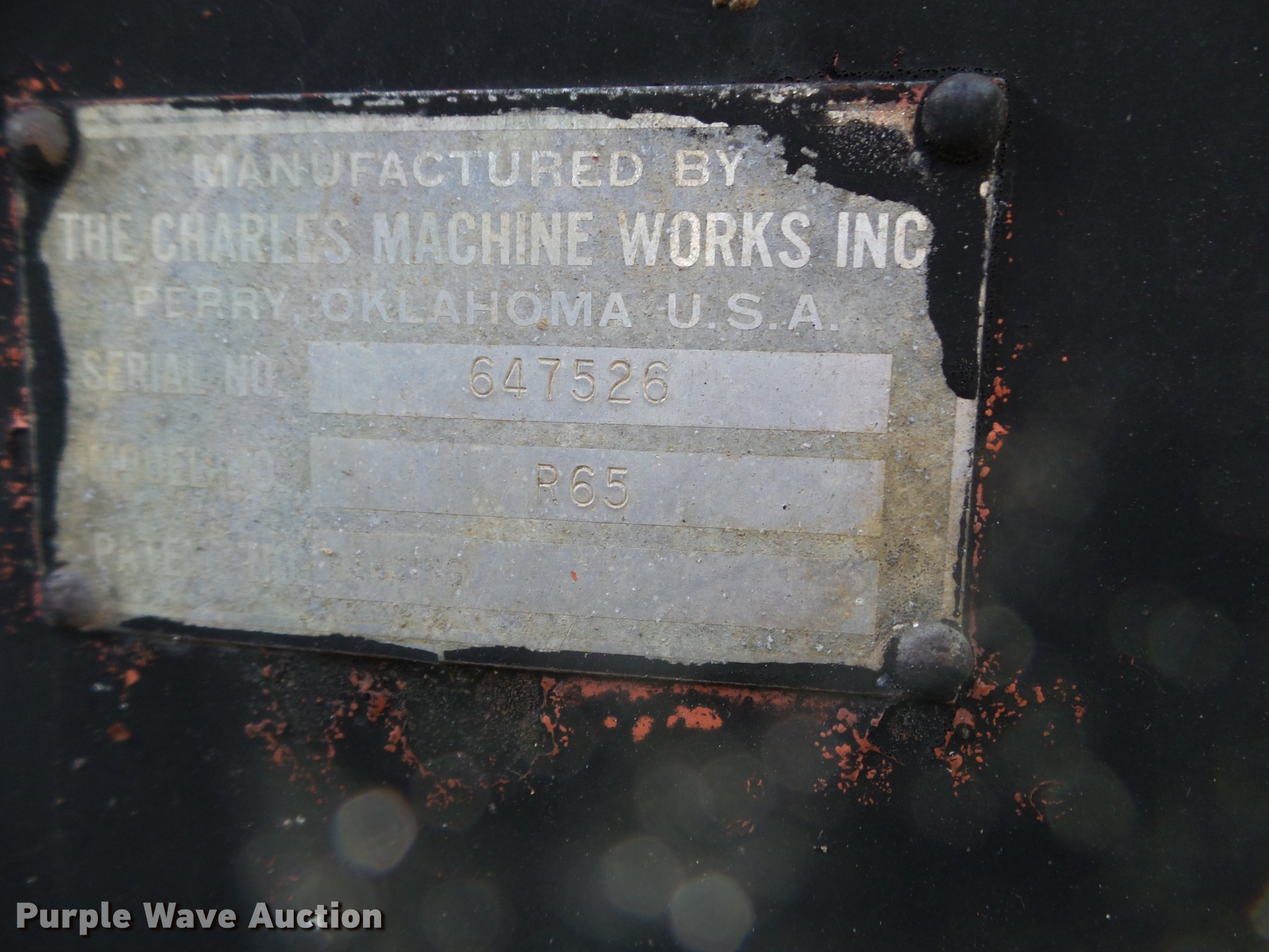 Purple Wave is selling a used Trencher or Rock Saw in Minnesota. This item is a Ditch Witch R65 trencher with the following: Four cylinder gas engine, Manaul transmission, 3F-1R gears, Four wheel drive, 80" trencher boom length, 5" cutting width, 10" end idler diameter, 15"W four tooth backhoe bucket, Outriggers, Model 20RL2 combination unit, 31 x 15.5-15 tires, Unknown operating condition, Serial 647526